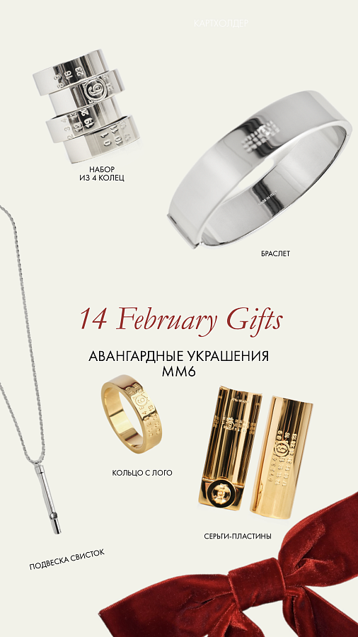 Любовь — это ваш личный, зашифрованный от всех код. Расшифруйте его с помощью авангардных аксессуаров MM6. Их кольца и браслеты с гравировкой-цифрами (тем самым культовым логотипом) — это шифр, понятный только вам. Дата встречи, день рождения, магическое число вашего союза. Это не просто украшение, это артефакт. Подвески и браслеты с характерным холодным блеском металла добавляют скульптурности образу. Подарок для пары, которая видит будущее в дизайне и ценит интеллектуальную игру.