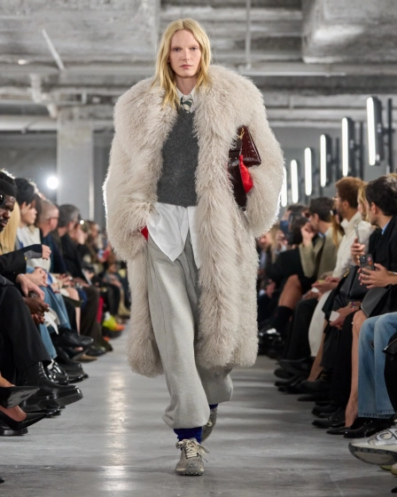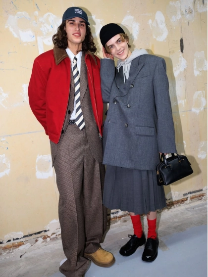 На подиуме это преображение воплотилось с почти документальной точностью. Некоторые модели не снимали собственных украшений — тонкие цепочки, личные кольца, любимые серьги стали частью образов. Это смелое решение стёрло грань между показом и реальной жизнью, подарив коллекции ощущение подлинности. Перед нами были не манекены, а персонажи — та самая беззаботная и прекрасная молодёжь, которая гуляет по набережной Сены, встречается за кофе в Маре и танцует до утра в клубах.