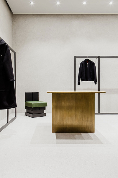 Флагманский бутик Jil Sander в Берлине, спроектированный Andrea Tognon Architecture, демонстрирует другой подход — сдержанный, интеллигентный, тщательно выверенный. Здесь брендскейпинг работает через архитектурную ритмику, свет и материал. Натуральный камень, светлая древесина, монолитные объёмы и приглушённая цветовая палитра — всё это создаёт атмосферу «тихой силы». В этом пространстве нет ничего случайного: как и в вещах Jil Sander, каждая деталь работает на чистоту линии и концентрацию смысла. Бутик как продолжение философии интеллектуального минимализма.