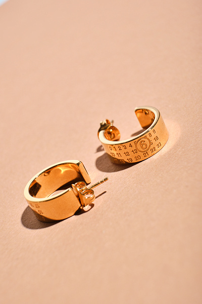 - Серьги и кольца с логотипом или цифрами — абсолютный маст-хэв. Это подпись, заявка на авангардность.