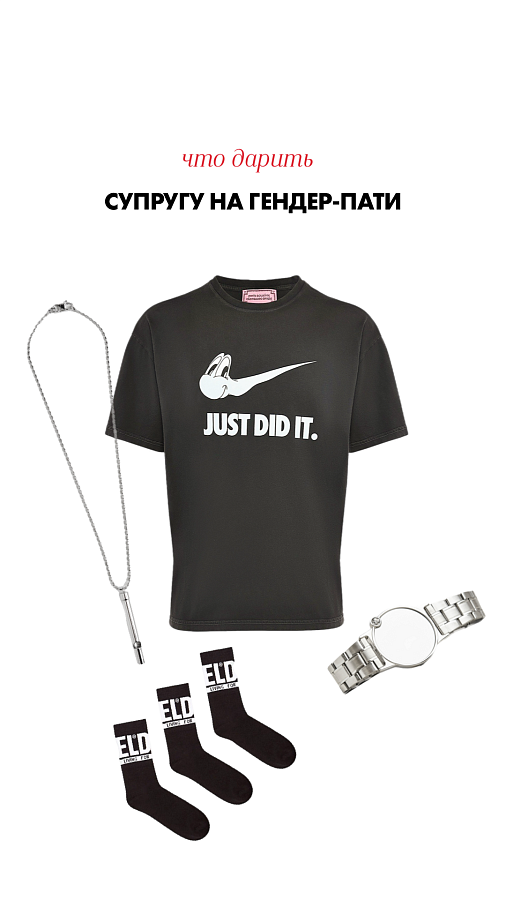 Идеально для мужа или партнёра на гендер-пати, ценителя тонкой (и не очень) шутки. Вот он, виртуозный перехват иконографии. Знаменитый Swoosh и лозунг Nike получают гениально-хулиганское прочтение. Это не просто пародия, а концептуальная подмена ценностей: с спортивных высот на пик личных достижений. Идеальный подарок для того, кто ценит остроумие, зашифрованное в, казалось бы, простом принте.