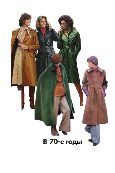 Но 70-е привнесли бунт: зауженные модели с меховыми воротниками, грубые плечи, стиль унисекс. Мужская мода окончательно отказалась от сложных деталей, а длина варьировалась от ультракоротких вариантов до моделей в пол.