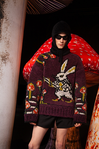 MSGM под руководством Массимо Джорджетти доказал, что мода может быть вечеринкой. Показ, больше напоминающий техно-рейв, перенес гостей в пространство, где музыка и стиль стали единым целым. Дизайнер сделал ставку на молодежную эстетику, объединив неоновые оттенки, блестящие ткани и спортивные элементы. Каждый образ выглядел как вызов монотонности, воспевая дух эксперимента и радость самовыражения.