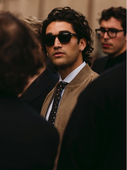На смену объемным пальто и строгим тренчам пришла его практичная, удобная и невероятно стильная версия. В этом сезоне бомбер окончательно закрепил свой статус не просто куртки, а универсального элемента, который может быть как базовым, так и главным акцентом образа. Бомбер — это мастер компромисса. Он идеально смягчает строгий костюмный низ, добавляя ему непринужденности, и, наоборот, структурирует самый расслабленный спортивный верх. Наденьте его поверх худи с чиносами или с классическими брюками и кроссовками — и вы получите тот самый парижский баланс элегантности и небрежности.