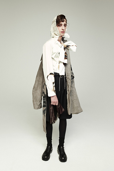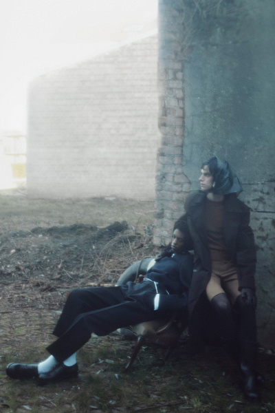 Эстетика коллекции — это тонкий баланс между утонченностью и грубостью. Ткани богаты текстурами, но детали, вроде узловатых белых шнуров в качестве поясов, придают образам дерзкий, почти анархичный вид. Этот контраст усиливается за счет драматичной съемки, где герои коллекции выглядят хрупкими и эфемерными, как будто их только что вымыло на берег после кораблекрушения.
