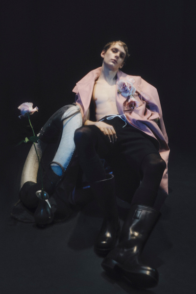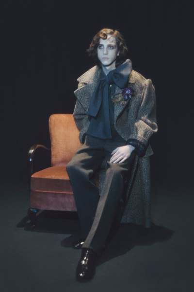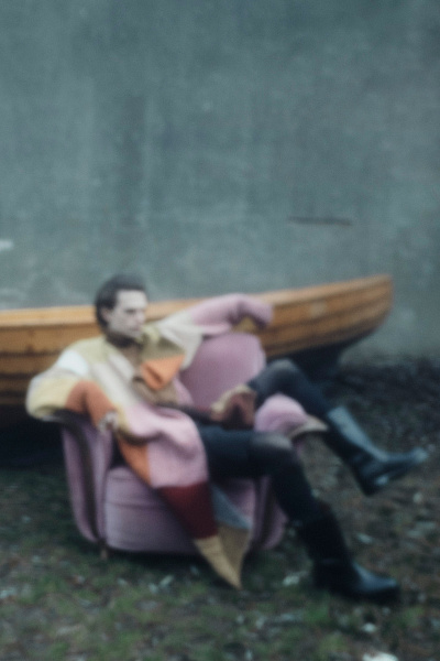 Коллекция, созданная студией Dries Van Noten под руководством Клаузнера, выглядит как письмо из прошлого, отправленное из футуристического мира Уильяма Берроуза. Вдохновением послужил его роман The Wild Boys, но дикие мальчишки Клаузнера явно перенеслись в начало XIX века и высадились где-то в Антверпене. Перед нами — бунтари с душой поэтов. Один из них лениво сидит у спасательного круга в розовом канвасовом тренче с букетом приколотых цветов, другой — развалился у лодки в пэчворковом пальто, а третий задумчиво смотрит в бесконечность, облаченный в блейзер цвета верблюжьей шерсти и рубашку с объемным бантом, словно готовится к встрече с эпохой романтизма.
