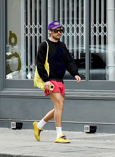 Один из самых узнаваемых приемов Гарри — сочетание спортивных аксессуаров с традиционными вещами. Например, бейсболка, казалось бы, абсолютно casual-элемент, в его образах часто соседствует с элегантным костюмом или классическим пальто. Это добавляет легкости и непринужденности, разбавляет формальный лук и придает ему молодежный драйв. Такой прием отлично работает, если хочется выглядеть стильно, но не слишком строго.