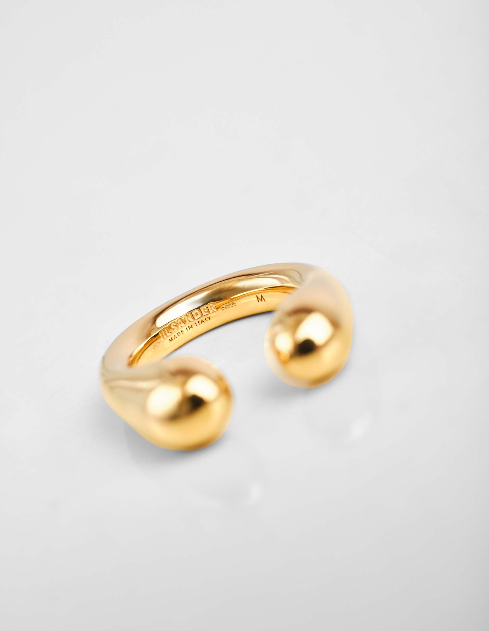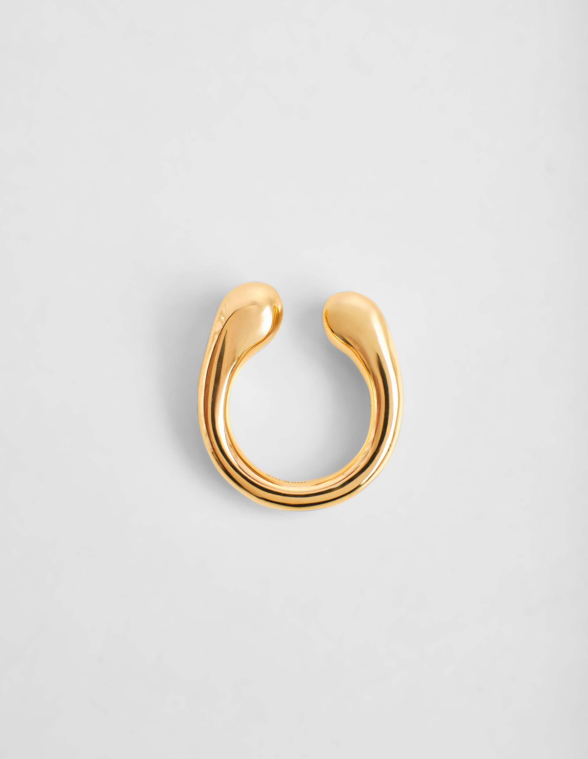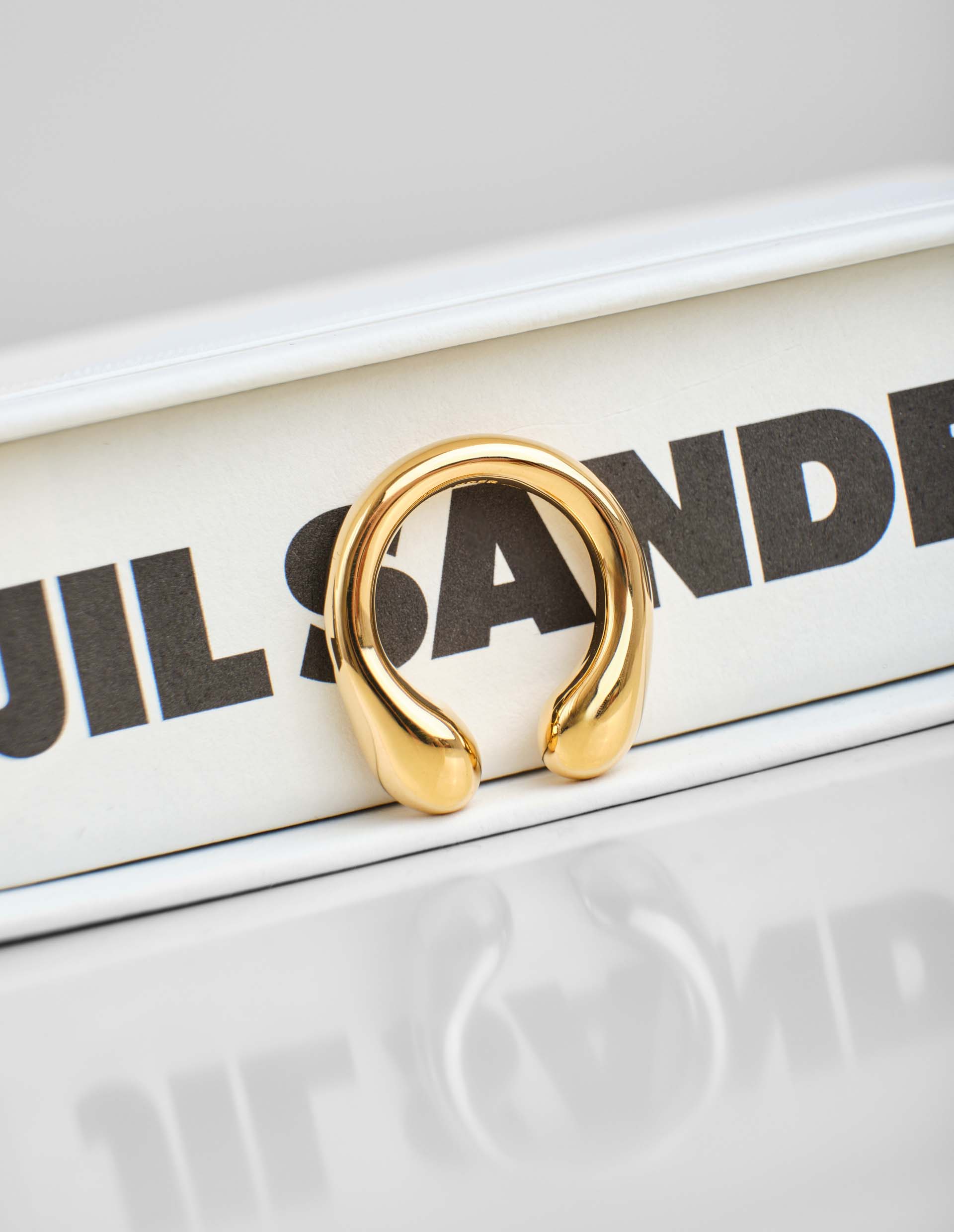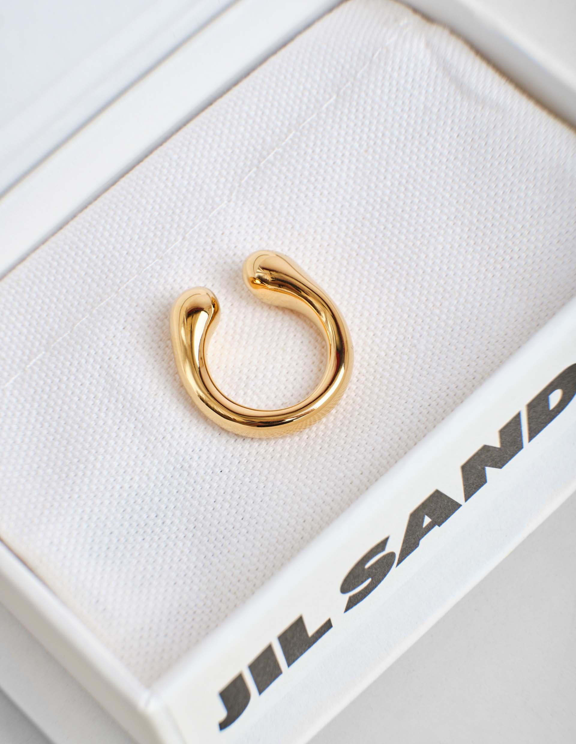 Бескомпромиссное проявление индивидуальности и современной лаконичности заложены в дизайн позолоченного разомкнутого кольца Jil Sander, объединить которые способен лишь человек. Подчеркнуть заложенный смысл и сделать аксессуар акцентнее и ярче помогает высококачественное покрытие латунного материала в 0.5 микрон, что превышает золотой стандарт даже люксового сегмента.