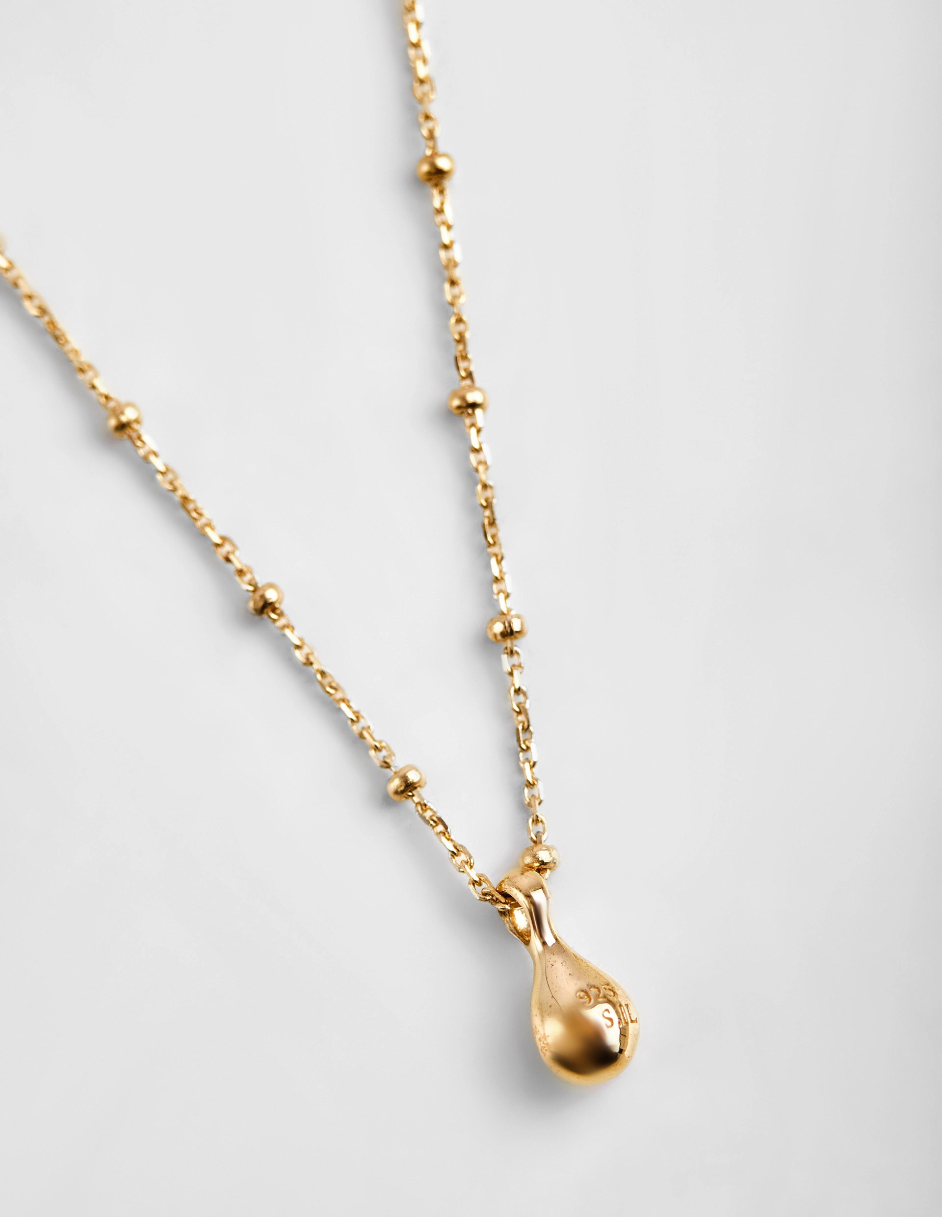Позолоченное колье с мелкими бусинами и каплевидной подвеской Tiny Egg Chain