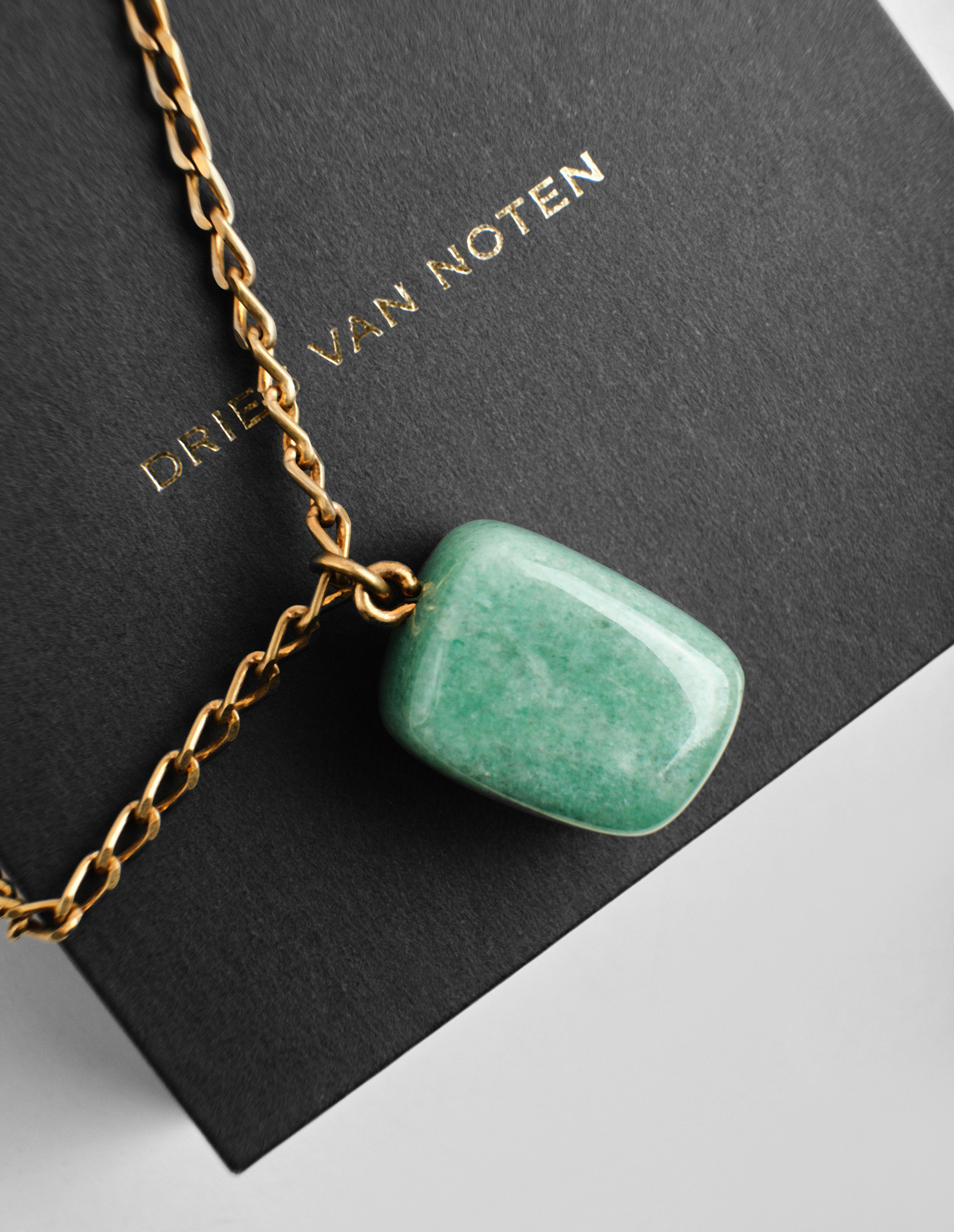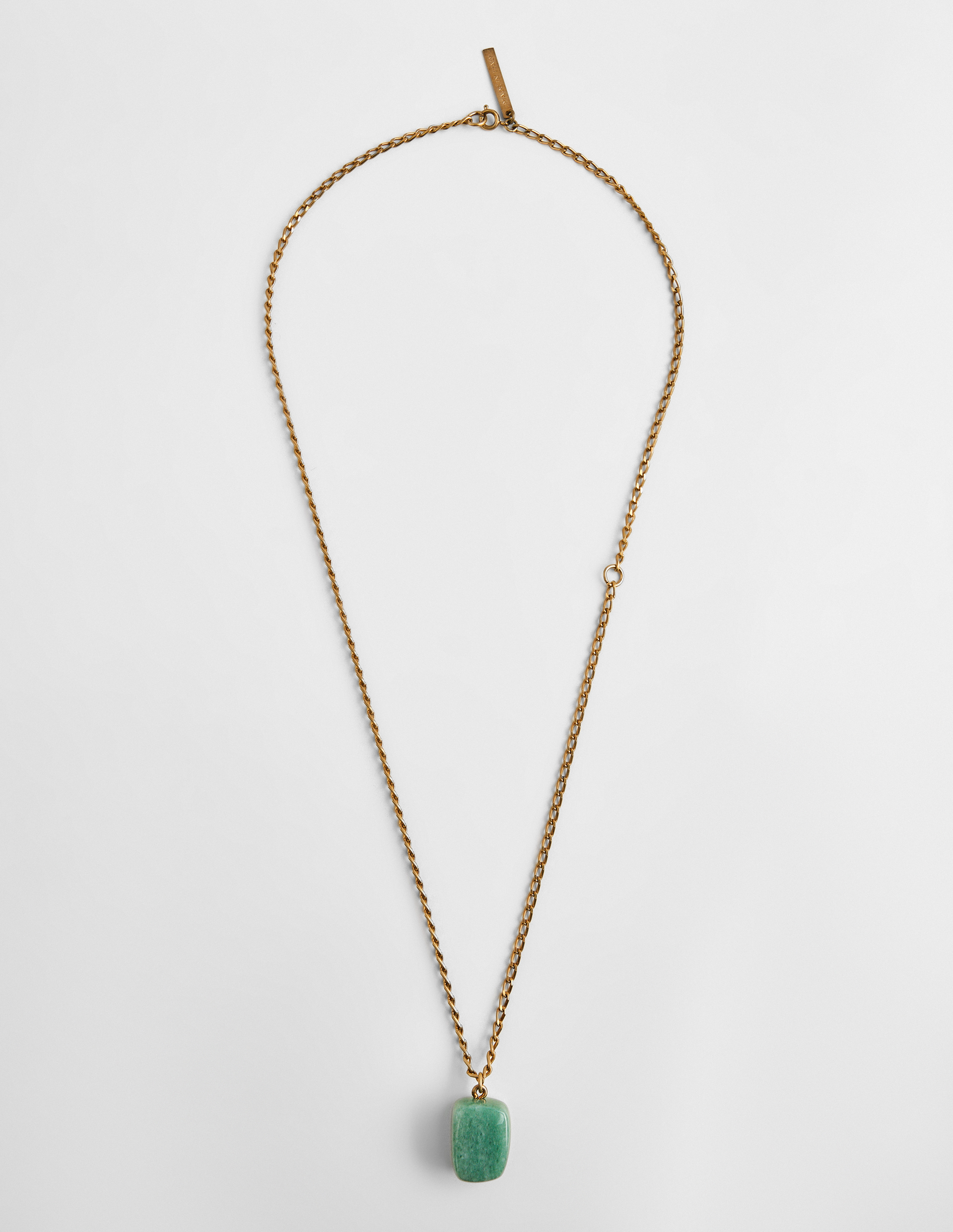 Интуитивная энергия природы заключена в кулоне с зелёным камнем. Тонкая цепочка из золотистого металла создаёт изысканный контраст с насыщенным оттенком минерала. Эффектное дополнение к лёгким платьям и строгим пиджакам.