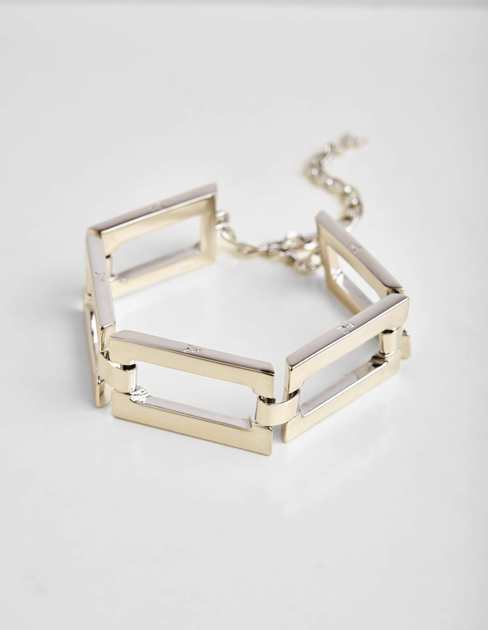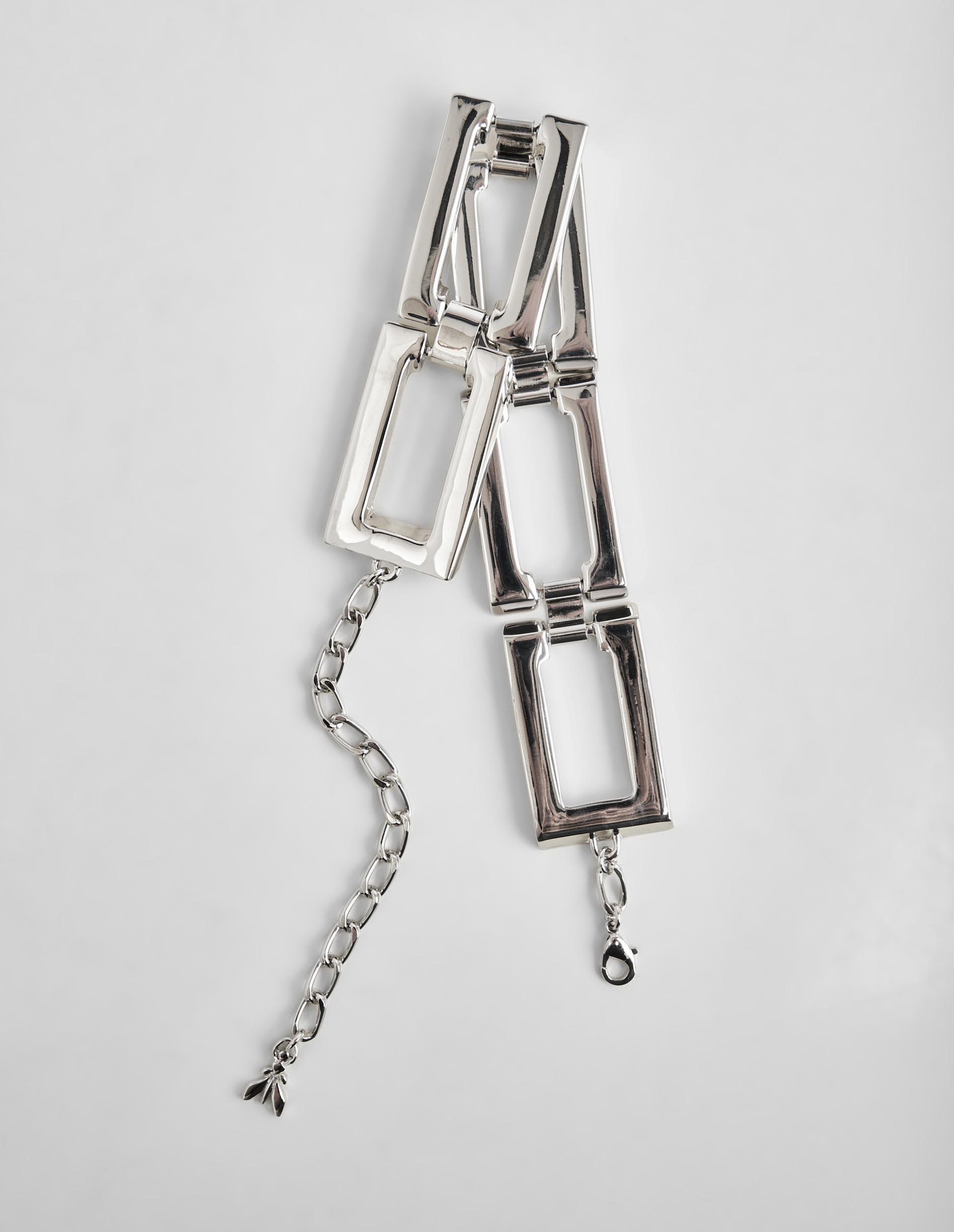Архитектурный подход к дизайну воплощает серебристое ожерелье-чокер Patrizia Pepe. Крупные звенья с четкими углами, соединенные подвижными элементами, образуют сложную геометрическую композицию. Строгость линий сочетается с дерзким характером, отражая фирменный стиль бренда. Конструкция с регулируемой длиной благодаря застежке-карабину и цепочке с подвеской Fly обеспечивает адаптацию к различным образам. Аксессуар представлен в фирменной упаковке, подчеркивающей целостность концепции. Ожерелье демонстрирует характерное для бренда единство структурной точности и смелой выразительности.