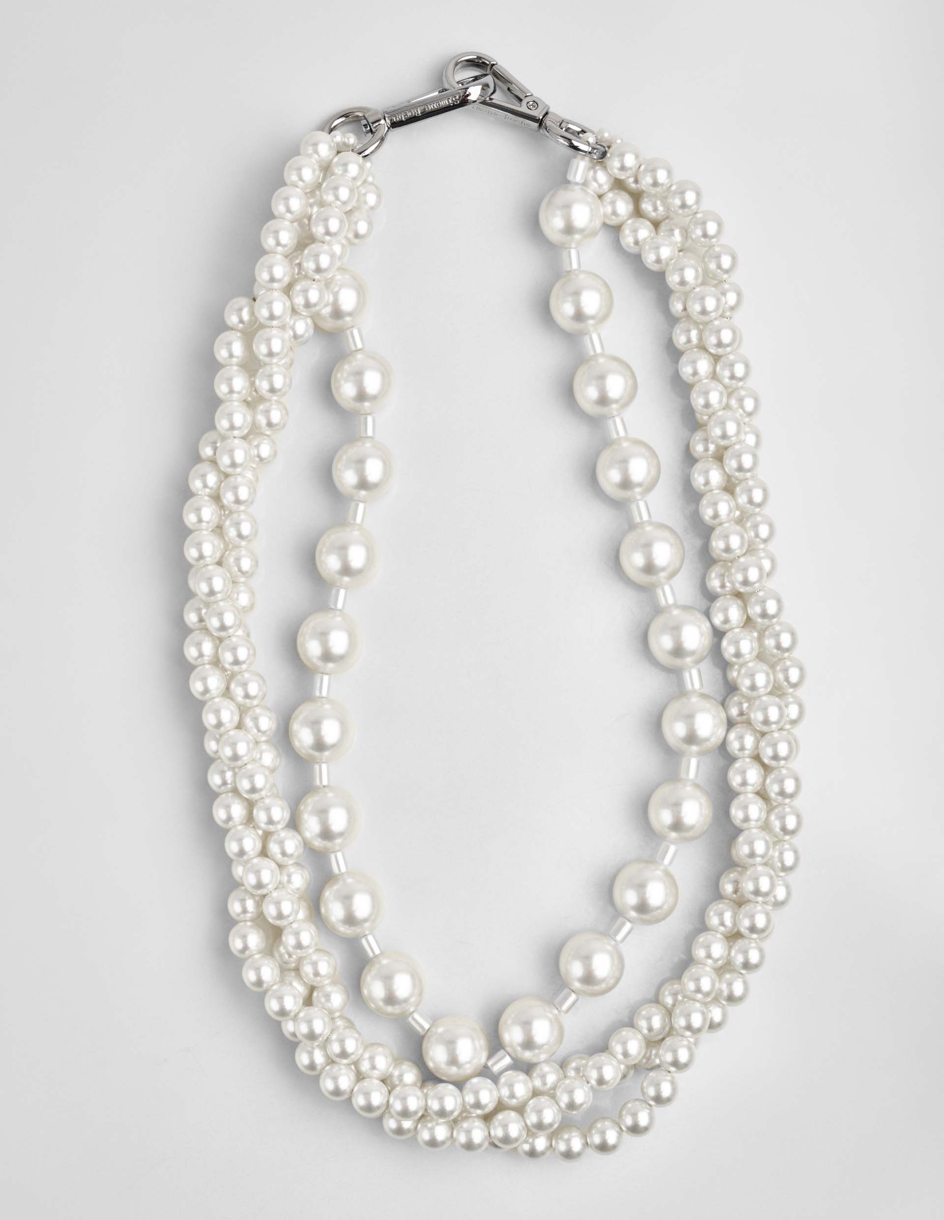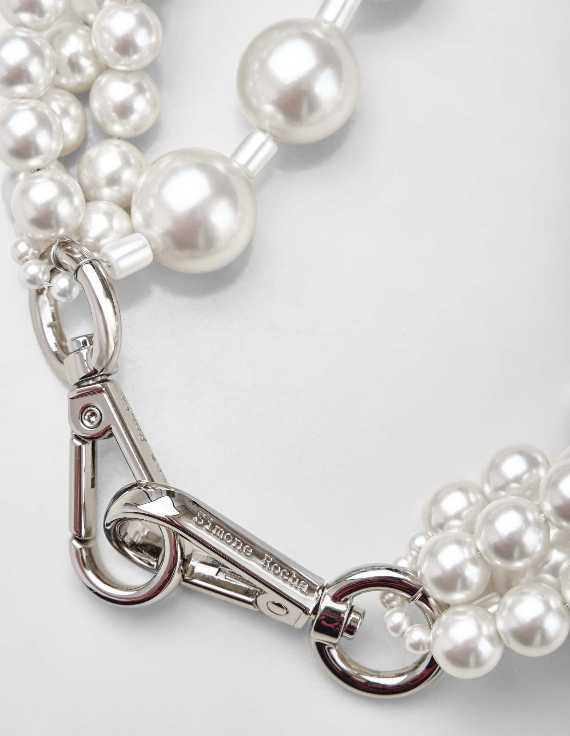 Интеллектуальные и причудливые изделия Simone Rocha известны своим дальновидным использованием. Как, например, этот аксессуар из искусственного жемчуга, который может играть роль ремня для сумки либо кошелька, или надеваться в качестве поясной подвески на брюки, юбки, шорты. Так талантливая Симон Роша с помощью этого изысканного предмета моды предлагает переносить ваши образы на новый уровень элегантности.