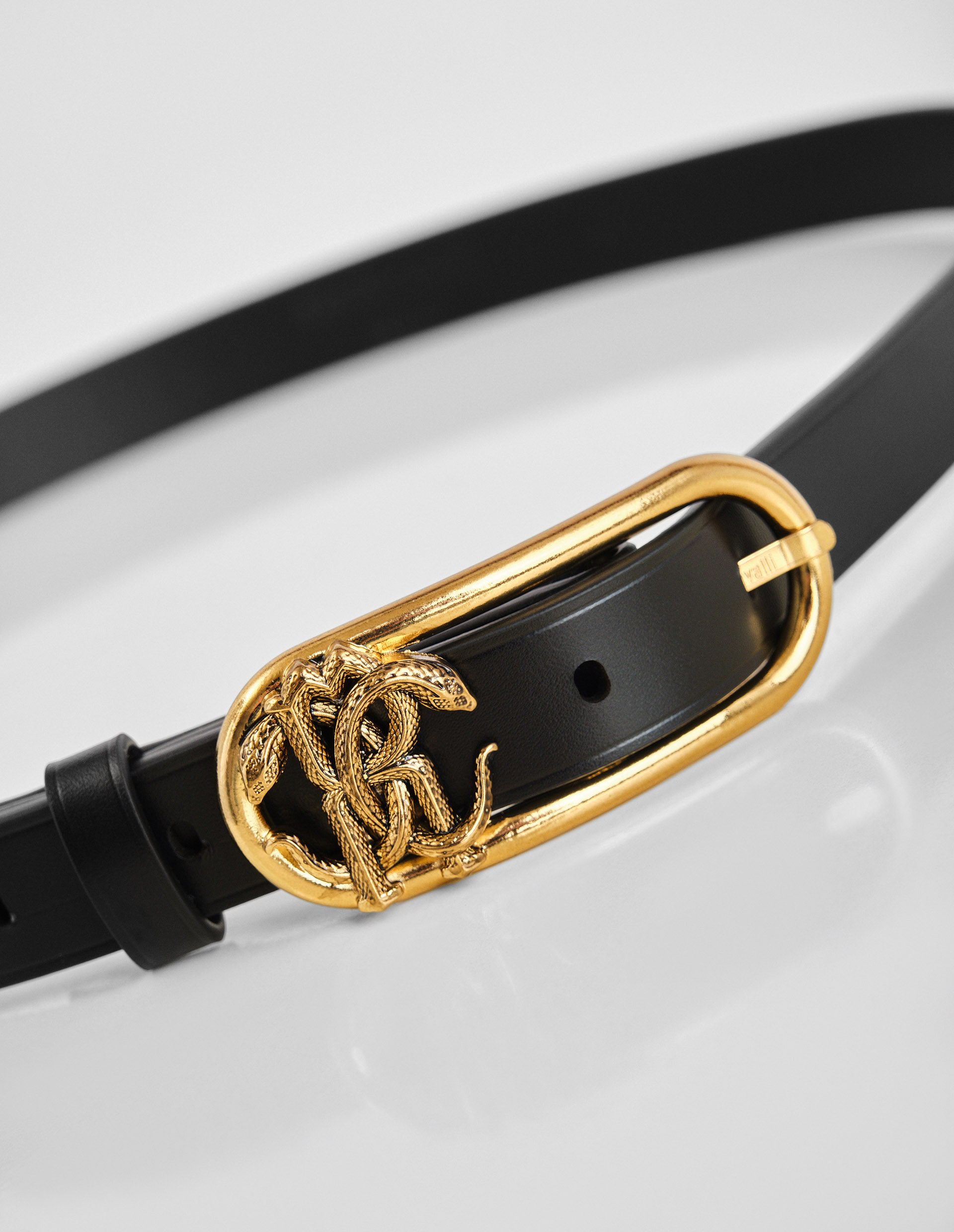 Бренд, который смог приручить не только анималистичный принт, но и двух переплетающихся змей в одну иконическую монограмму с буквами «RC» — Roberto Cavalli. Шик и роскошь, присущие бренду, олицетворяет антикварное золотое напыление массивной фурнитуры, изящно сочетающееся с глянцевым блеском натуральной прочной кожи гладкой кожи, из которой выполнен аксессуар.