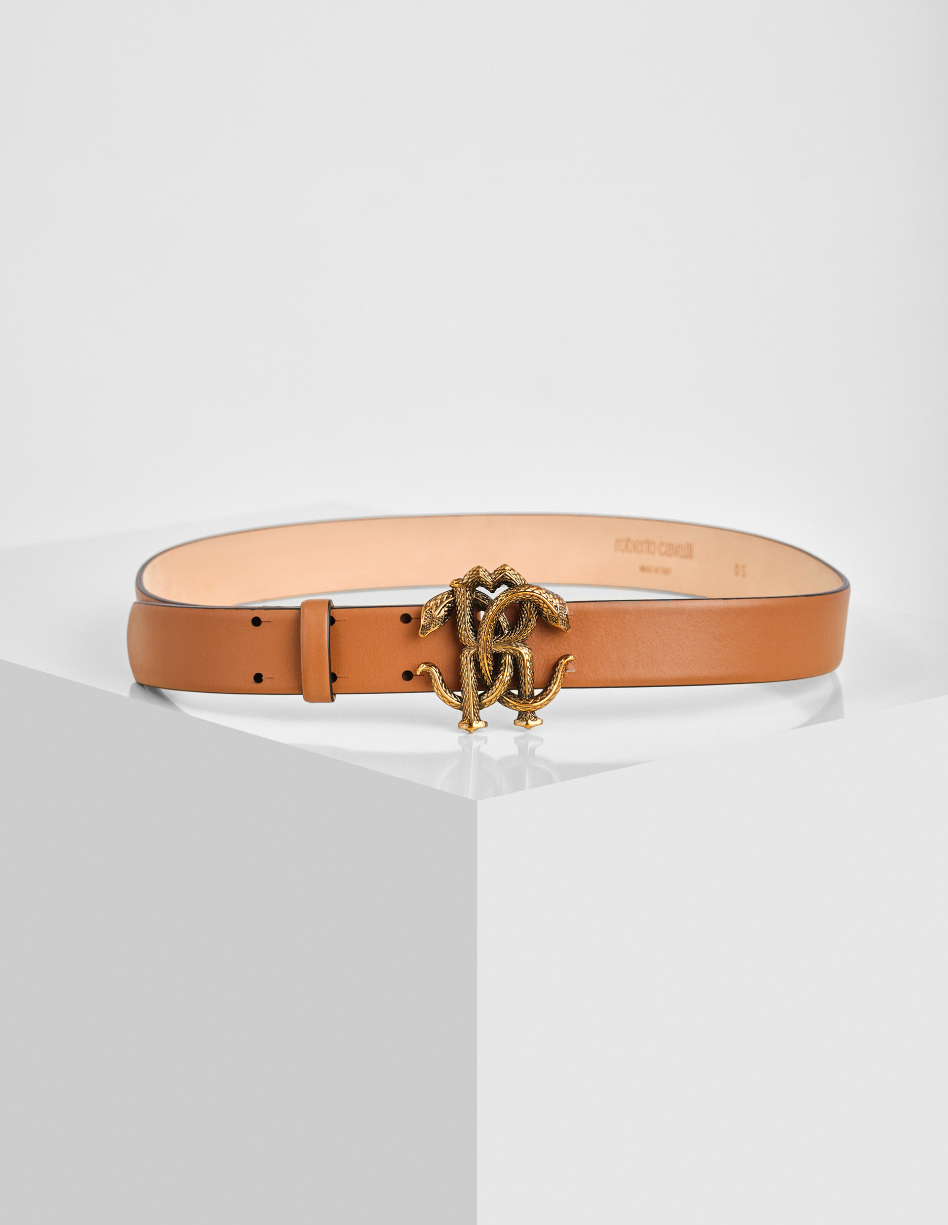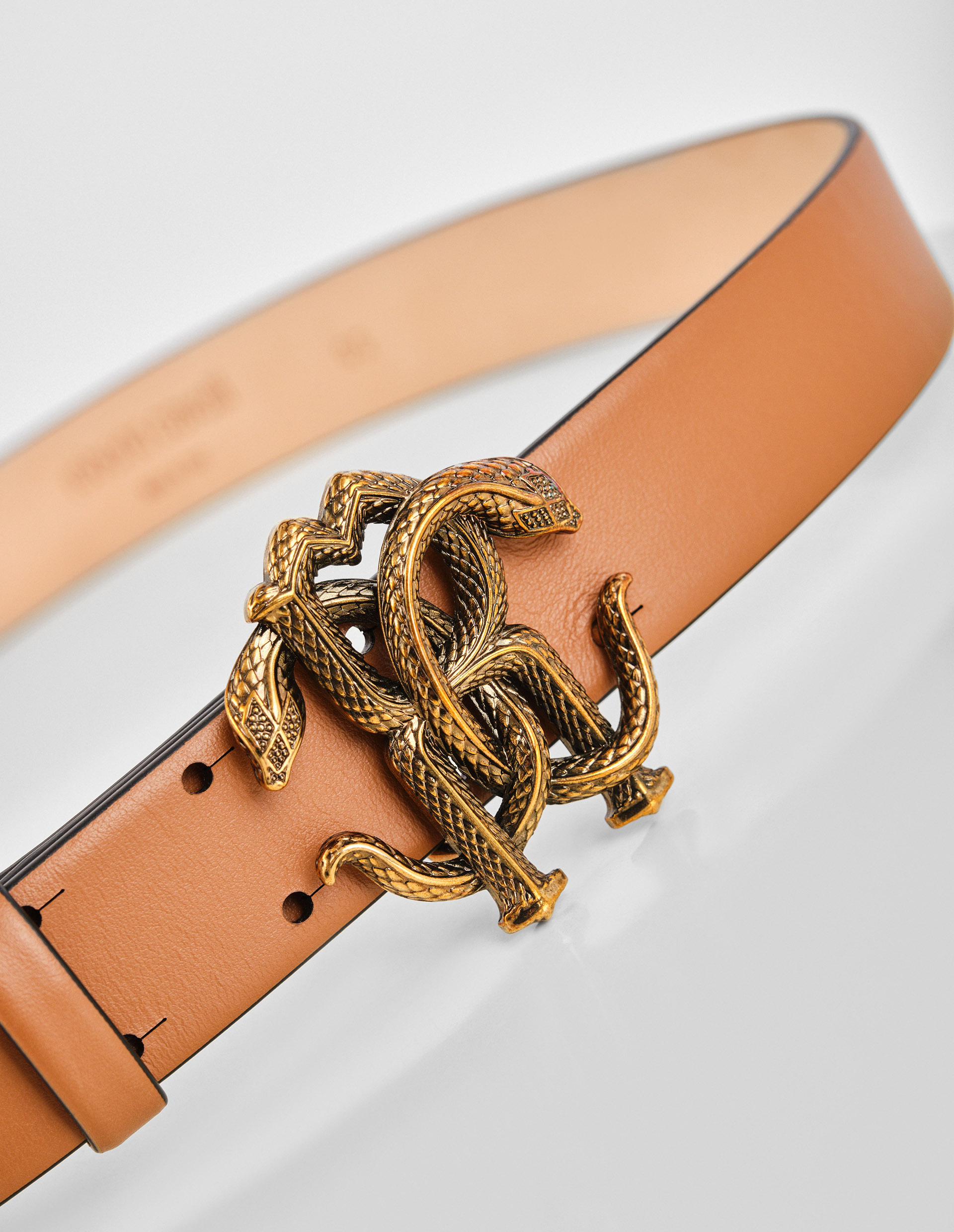Итальянский темперамент, экспериментальность и невероятный талант позволили одноименному бренду Roberto Cavalli приручить животный анималистичный принт и создать узнаваемою во всем мире монограмму «RC» из двух переплетающихся змей. Эта непокорность, вызов окружающему миру и скрытая сексуальность яркой монограммой Mirror Snake привлекает внимание к ремню бренда. Антикварное напыление придает фурнитуре винтажный потертый эффект, который изумительно четко подходит к коричневому глянцевому блеску натуральной кожи аксессуара.