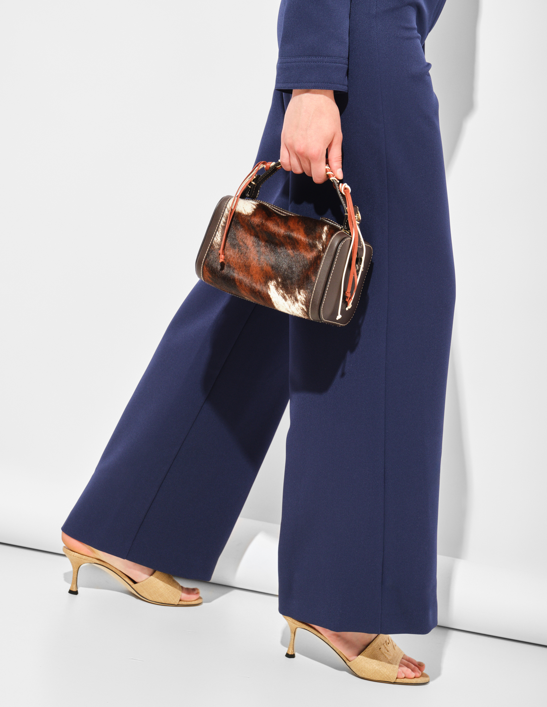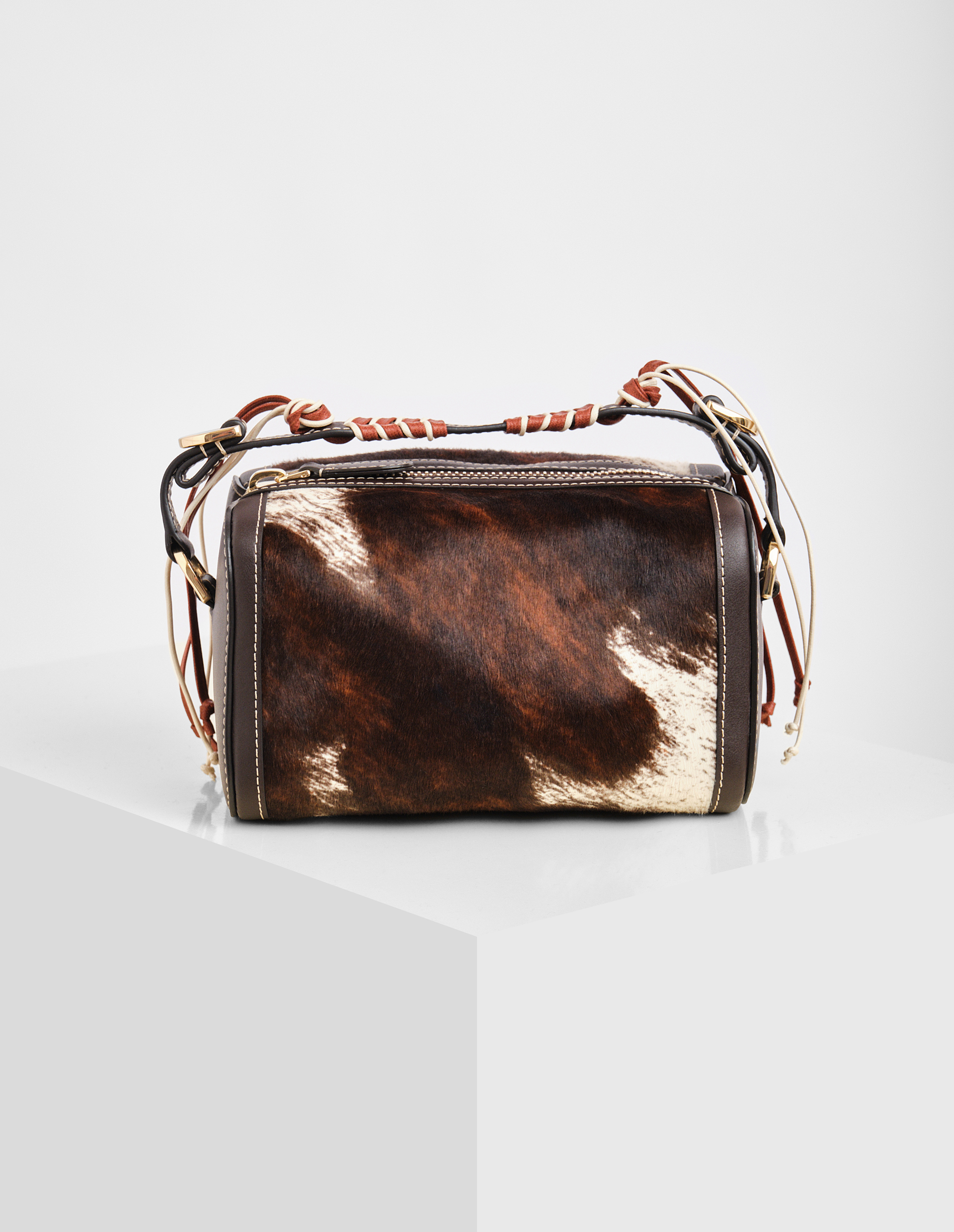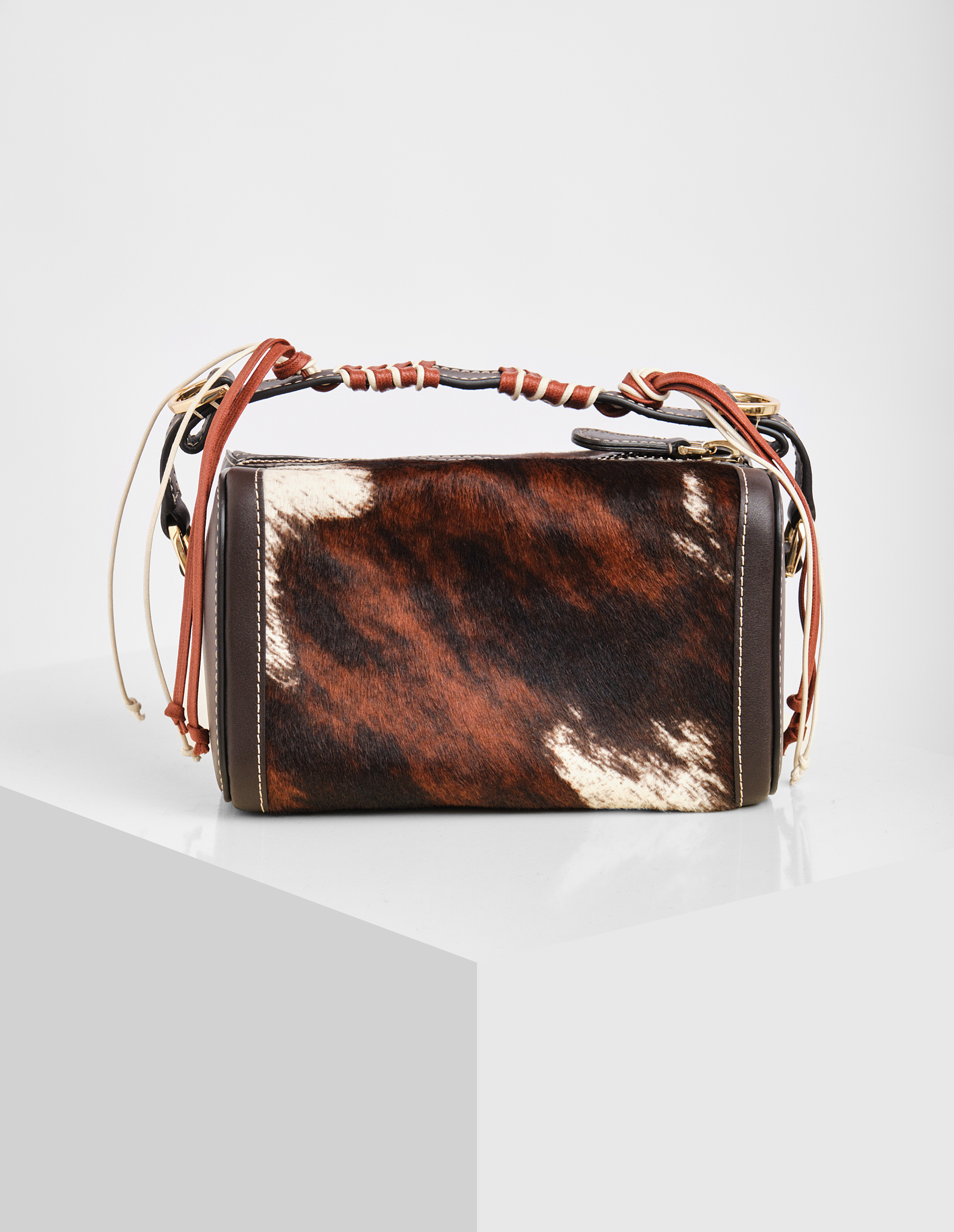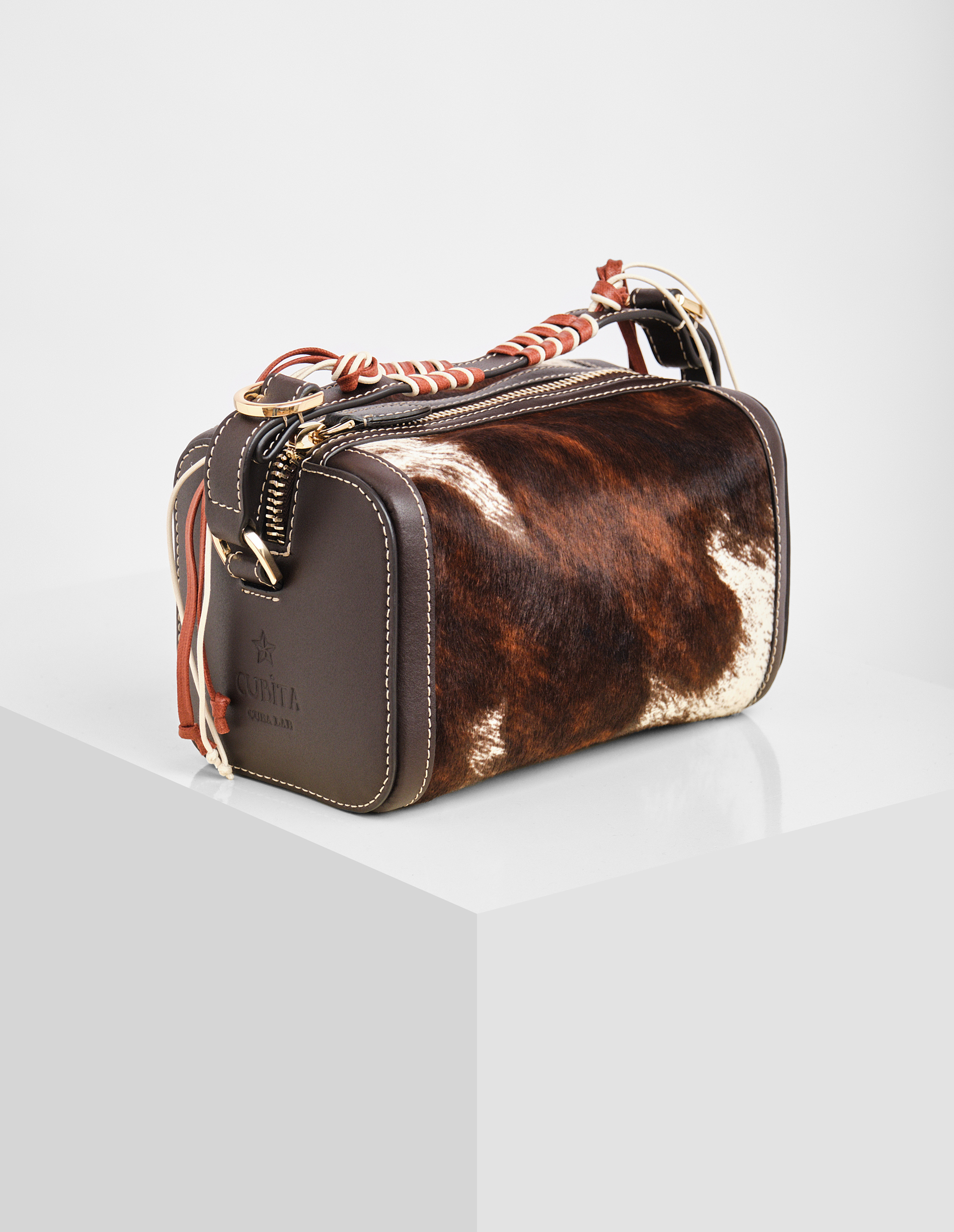 Сумка-trunk CUBITA HORSEY является дерзким переосмыслением классического сундука, где роскошь черной телячьей наппа встречается с благородными оттенками кожи каваллино в кремовых и шоколадных тонах. Технология "in forma" – традиционный шорный метод изготовления, при котором кожа формуется на специальной основе, обеспечивая идеальную геометрию и долговечность конструкции. Каждая деталь демонстрирует искусство ручной работы, которое проявляется в контрастной строчке, горячем тиснении на дне для эксклюзивного оформления и тщательной покраске всех кожаных кромок. Для большей функциональности модель оснащена небольшой ручкой с двухкомпонентными шнурами и съёмным плечевым ремнём.