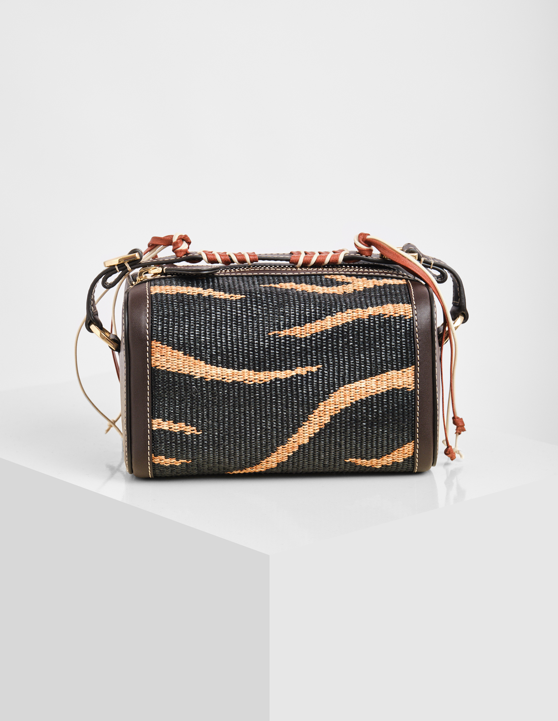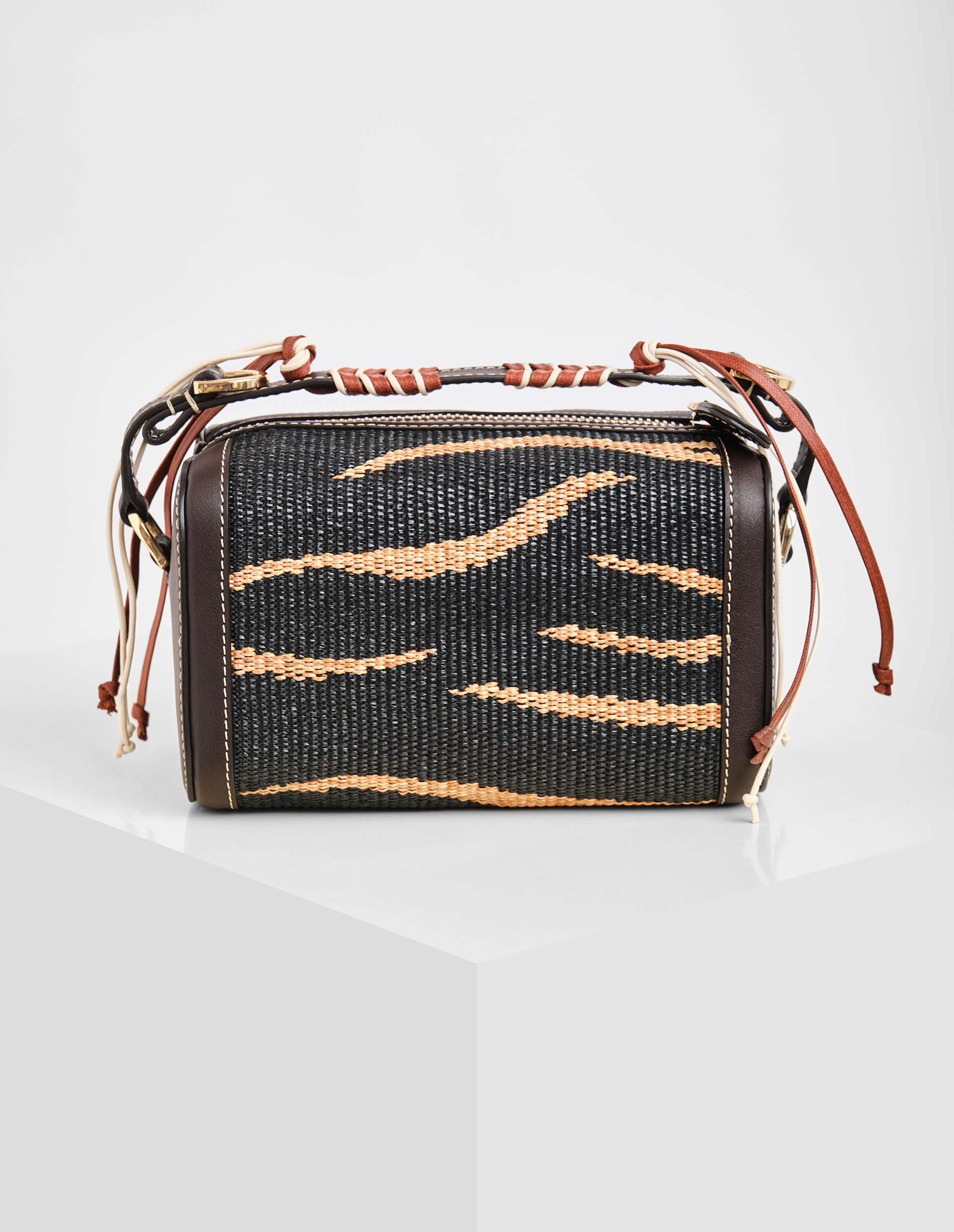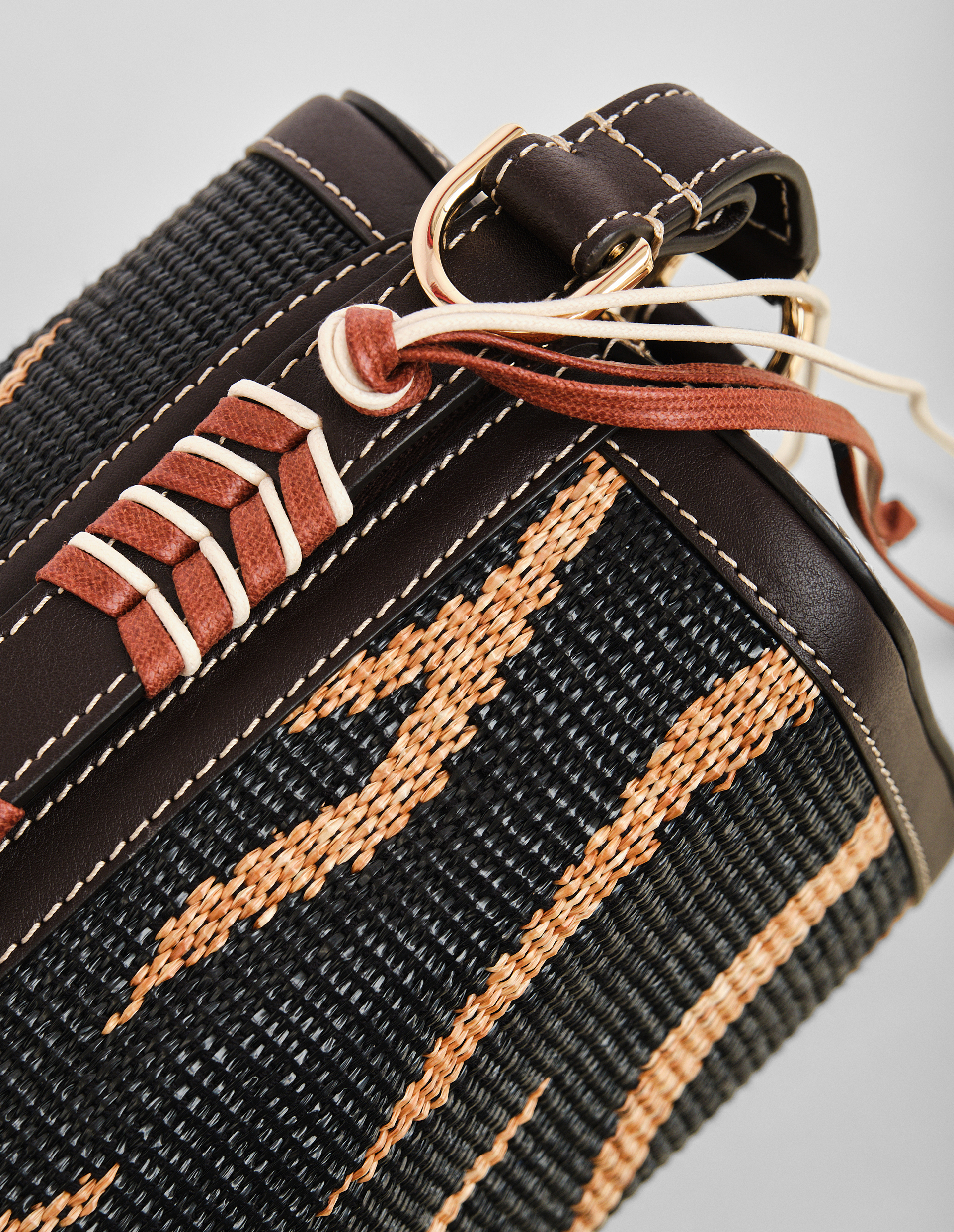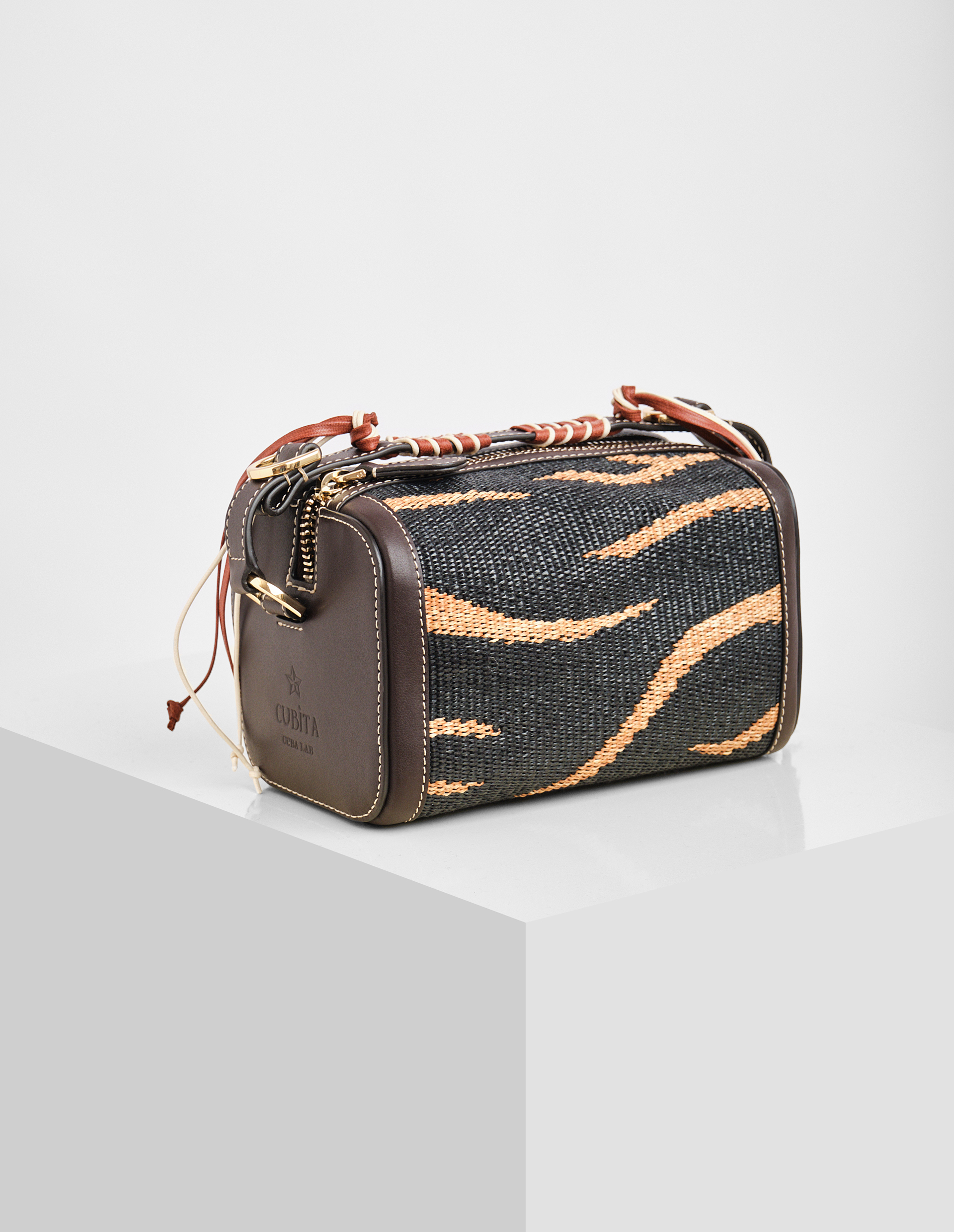 CUBITA – авангардная интерпретация классического trunk-сундука в современном исполнении Cuba Lab. Эта модель сочетает благородную черную телячью кожу с эффектным плетением из натуральной рафии, создающим динамичный зебровый узор.