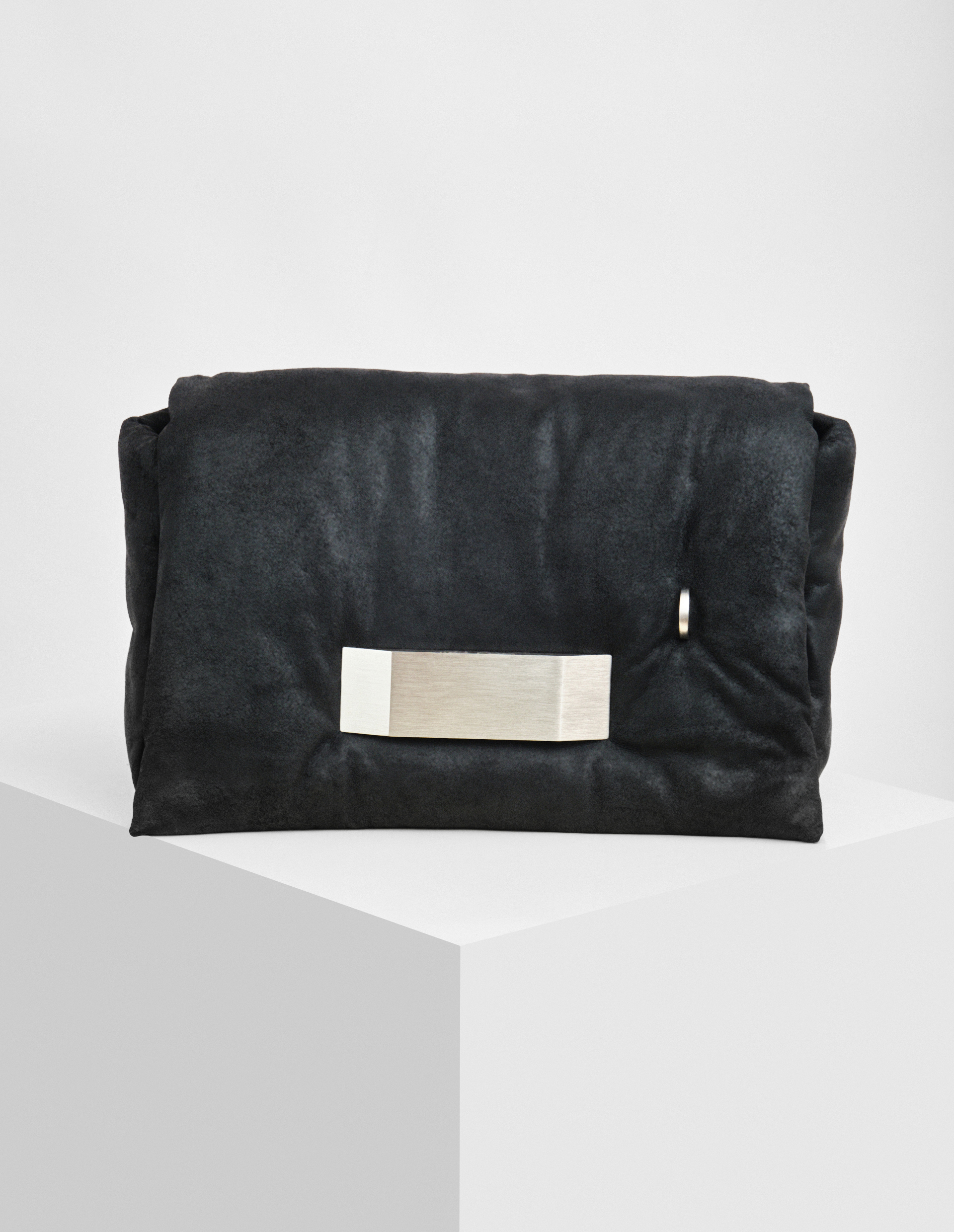 Сумка-подушка Griffin представляет собой просторный прямоугольный аксессуар с мягкой структурой и удобным передним клапаном, украшенным палладиевым трапециевидным элементом для легкого захвата. Магнитная застежка обеспечивает надежную фиксацию, а изящная D-образная петля Ponticello добавляет стильный акцент. Наполнитель из 90% полиэстера и 10% акрила сохраняет форму, обеспечивая комфорт при использовании. Лаконичный черный цвет и продуманные детали делают эту сумку универсальным дополнением как к повседневным, так и к вечерним образам. Внутри предусмотрены два функциональных кармана: один с девятью отделениями для карт и второй на молнии для мелочей.