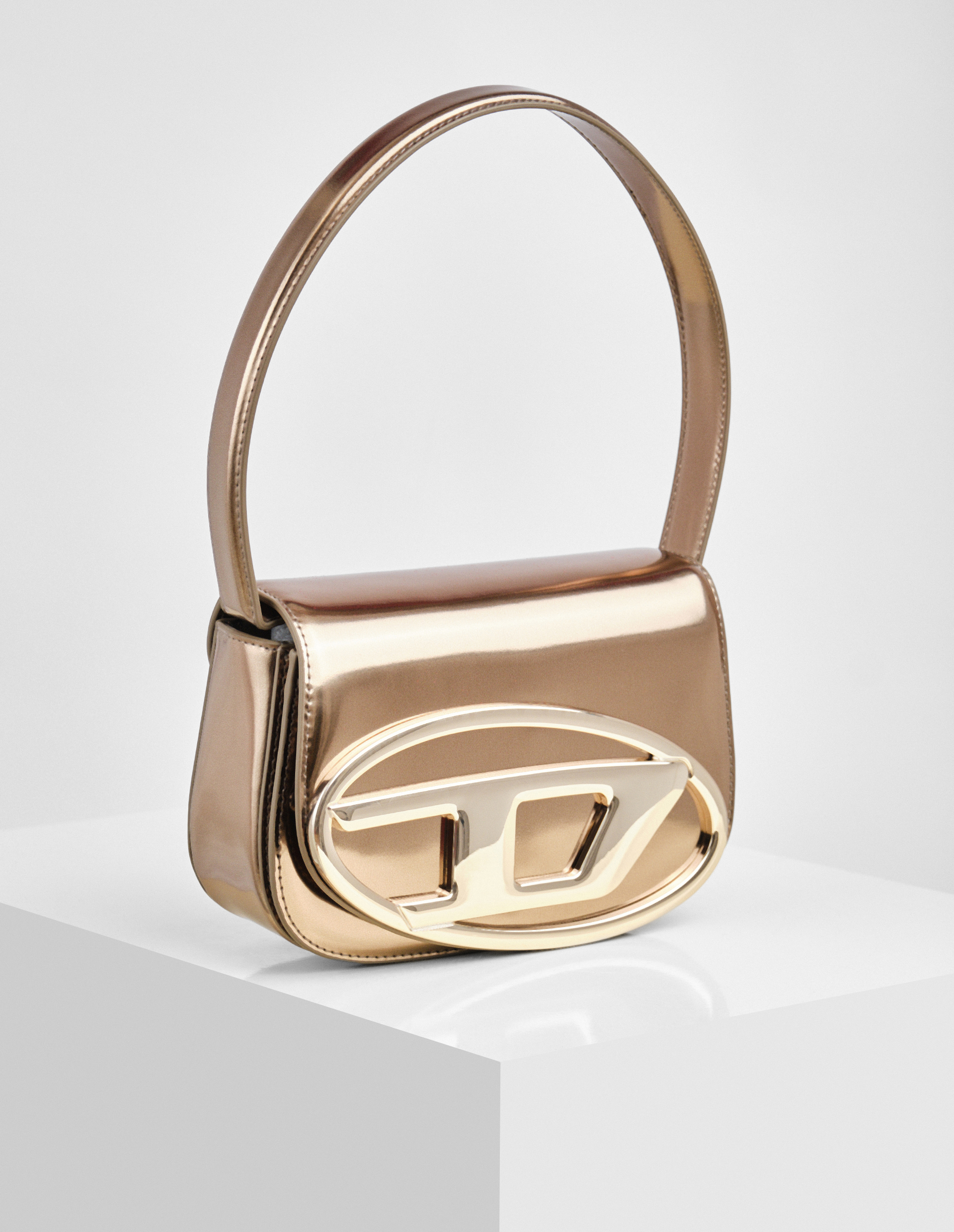Мини-сумка Diesel 1DR – это iconic shoulder bag в обновлённой зеркально-глянцевой версии из натуральной кожи насыщенного бронзового оттенка. Модель отличается компактным, но структурным силуэтом, а также несколькими вариантами ношения: в руке или на сгибе локтя, а также через плечо благодаря съемному регулируемому ремню. Главной деталью дизайна выступает гальванизированная овальная D-пластина на клапане – узнаваемый символ Diesel, который эффектно контрастирует с переливающейся поверхностью. Магнитная застёжка обеспечивает безопасность содержимого, а продуманные пропорции делают сумку идеальным выбором как для вечерних выходов, так и для повседневных образов, объединяя современную роскошь с характерным бунтарским духом.