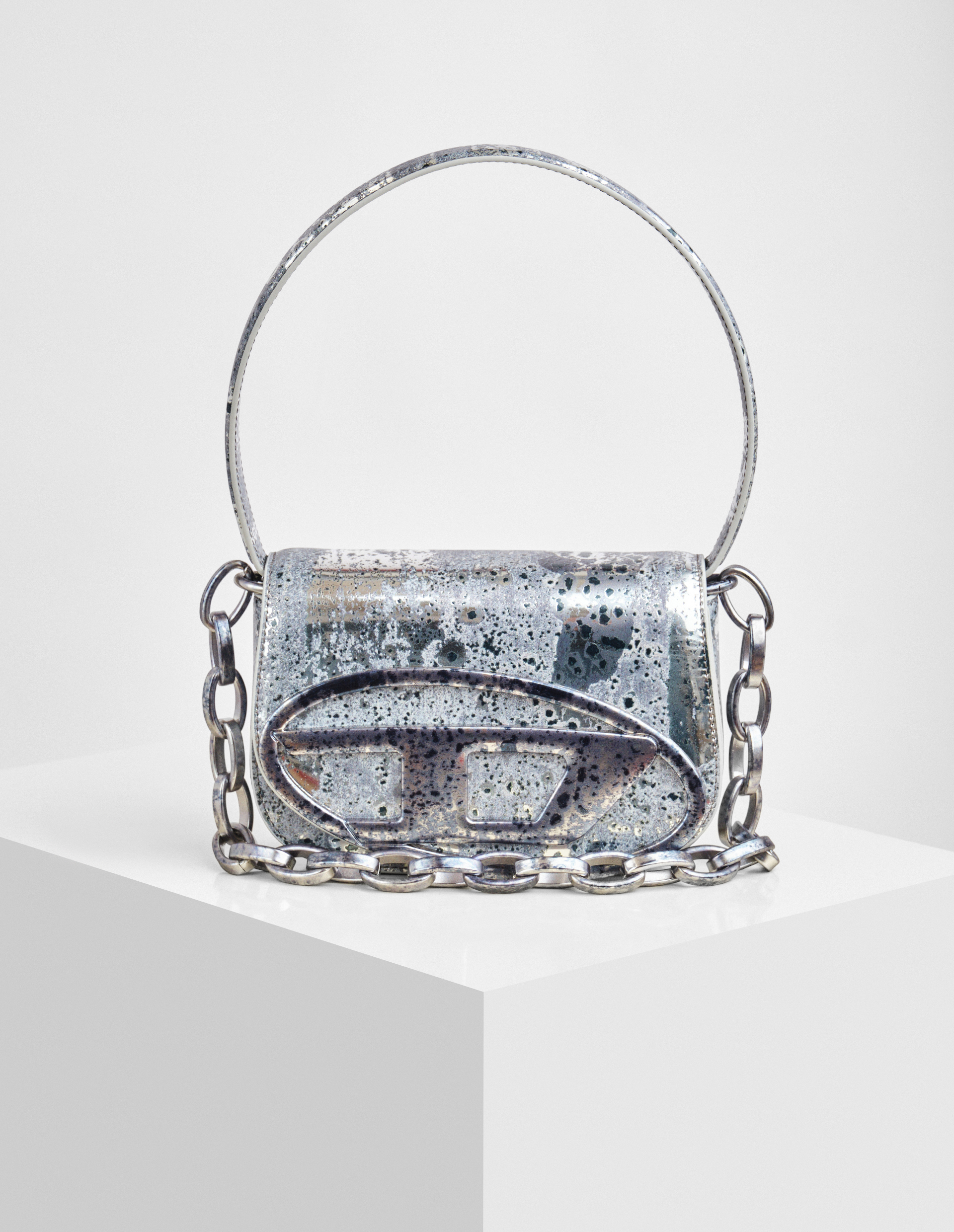 Дерзкий эксперимент Diesel, воплощающий его бунтарскую эстетику, нашел отражение в компактной сумке 1DR. Свой уникальный внешний вид она обрела благодаря зеркальной отделке полиуретанового покрытия с намеренно неровным rust-эффектом, имитирующим потёртости и ржавчину, создавая «неидеальную» фактуру с индустриальным шармом. Фирменная металлическая пластина Oval D на клапане отождествляется с текстурой основного материала, подчёркивая концептуальный дизайн. Функциональность продумана до мелочей: массивная никелированная цепочка-ручка добавляет винтажный налёт, а съёмный регулируемый ремень позволяет носить сумку через плечо. Магнитный клапан скрывает просторное отделение с накладным карманом и отсеком для мелочей.
