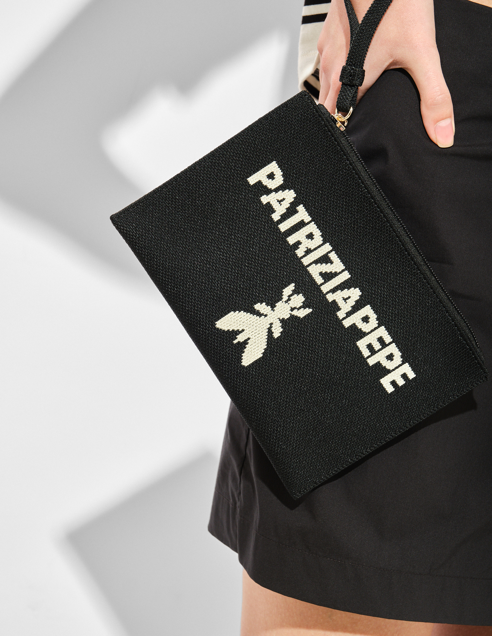 Маленькая и изысканная, модель-пошет создана для тех, кто ценит минимализм. Практичная застежка на молнию. Удобный ремешок для ношения на запястье. Стильный дизайн «колор-блок» в сочетании с жаккардовым логотипом. Эффектная фурнитура с золотистым гальваническим покрытием. Трикотажная текстура, комфортная на ощупь. Элегантная компактность на каждый день, уместная в лаконичных и романтичных образах.