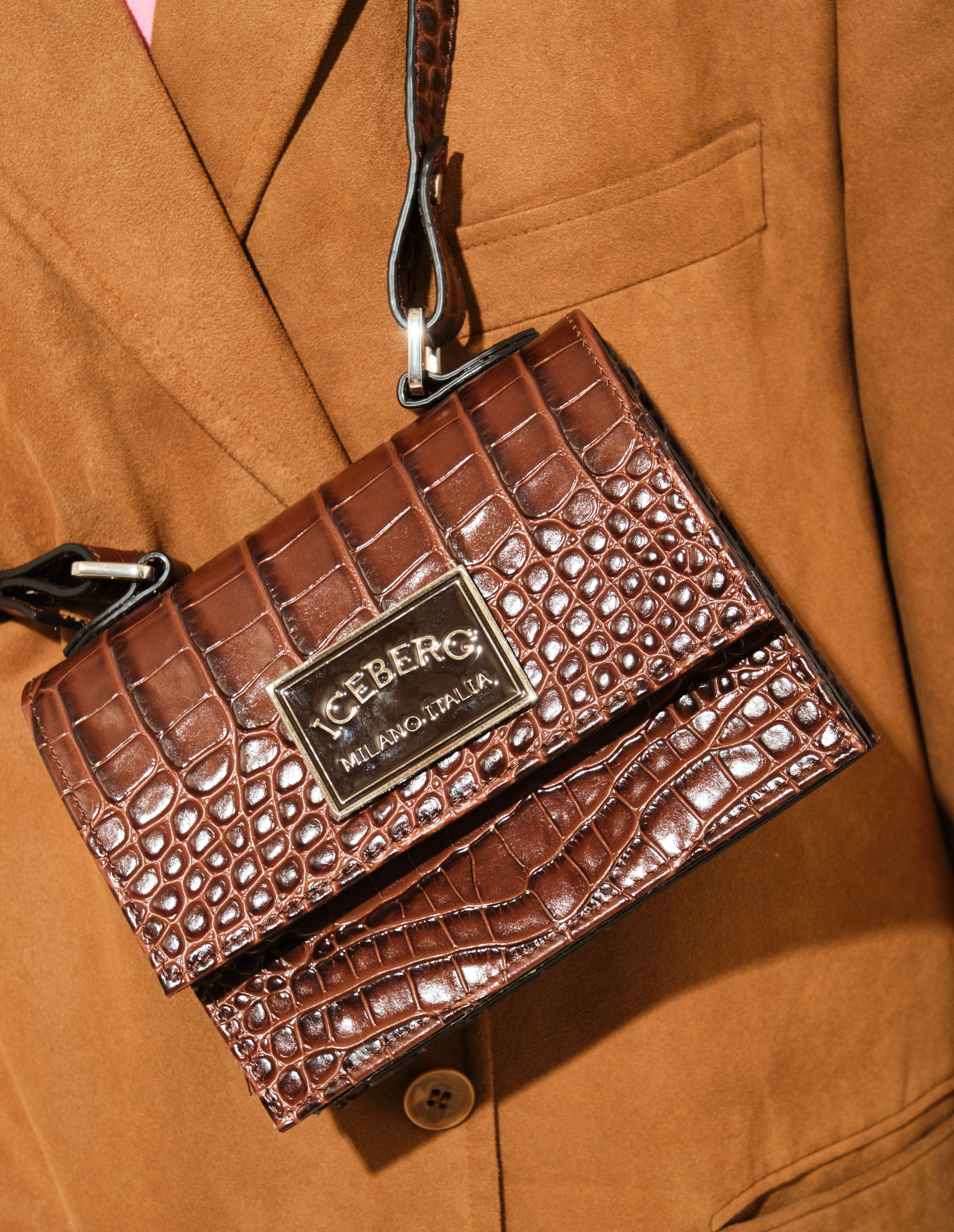 Эта мини-сумка с croco-эффектом и глянцевым покрытием в насыщенном оттенке coccio — образец итальянского мастерства ICEBERG. Фактурная поверхность натуральной кожи придает аксессуару роскошный блеск, а откидной клапан с брендированной пластиной добавляет узнаваемый шик. Удобный длинный ремень позволяет носить сумку на плече или кросс-боди, подстраиваясь под любую ситуацию. Внутри — продуманное отделение с карманом для мелочей. Компактный размер сочетается с удивительной вместительностью, а лаконичный дизайн делает эту модель вневременным must-have.