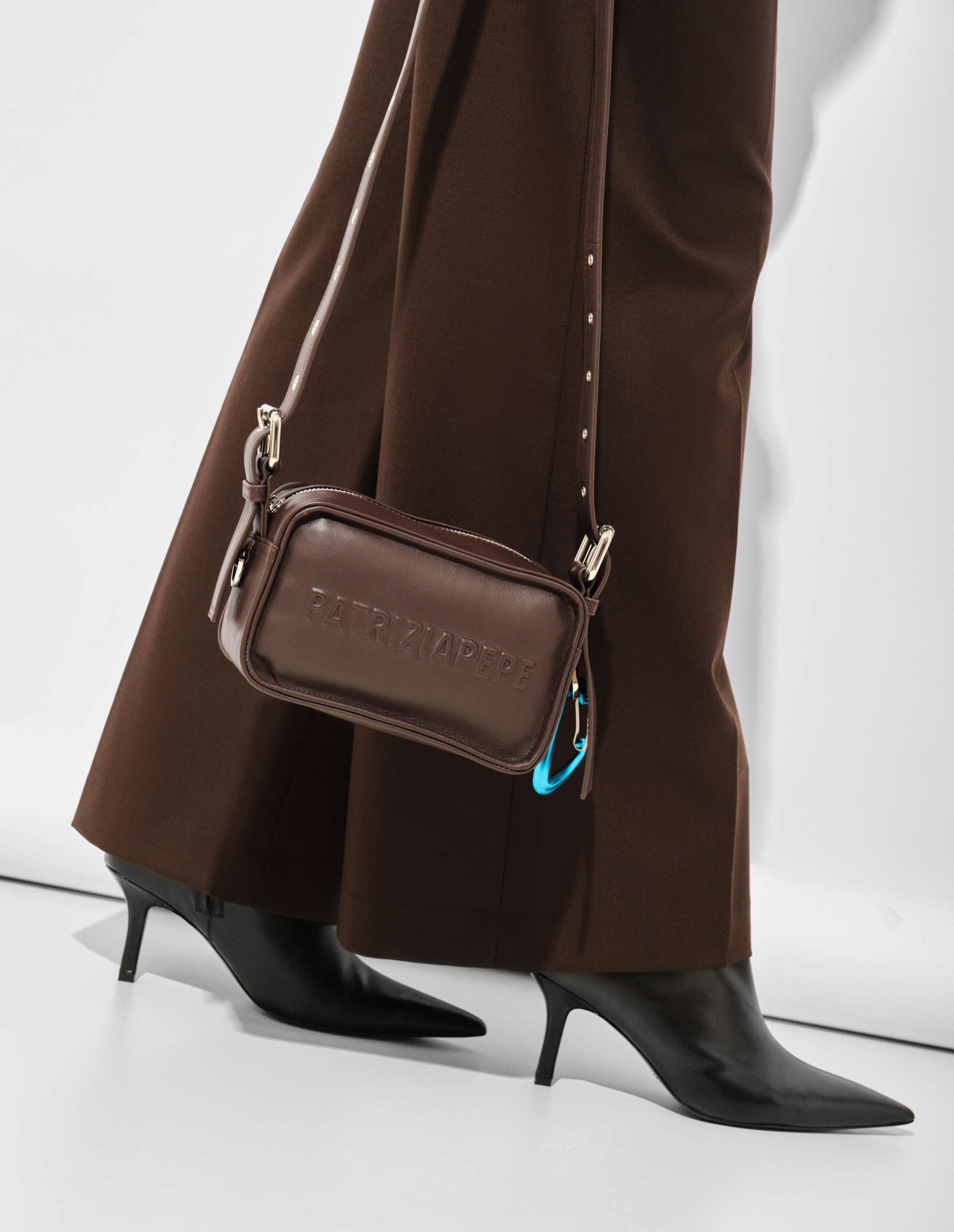 Сумка Camera Case из коллекции (IM)PERFECTION воплощает синтез традиционного мастерства и актуальных тенденций. Модель из цельнокройной телячьей кожи оттенка Deep Chocolate передает концепцию осознанной неидеальности как новой формы роскоши. Тисненый логотип «PATRIZIA PEPE» и съемный регулируемый ремень демонстрируют внимание к деталям. Функциональность подчеркивают молния с двойными пуллерами, внутренний карман и открытое отделение. Сезонным акцентом стал карабин с гравировкой, добавляющий современный штрих к классическому дизайну. Габариты 24×14,5×7 см обеспечивают удобство для городского использования. Серебристая фурнитура и брендированная подкладка завершают образ, отражая философию бренда.