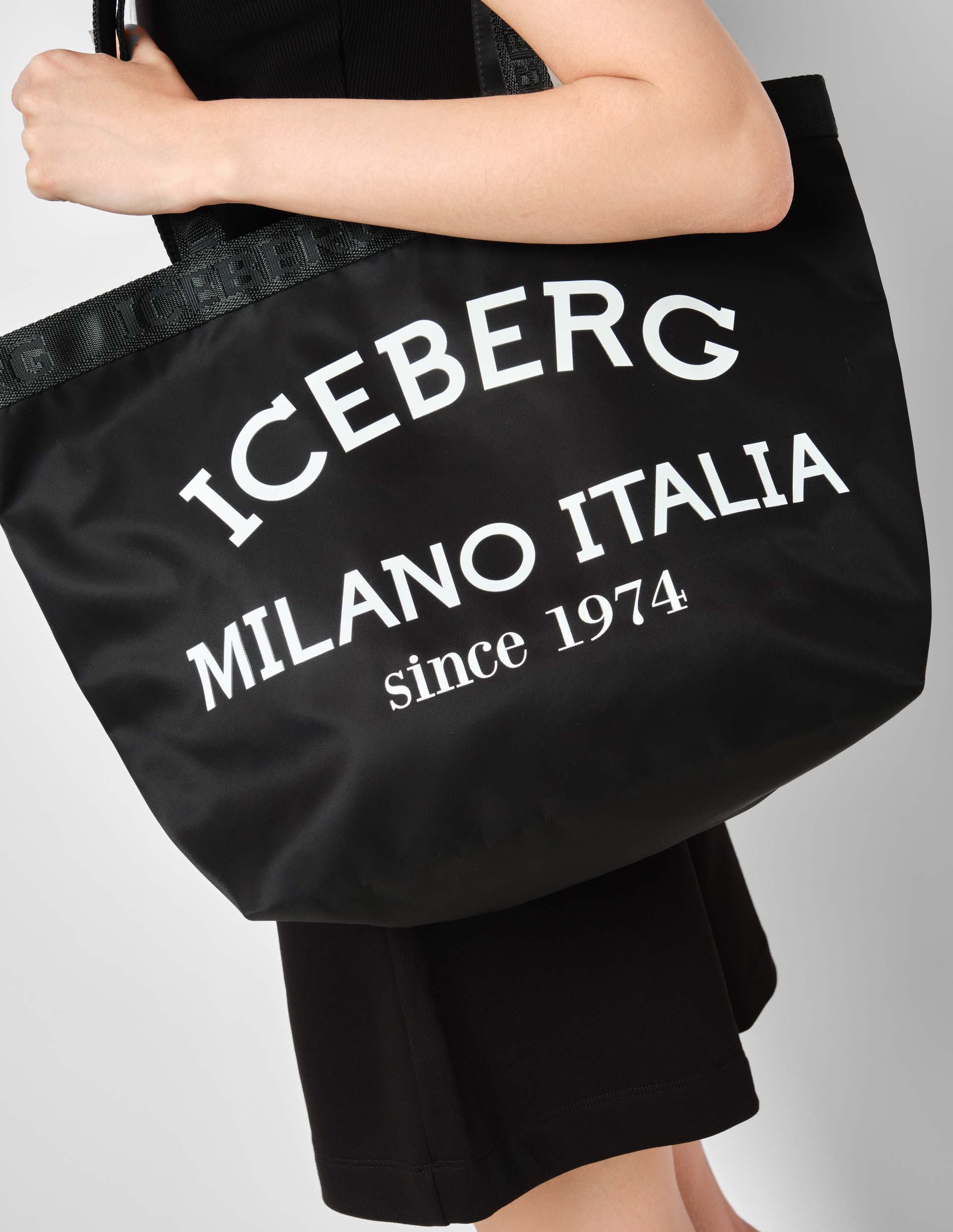 Этот шопер от Iceberg отличается практичной конструкцией и современным дизайном с фирменным логотипом контрастного цвета. Он также дополнен холщовым профилем с инкрустированным лого в тон. Сумка выполнена из непромокаемого нейлона, который устойчив к повреждениям и загрязнениям, а также имеет просторное отделение для ваших покупок. Во внутренний карман на замке можно положить телефон, ключи и документы. Прочные длинные ручки позволят носить аксессуар на плече либо в руках.