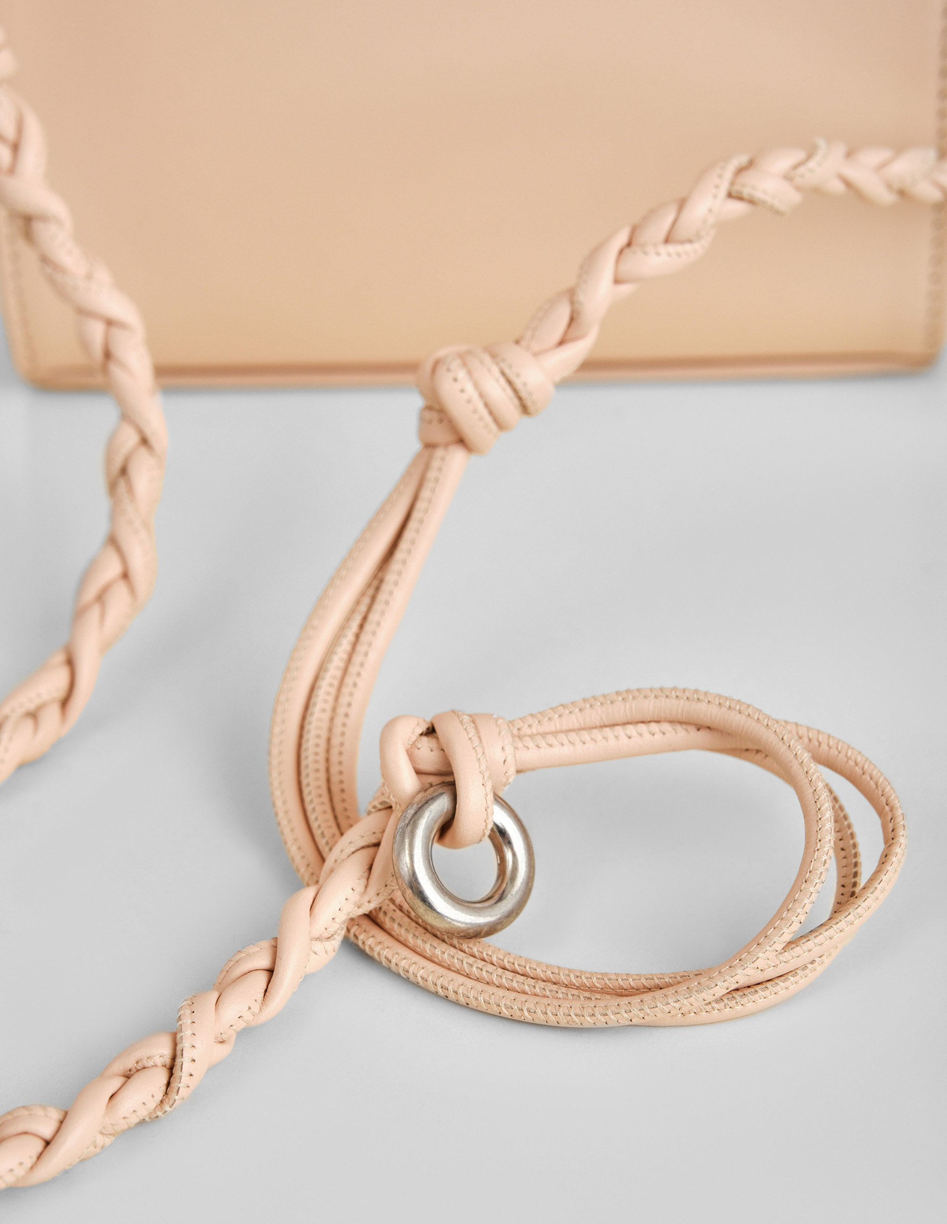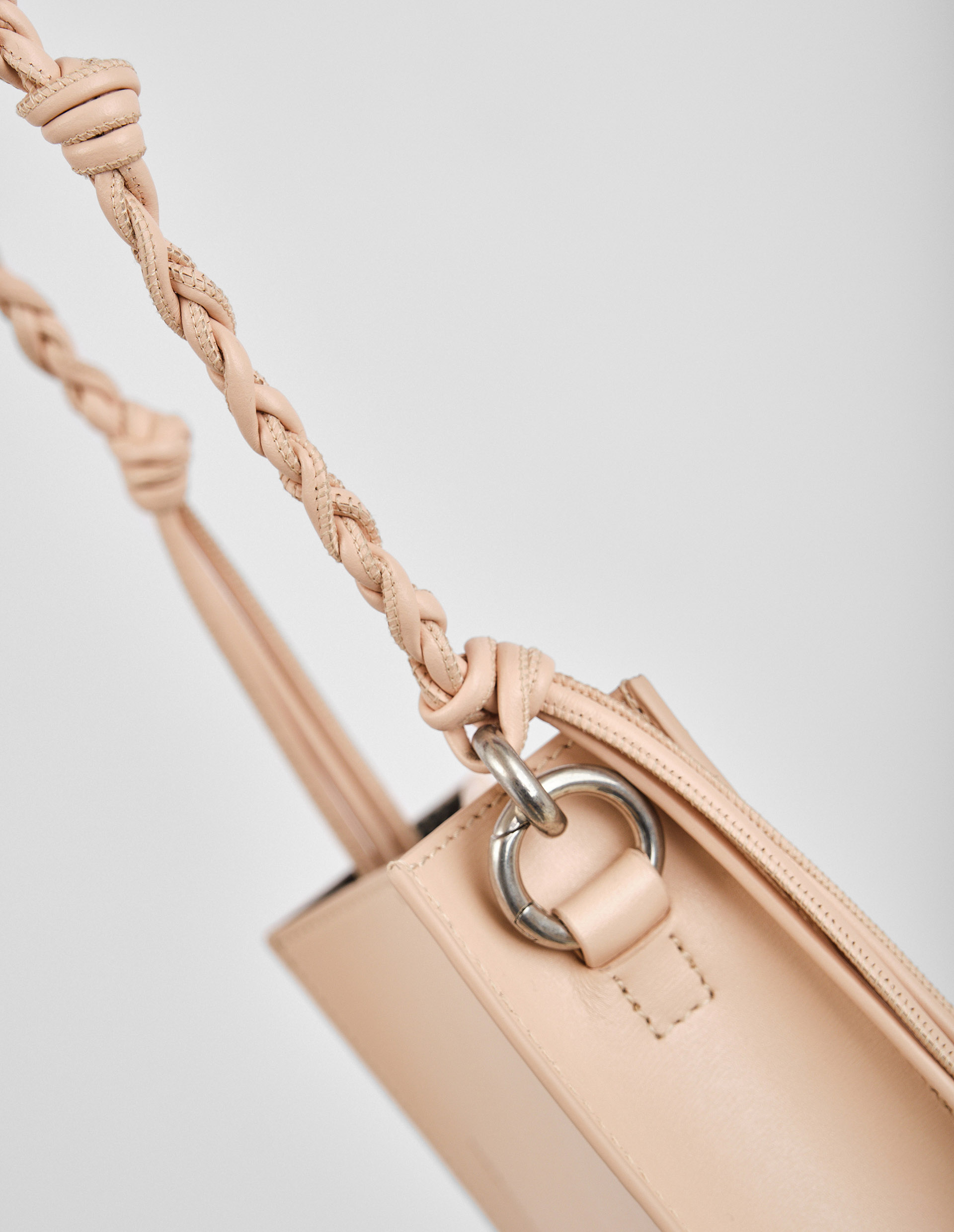 Бежевая сумка Tangle с узлами на ручке в размере mini