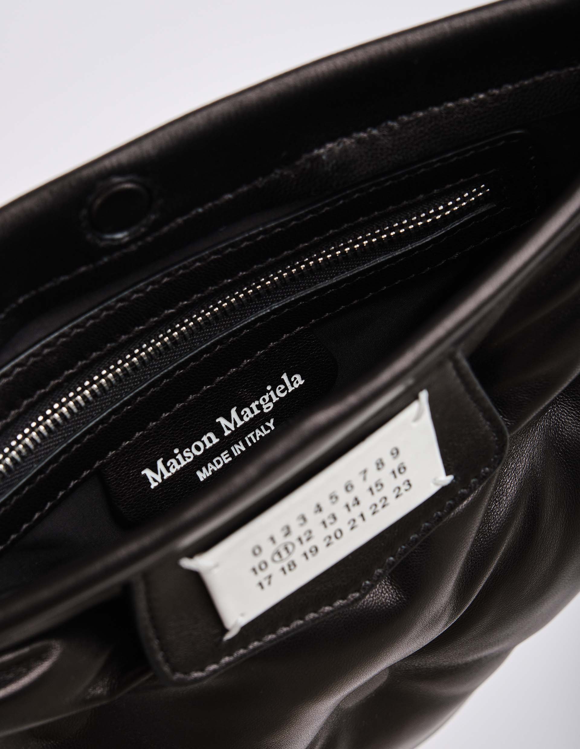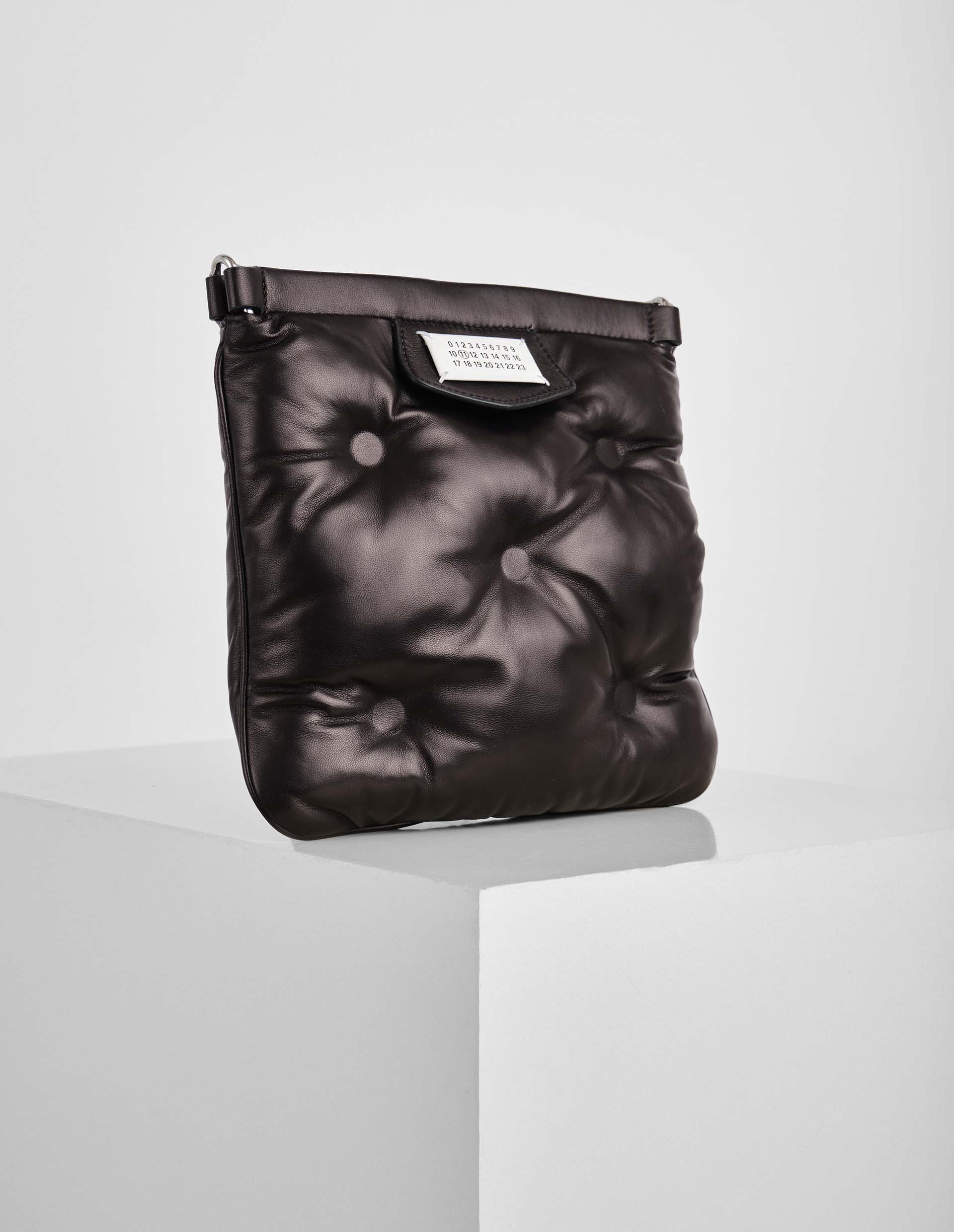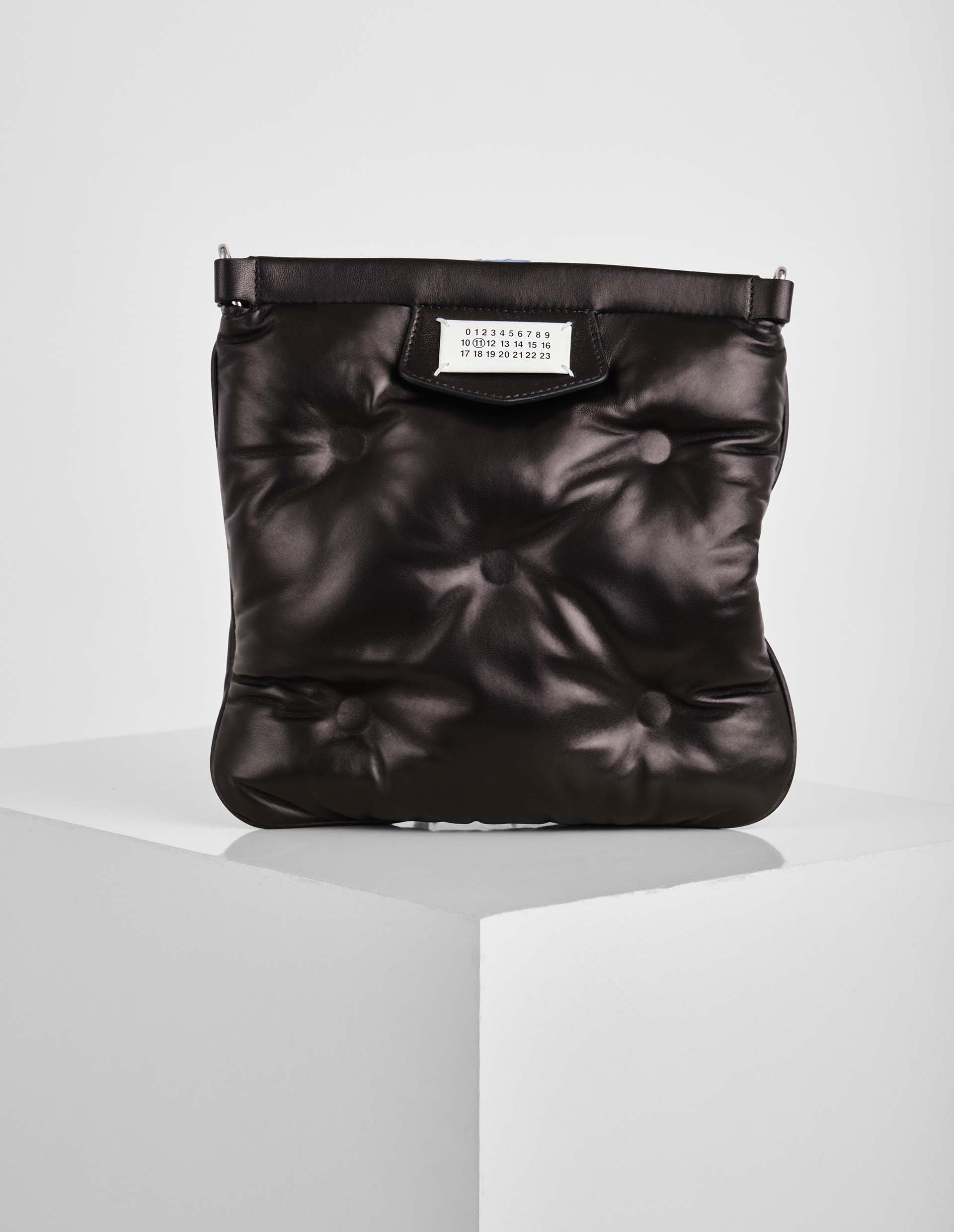 Акцентная база — так можно описать представленную модель сумки Glam Slam подиумной коллекции от модного дома Maison Margiela. Стеганый материал изделия из кожи наппа имитирует матлассе – стиль одеял, сшитых вручную. В полуквадратной форме сумка кажется еще интереснее и изящнее и станет отличным дополнением к любому повседневному образу. Насыщенный черный цвет модели является универсальным и практичным, так что она без труда впишется в любой гардероб.