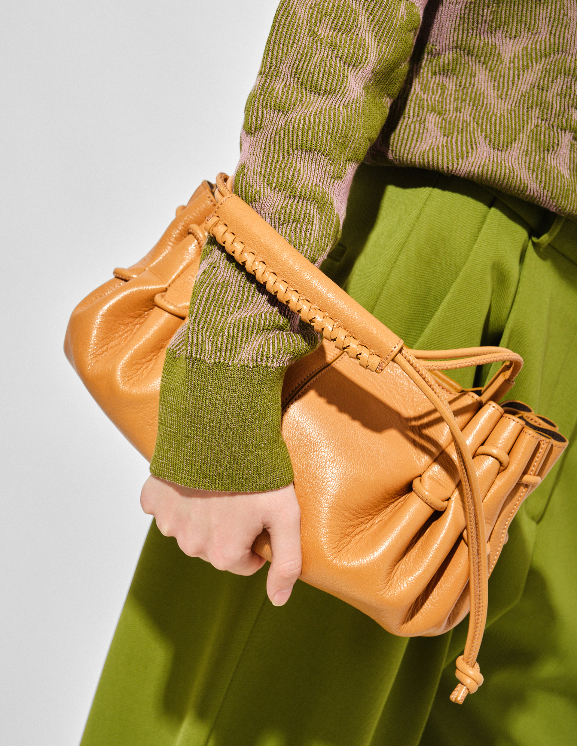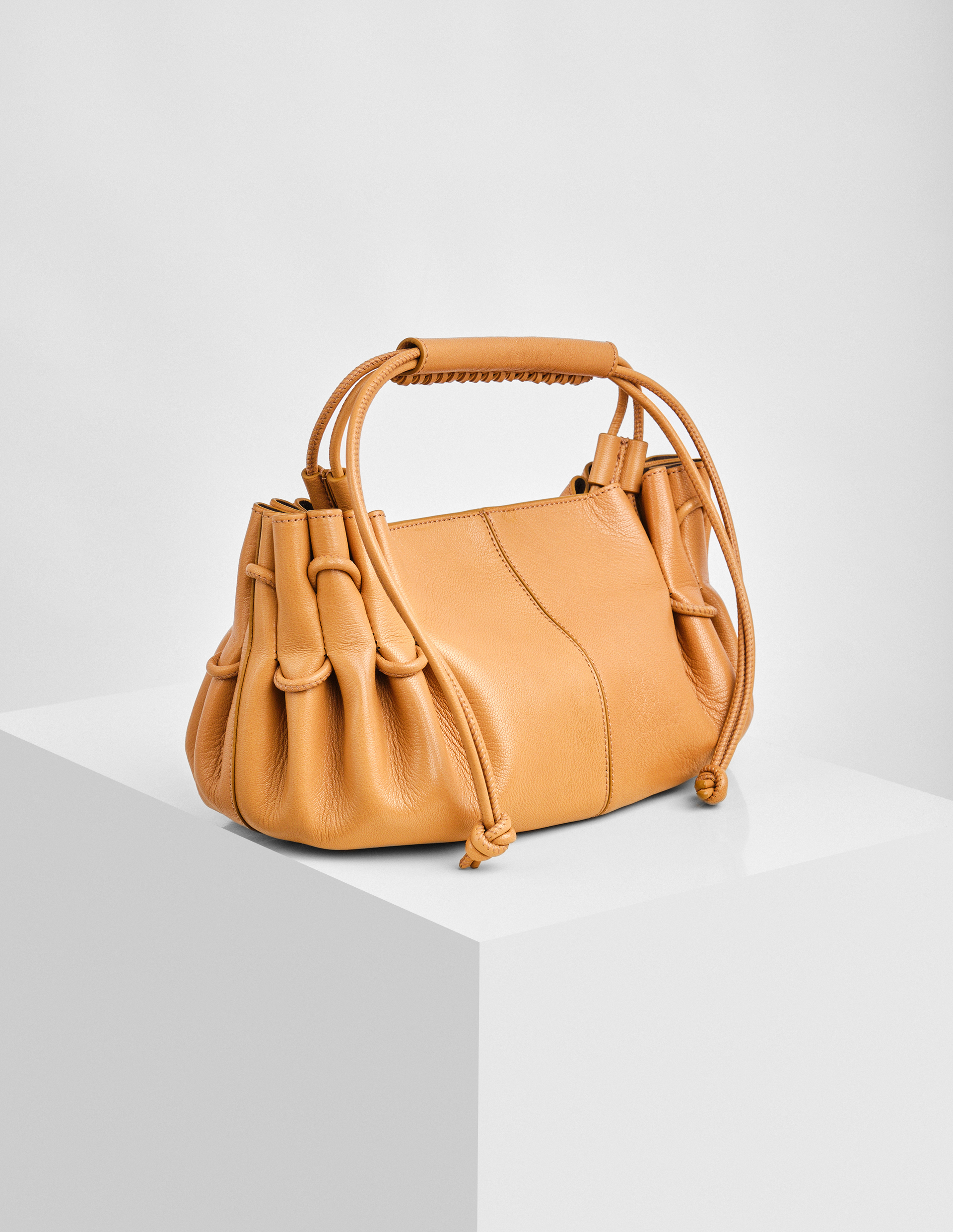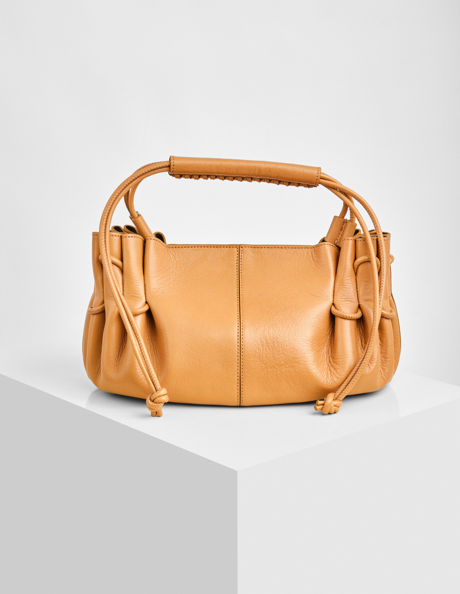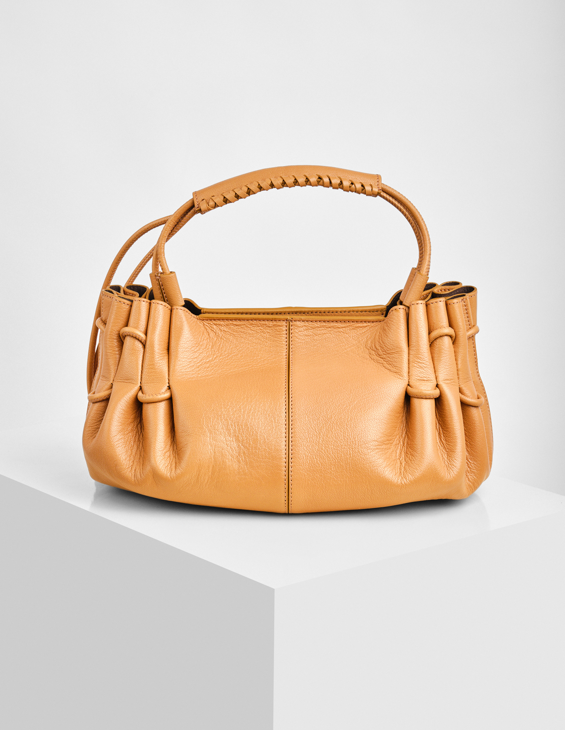 ARTA — сумка, способная рассказывать повесть: о мастерах из испанских ателье, чьи руки помнят вековые техники, о коже, которая с годами становится только мягче, о средиземноморской философии, где красота рождается в простоте. Изготовлена из мягкой блестящей овчины, она легко формирует плиссированные складки, словно античные колонны. Плетеная ручка — дань традиционным испанским корзинам и морским узлам. Ее можно трансформировать в удлиненный плечевой ремень или сделать короче. Магнитная застежка отражает функциональность, спрятанную за безупречной эстетикой. Оттенок Light Camel — не просто цвет, а метафора: теплый, как песок на побережье Коста-Брава, благородный, как старое вино, вневременной, как само мастерство. Это сумка, которая не подстраивается под тренды — она создает историю.