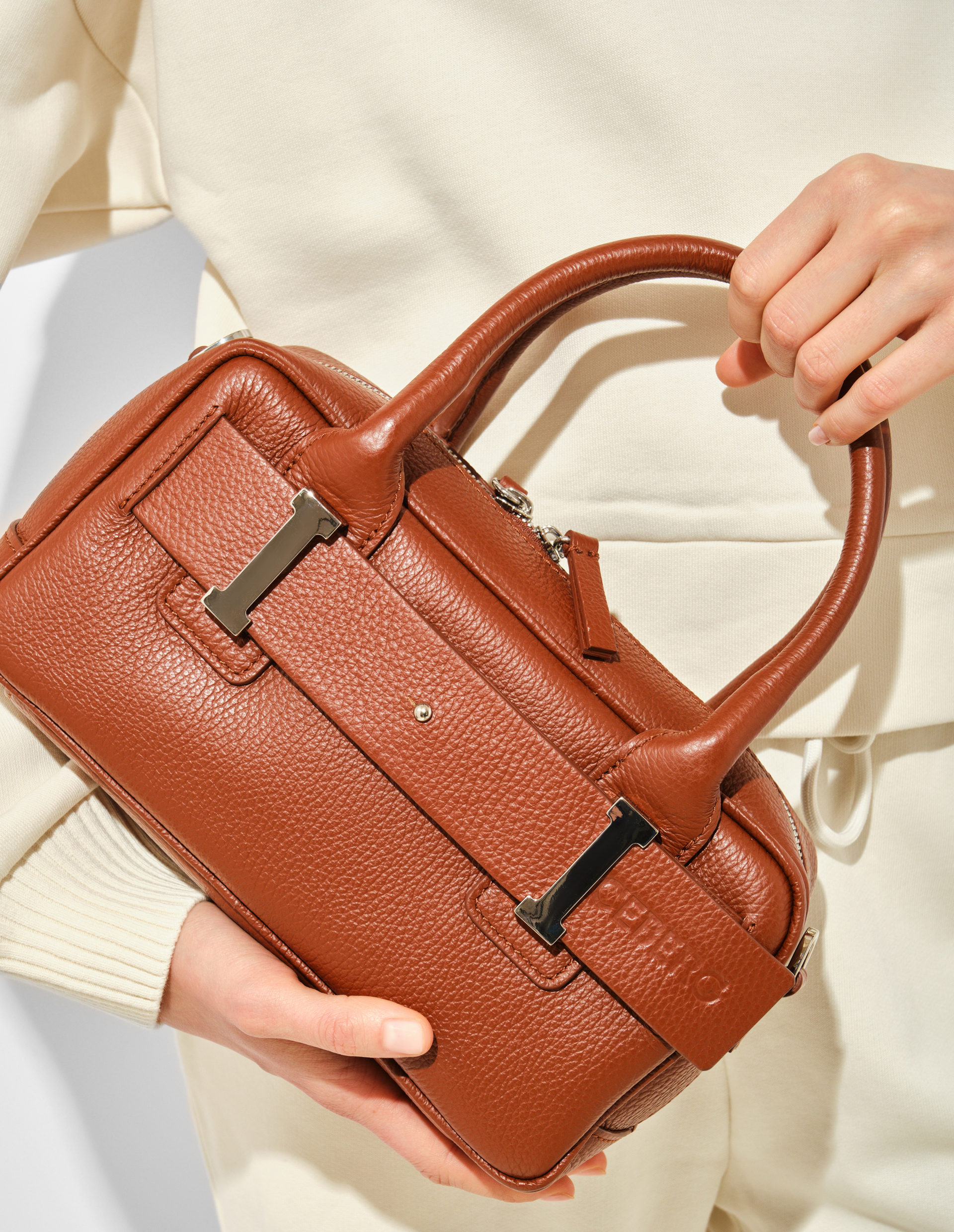 Это сумка, в которой фирменный шик ICEBERG выражен через безупречную материальность. Модель сшита из мягкой, тактильной кожи теплого оттенка лесного ореха — цвета, который несёт в себе элегантность и универсальность. Её дизайн построен на смелых, но сбалансированных деталях: акцентные пряжки с логотипом «I» добавляют дерзкий архитектурный элемент, в то время как тиснёный логотип ICEBERG служит тонкой, изысканной подписью. Удобная длинная ручка позволяет носить её через плечо, освобождая руки, что делает этот аксессуар идеальным спутником для динамичного городского ритма, завершая образ отточенным и уверенным штрихом.