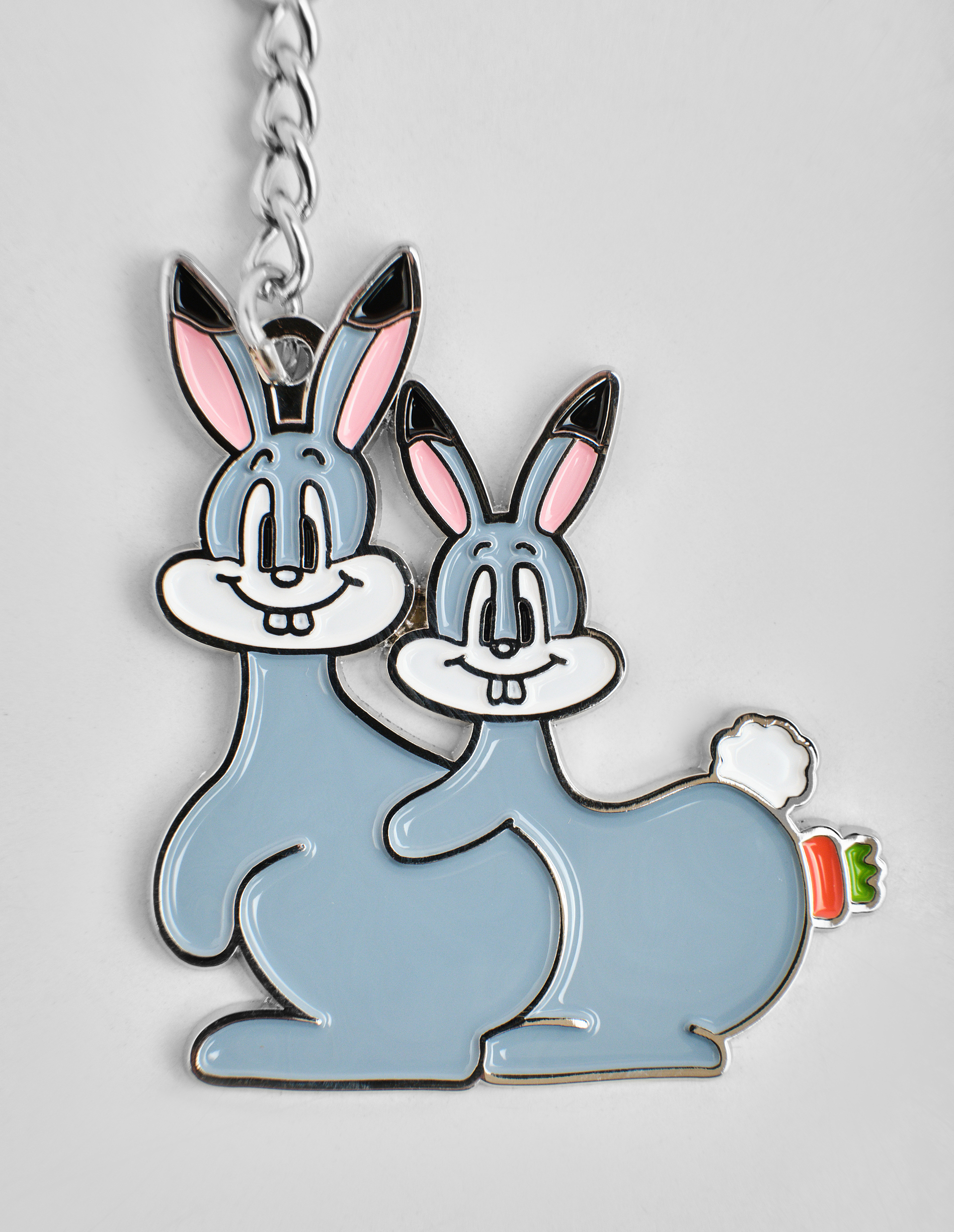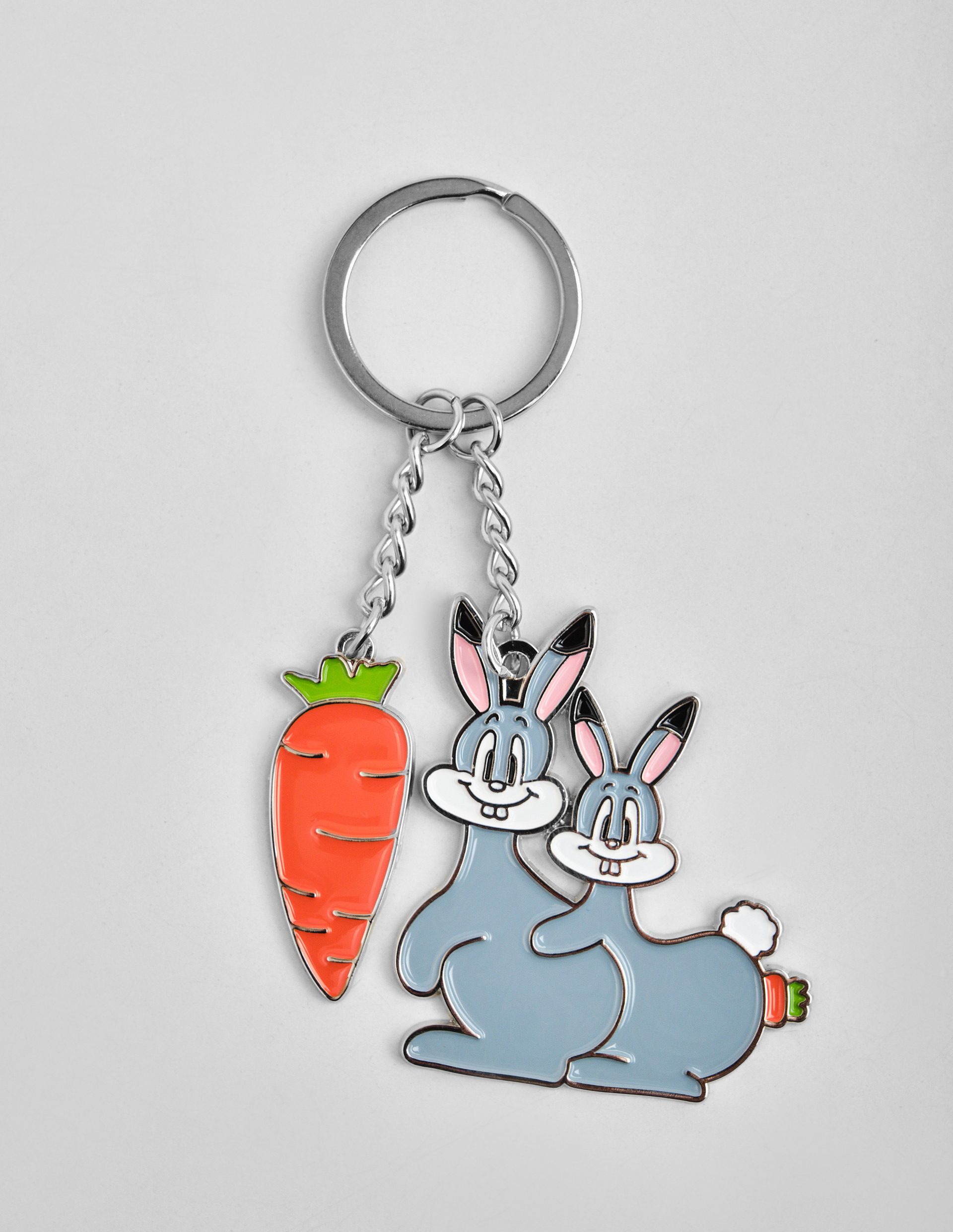 Композиция из двух подвесок брелока разыгрывает целую мини-драму: зайцы в пылу страсти и рядом — аппетитная, одинокая морковка. Название «Carrot Affair» — виртуозный каламбур, превращающий «роман» (affair) в «морковное дело». Это история о запретном плоде, тайных связях и о том, что самые горячие романы иногда заводятся с тем, кто буквально «полезен для здоровья». Carne Bollente упаковывает весь скандальный фарс в крошечный, яркий аксессуар.