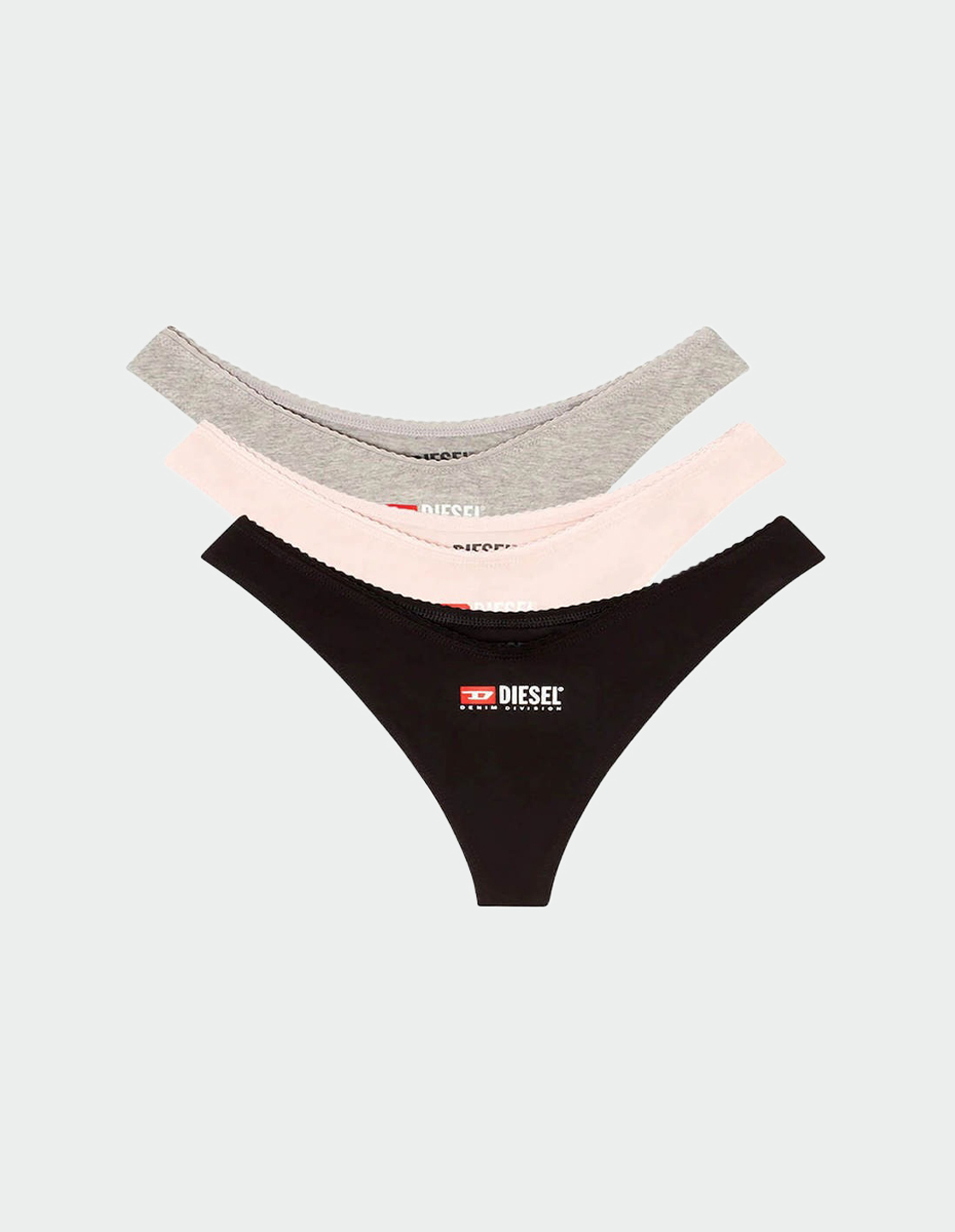 Стринги Diesel с завышенной талией в оттенках графитового серого, нежной розы и угольно-черного формируют элегантный силуэт, подчеркивающий изгибы тела. Центральный принт Denim Division и нежное пико-кружево по краю добавляют изысканный акцент. Дышащая ткань на основе эластичного хлопка обеспечивает деликатный комфорт, сохраняя гигиеничность в течение дня. Упакованные в фирменный кейс, они превращают базовый предмет в стильный аксессуар.
