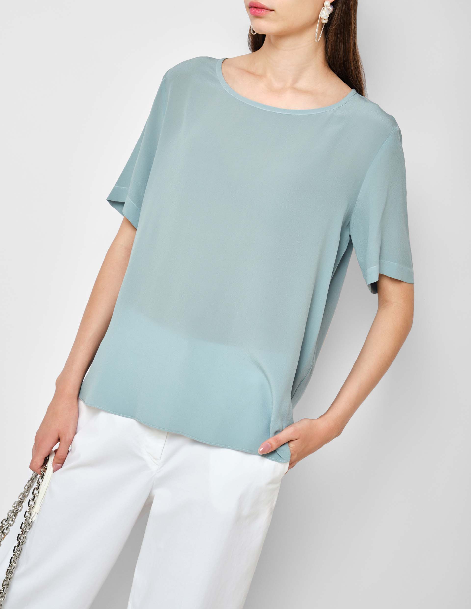 Роскошная блуза из 100% шелка от Antonelli Firenze дает новое определение современной элегантности. Здесь изумительная мягкость и блеск ткани формируют союз с летящим, элегантным силуэтом, удовлетворяя стремление к изысканному образу. Качество исполнения соответствует самым высоким стандартам, подтверждая признанный во всем мире статус made in Italy. Эта блуза с прямым кроем, чистым, нежным оттенком подчеркнет благородную сдержанность женского облика и осуществит потребность в практичности, долговечности, оставаясь вещью вне времени и трендов.