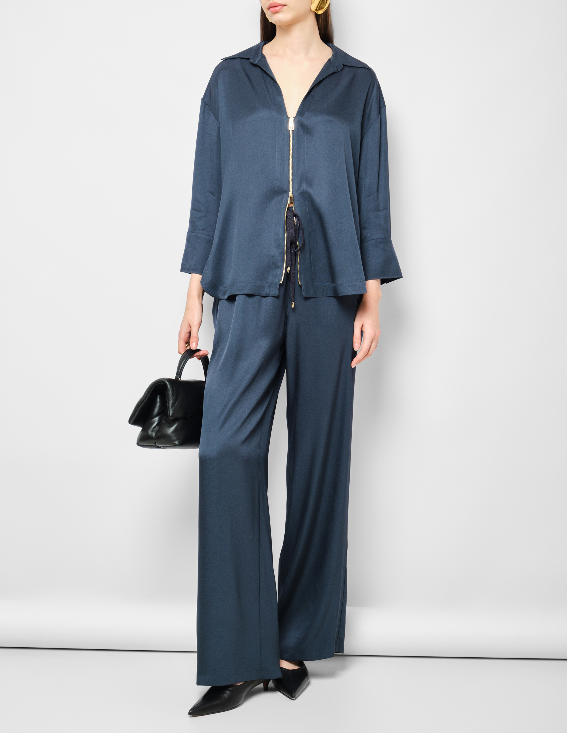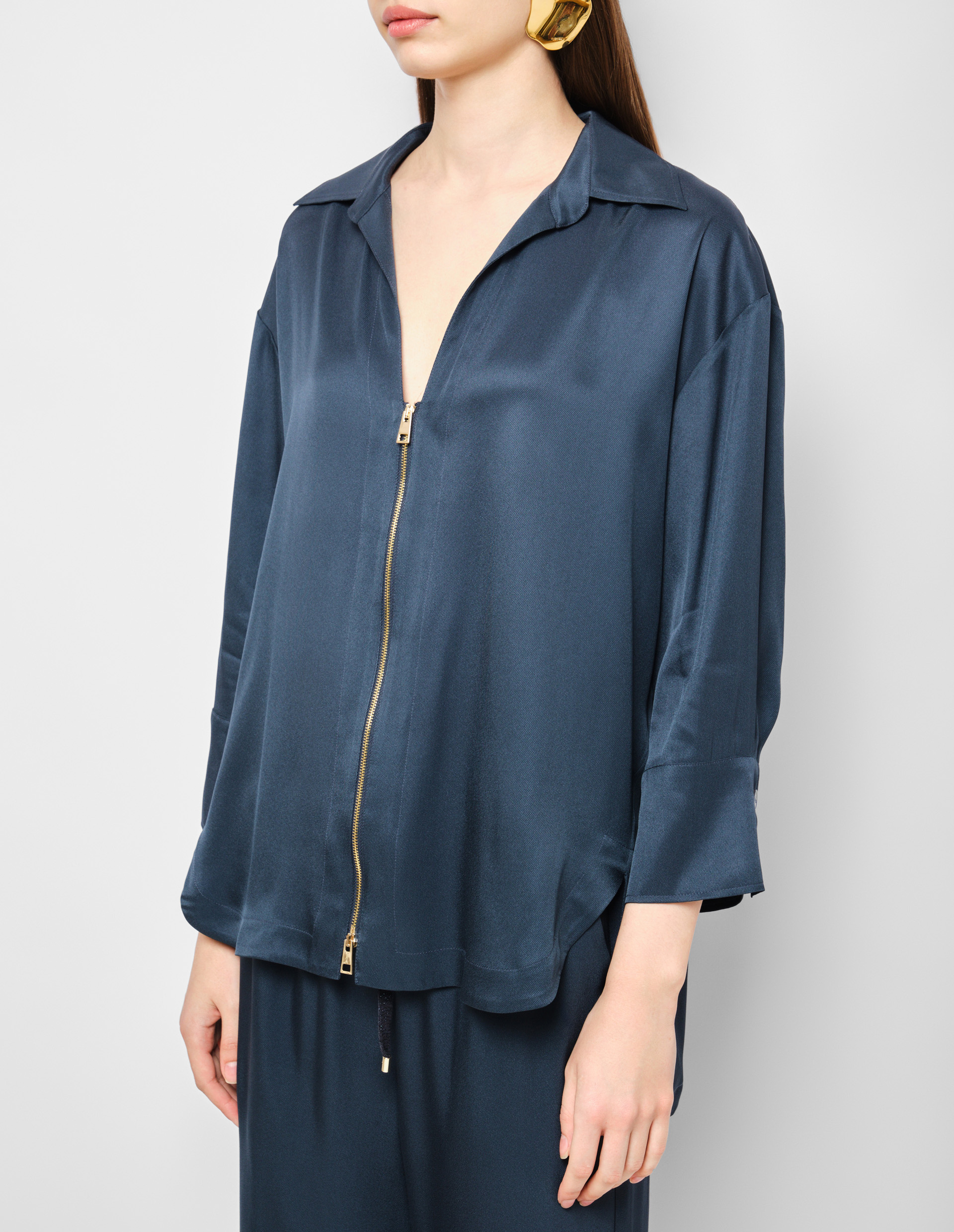 Темно-синяя блуза на молнии из смесового шелка