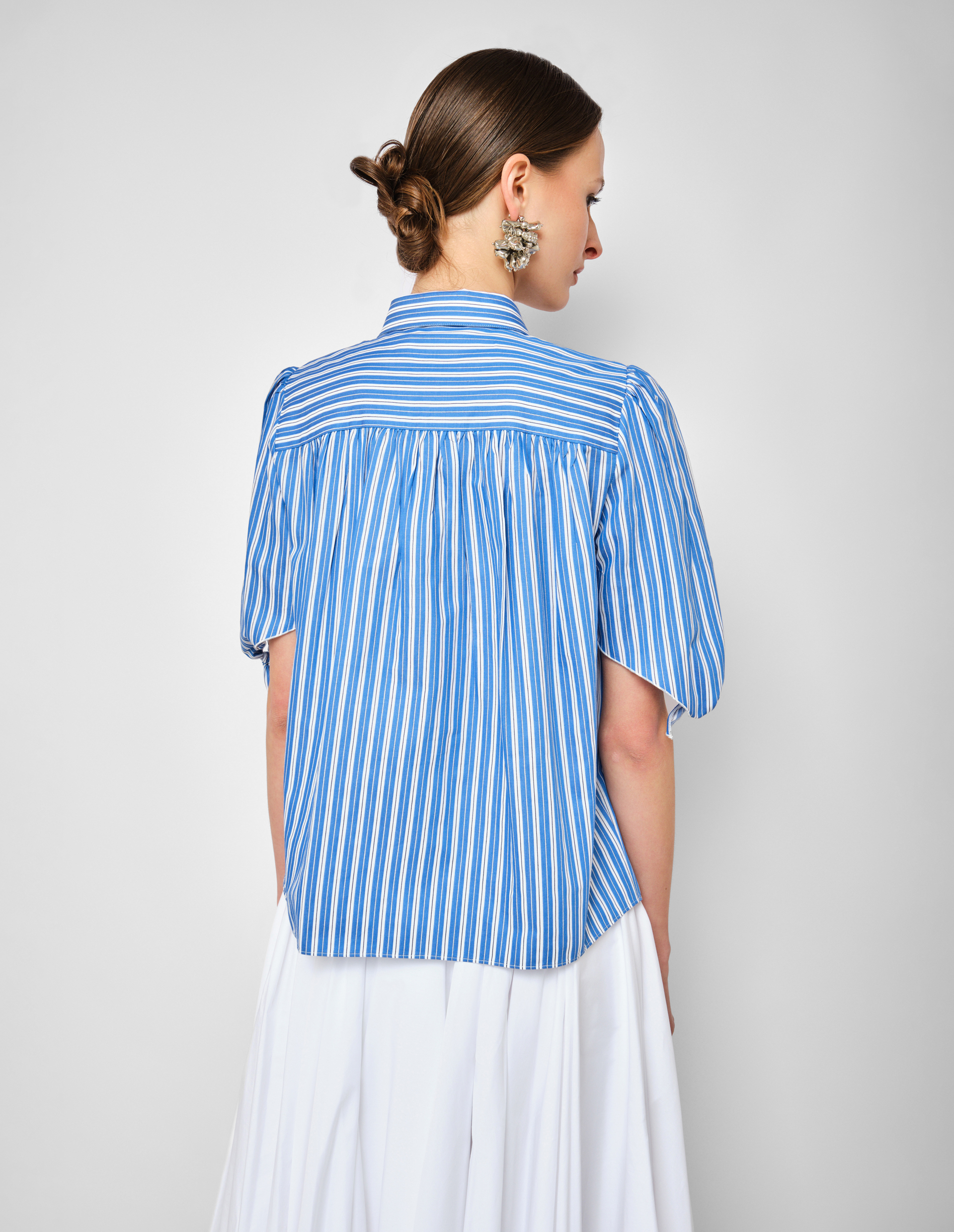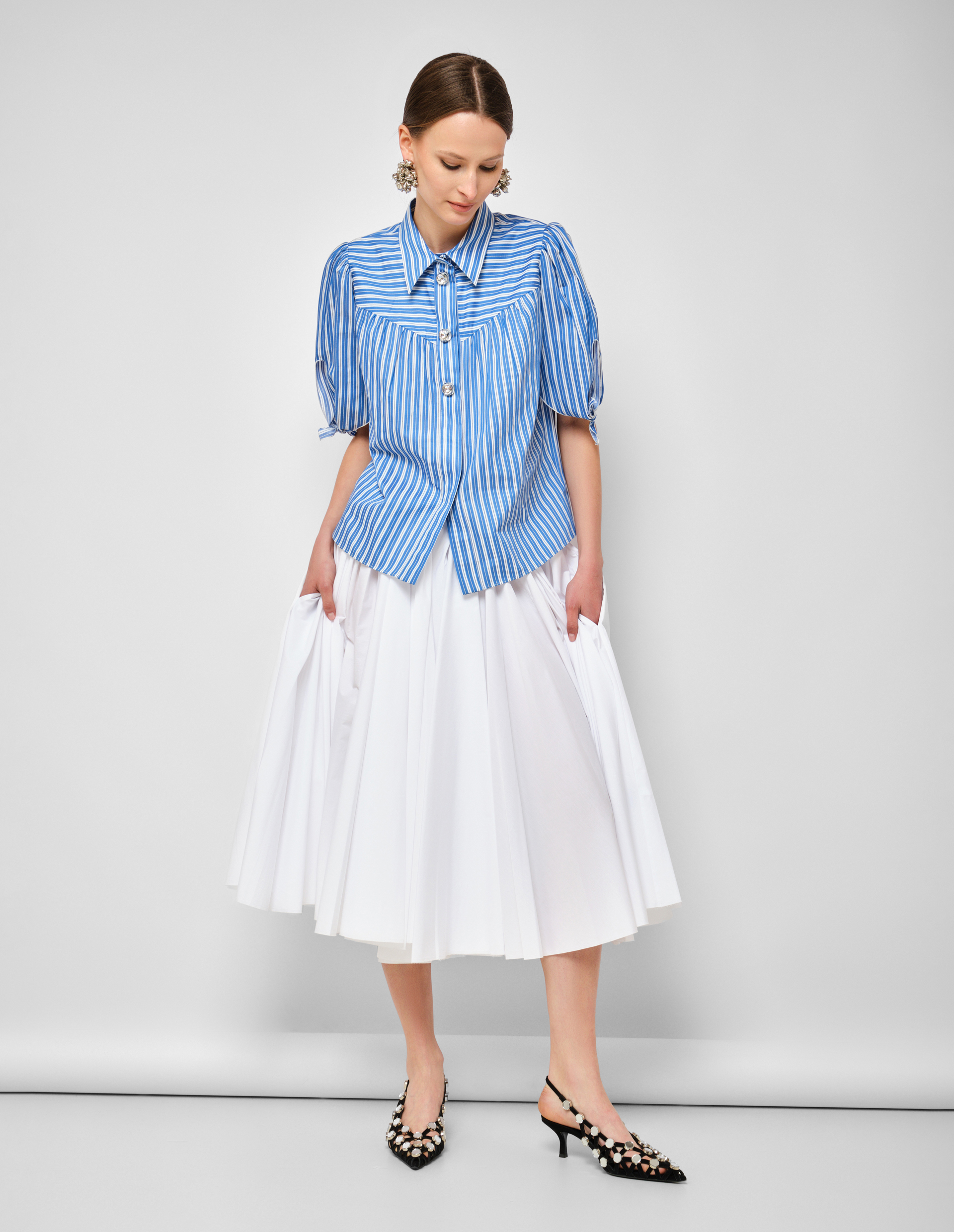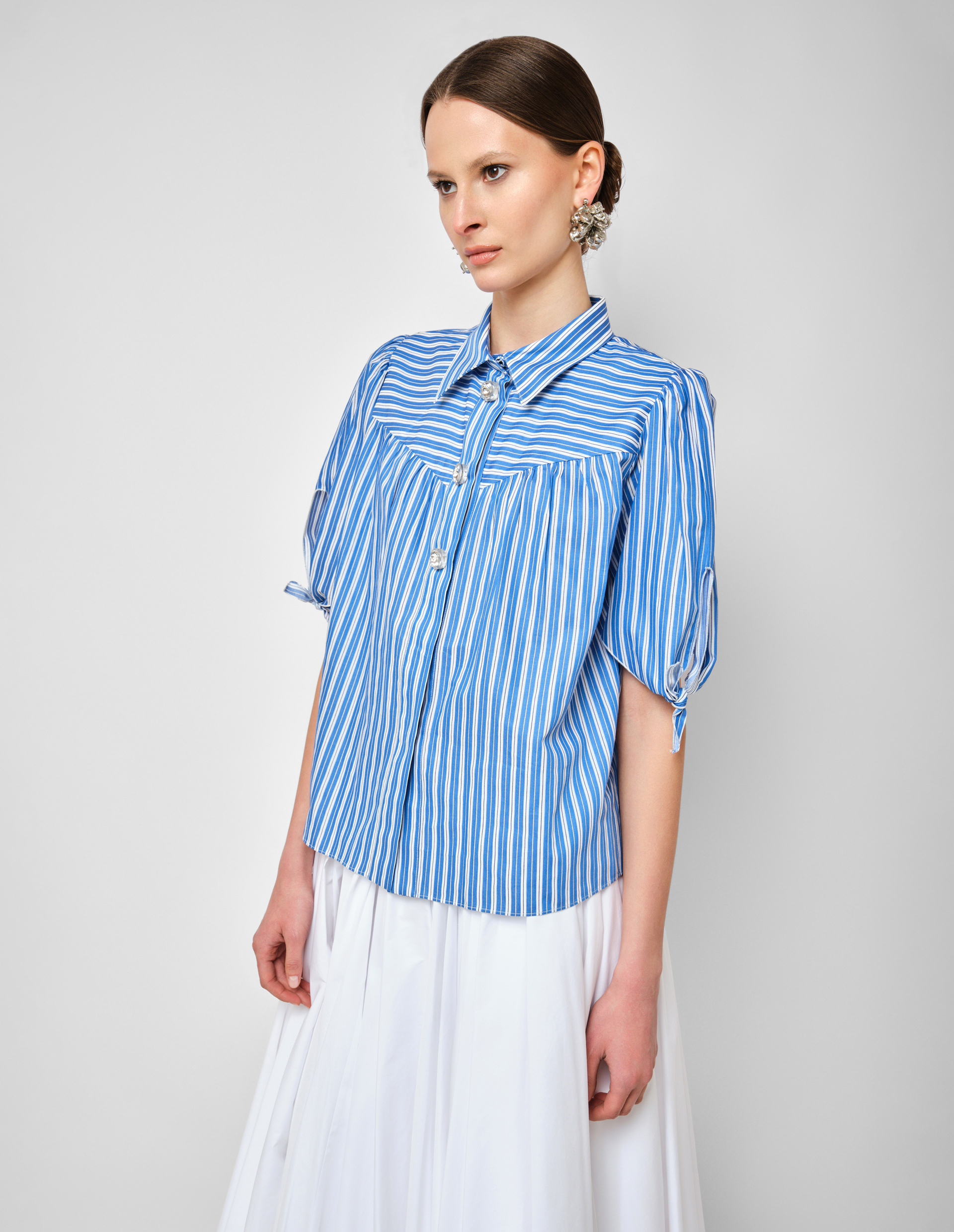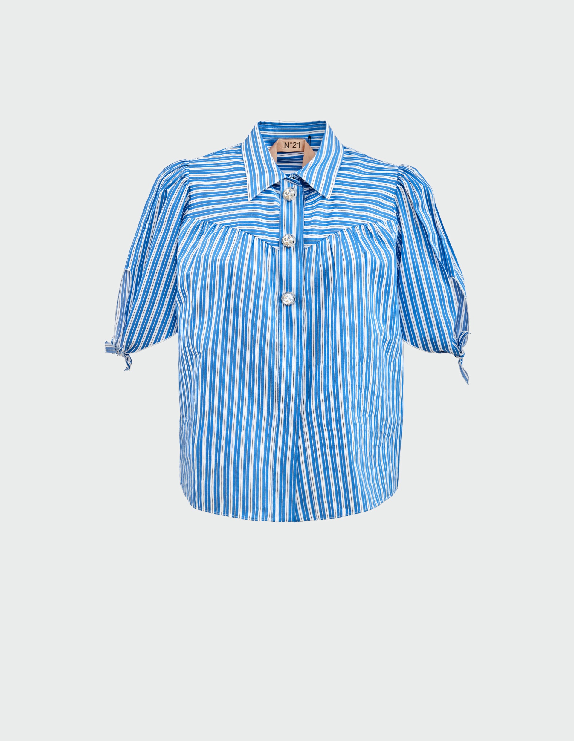 Укороченная рубашка в голубую полоску с пуговицами-кристаллами