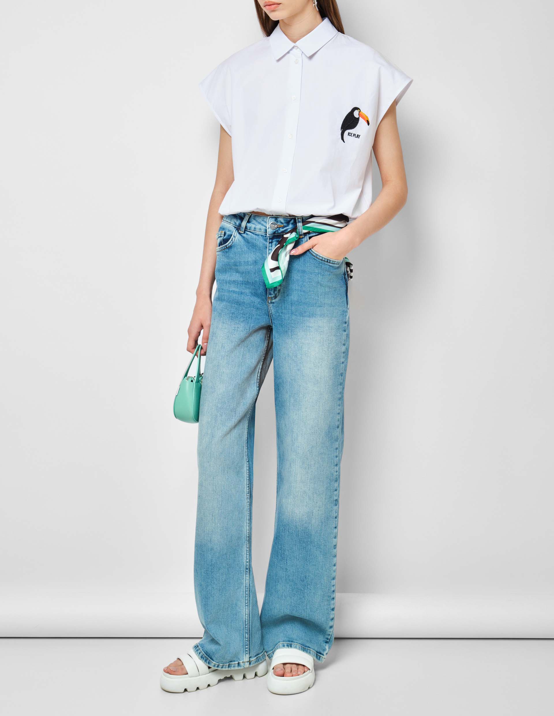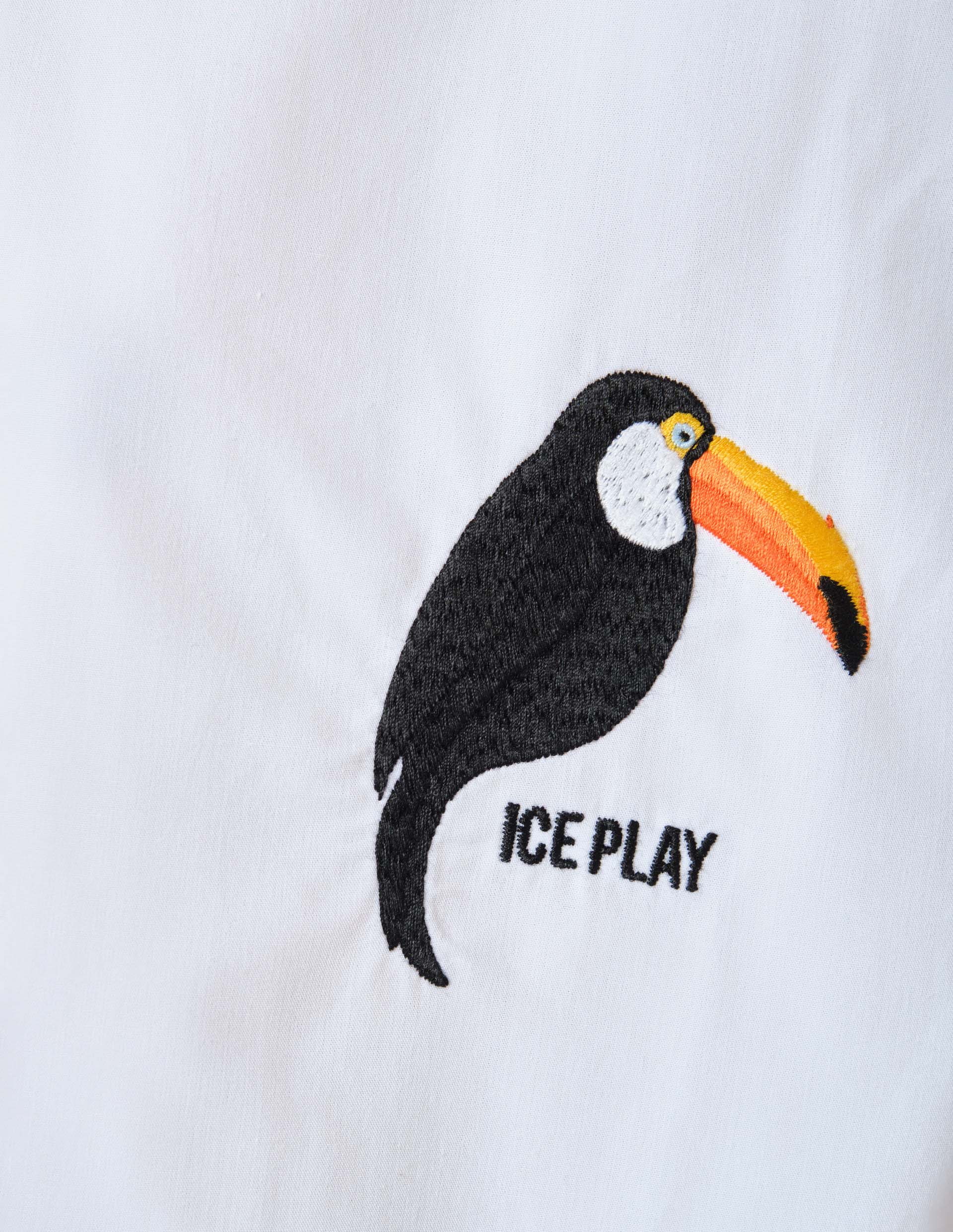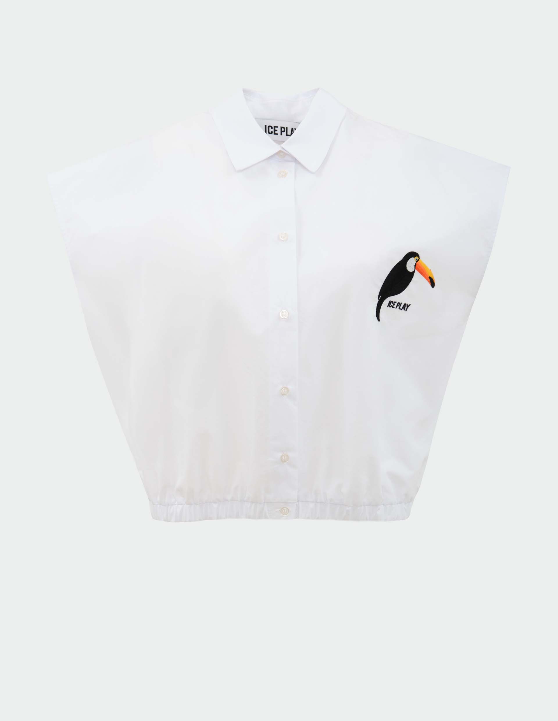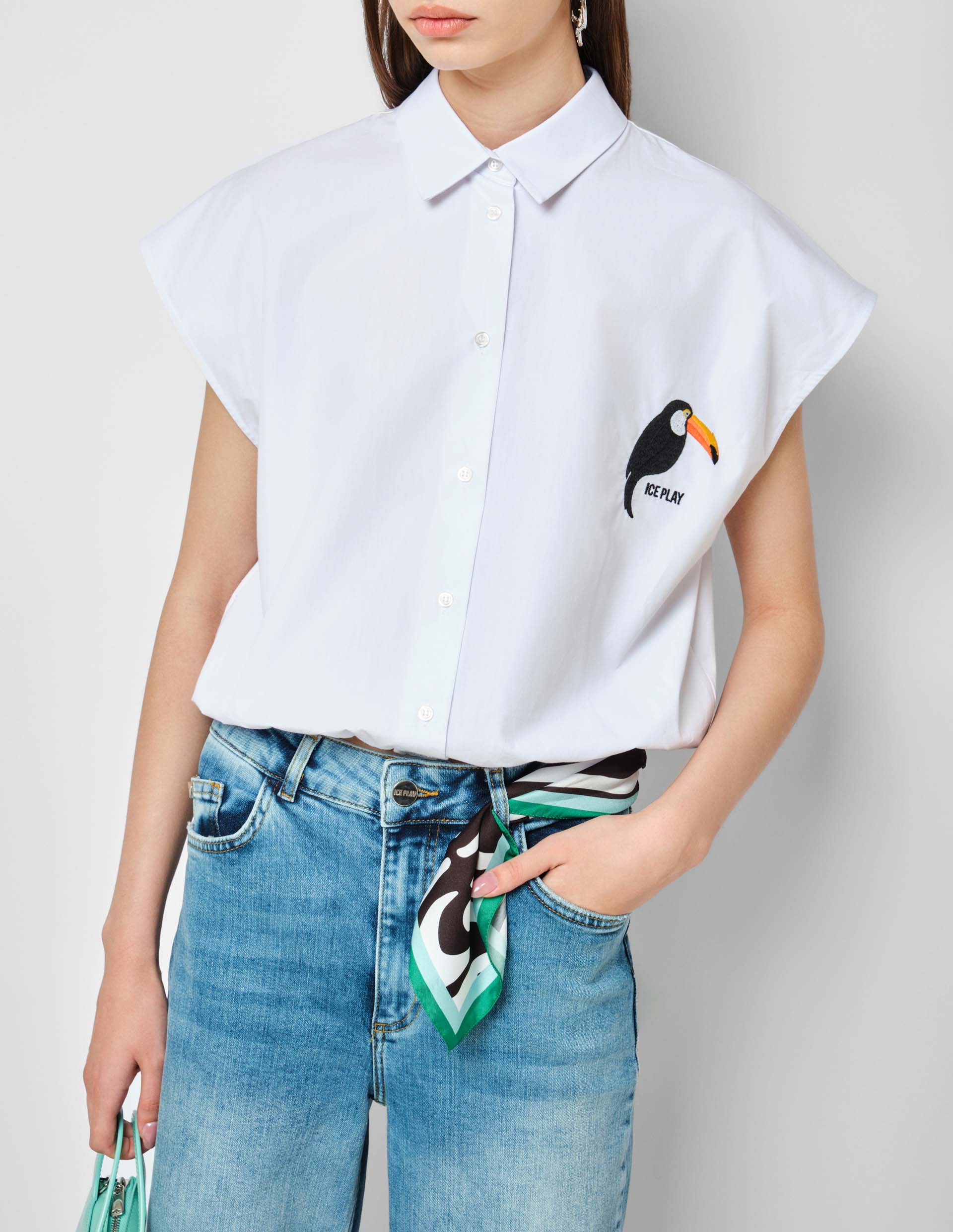 Рубашка из премиального хлопка сочетает в себе стремление к комфорту и бунтарский дух, переданный броским дизайном и уникальным акцентом. В ней будет удобно в жаркий день благодаря натуральному материалу, укороченному силуэту, отсутствию рукавов. Свежий взгляд на повседневный стиль ICE PLAY передал с помощью яркого вышитого тукана на груди. Эта птица, обитающая в тропических лесах, стала символом природы, данью уважения к фауне, экологическим посылом. Рубашка будет идеальным компонентов стильных образов с джинсами, шортами, юбками различной длины.