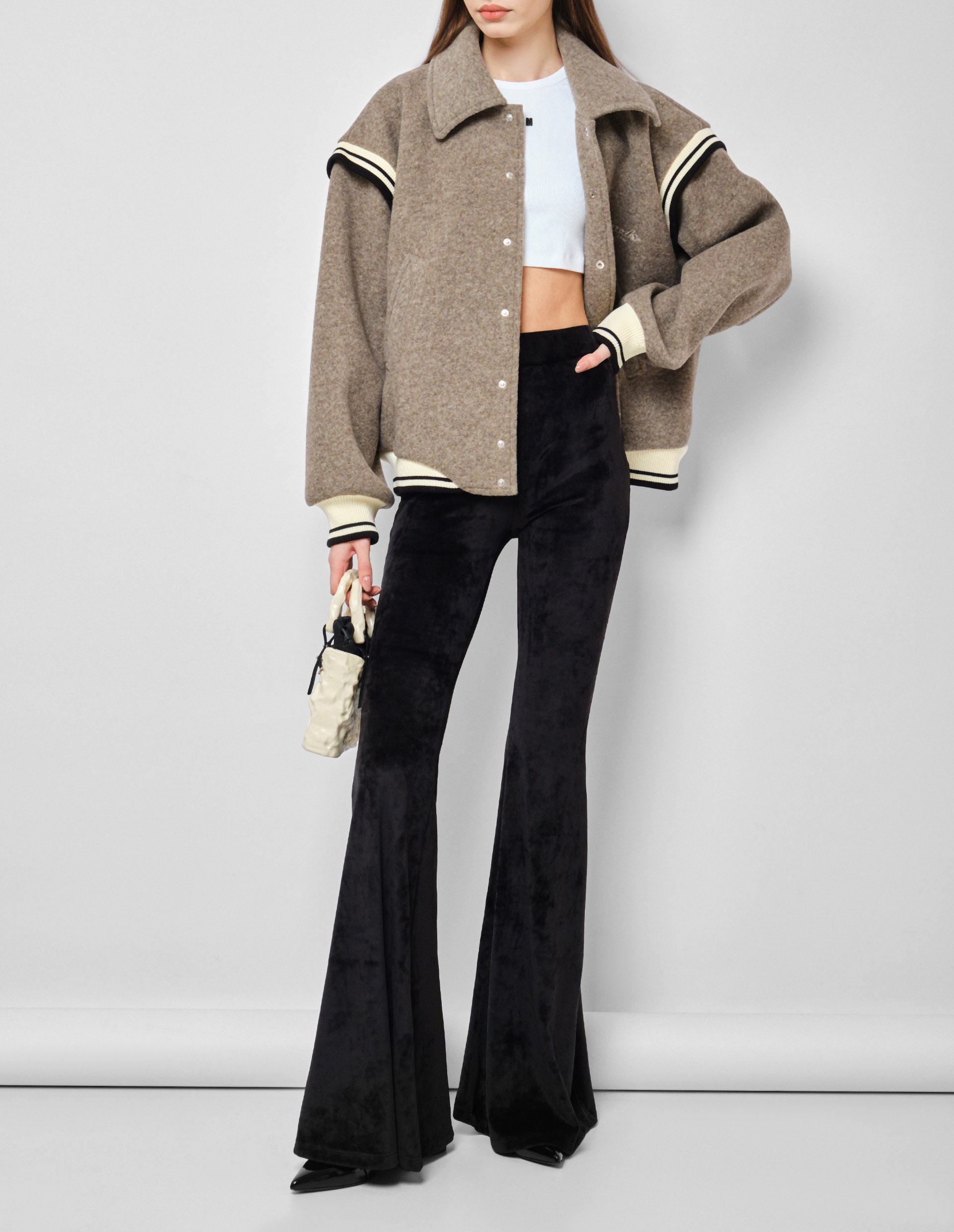 Брюки от GCDS из эластичного бархата раскрывают секрет фирменного стиля: немного провокации в сочетании с люксом, а также непревзойденное качество «Made in Italy». Этот союз обеспечивает эффектный дизайн, плотную и удобную посадку, а женственный силуэт подчеркнут широким расклешенным низом. Спереди нитями в тон вышит узнаваемый логотип, объединивший множество своих поклонников по всему миру.