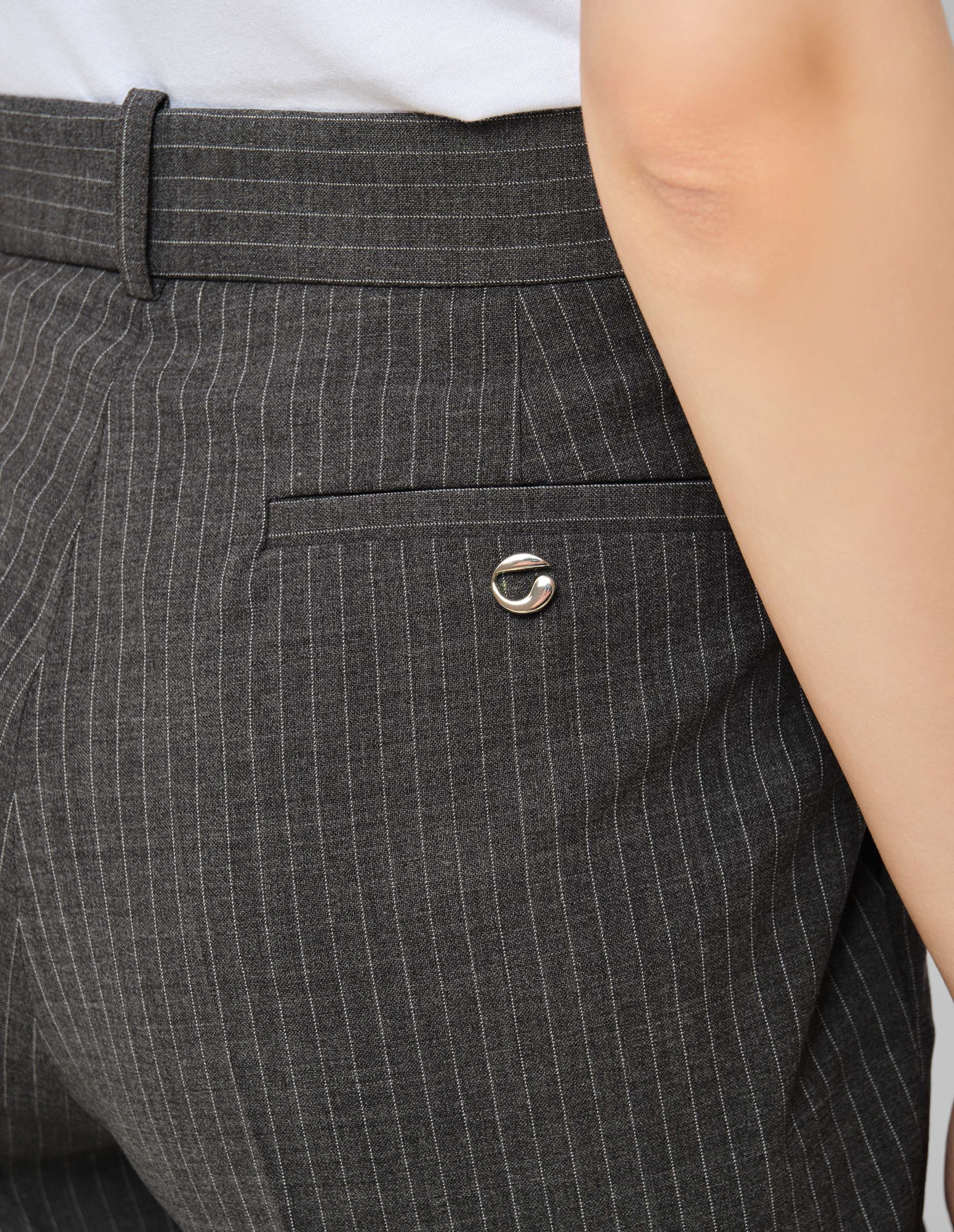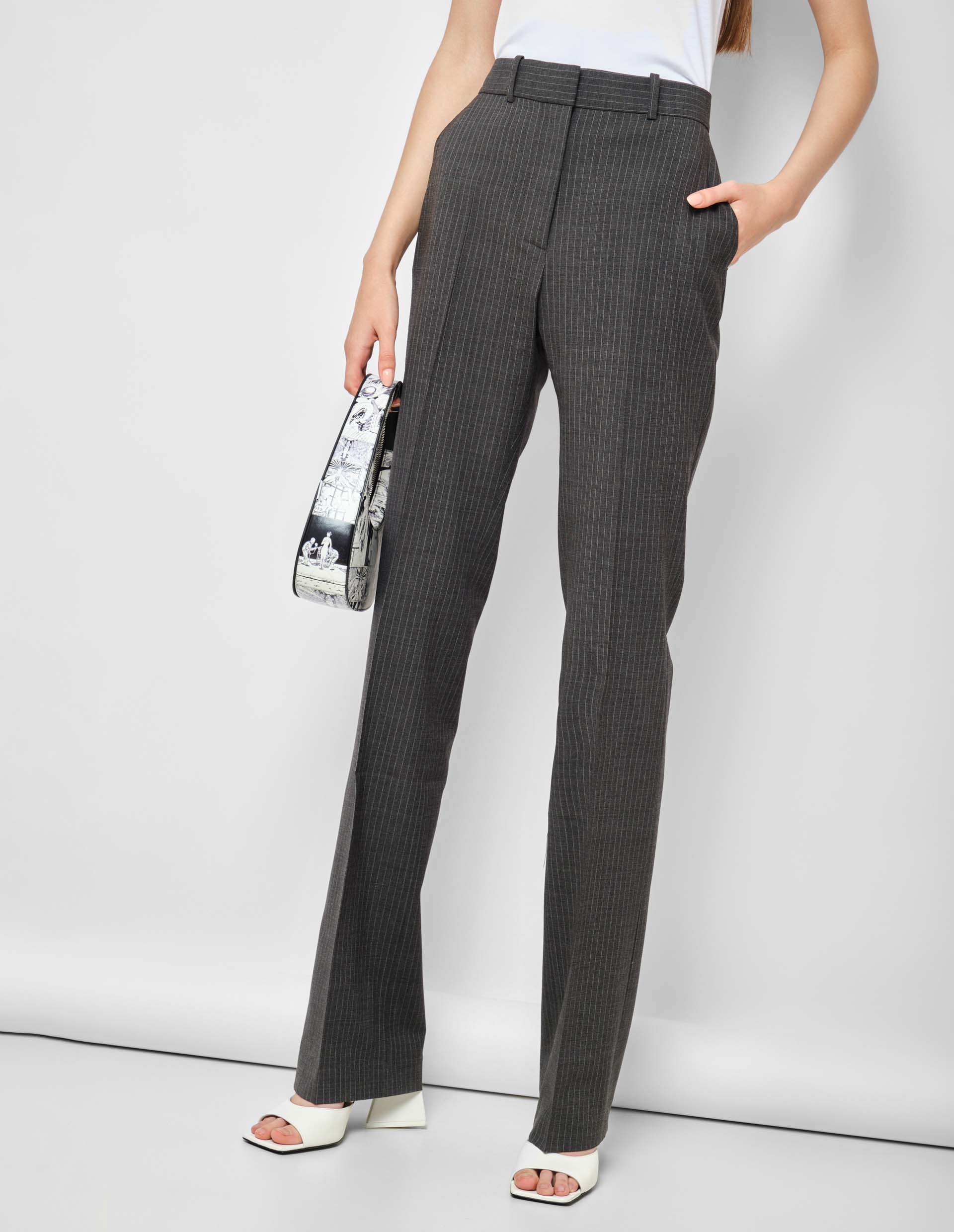 Серые прямые брюки в тонкую полоску