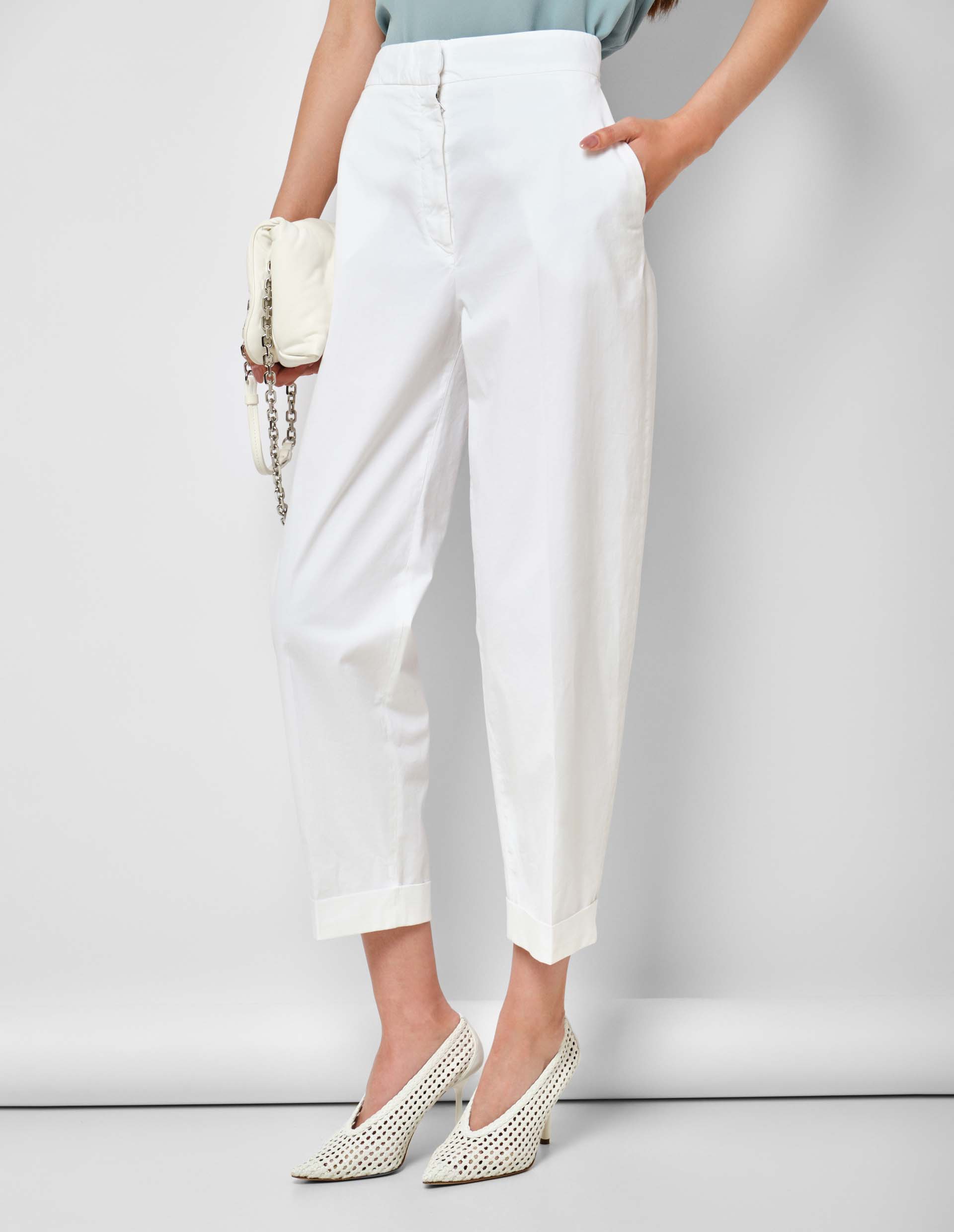 Благородная сдержанность и уравновешенный минимализм отражены в этих брюках Antonelli Firenze. Они выполнены с большим вниманием к деталям из ткани на основе эластичного премиального хлопка, что свидетельствует об итальянском качестве, которое гарантирует долгий срок службы. Изысканный силуэт с отворотными манжетами включает в себя лаконично оформленную линию талии и скрытые застежки. Брюки характеризуются идеальной посадкой и универсальностью при составлении образов, а белый цвет сделает их фаворитом вашего летнего гардероба, давая возможность выглядеть роскошно без усилий.