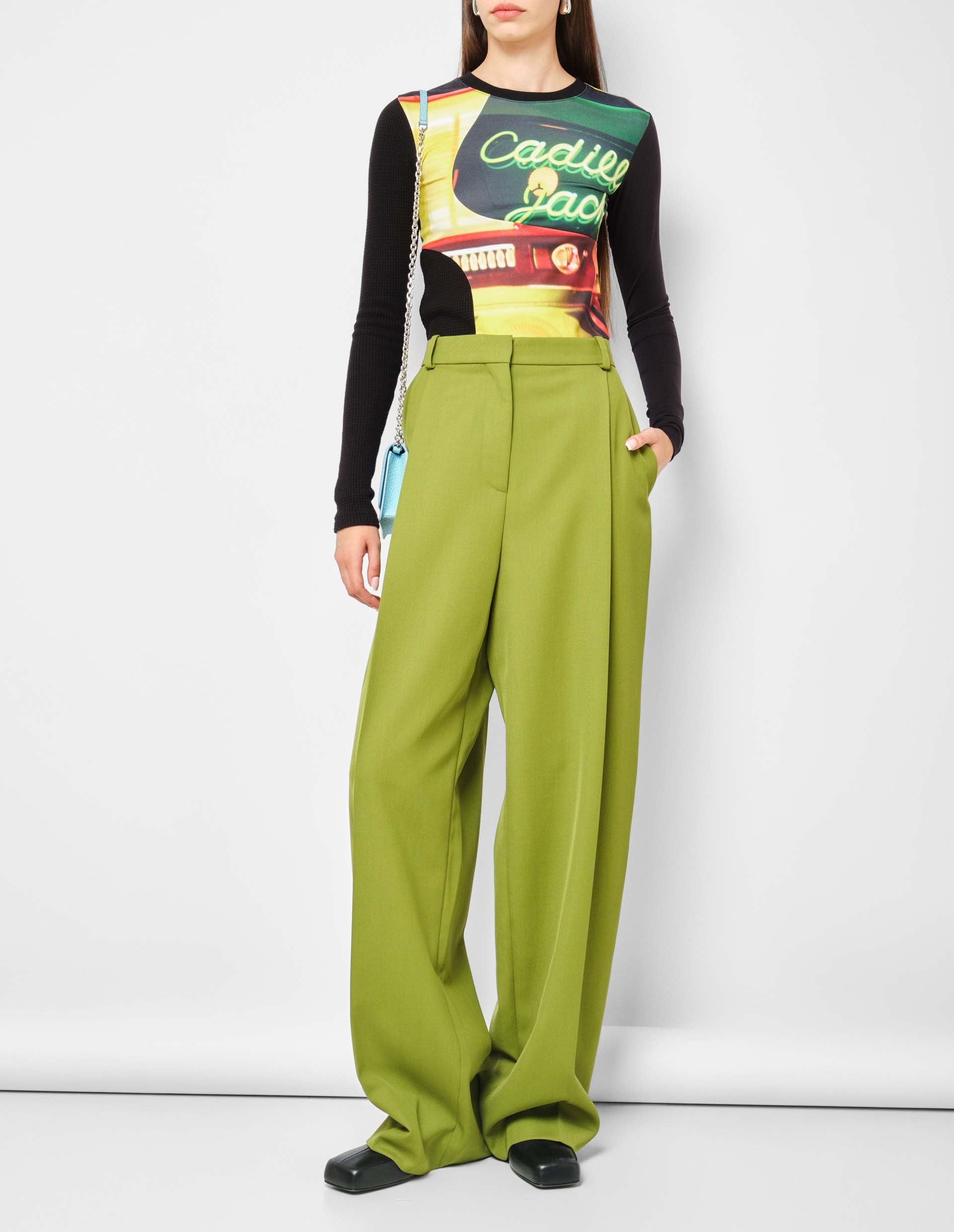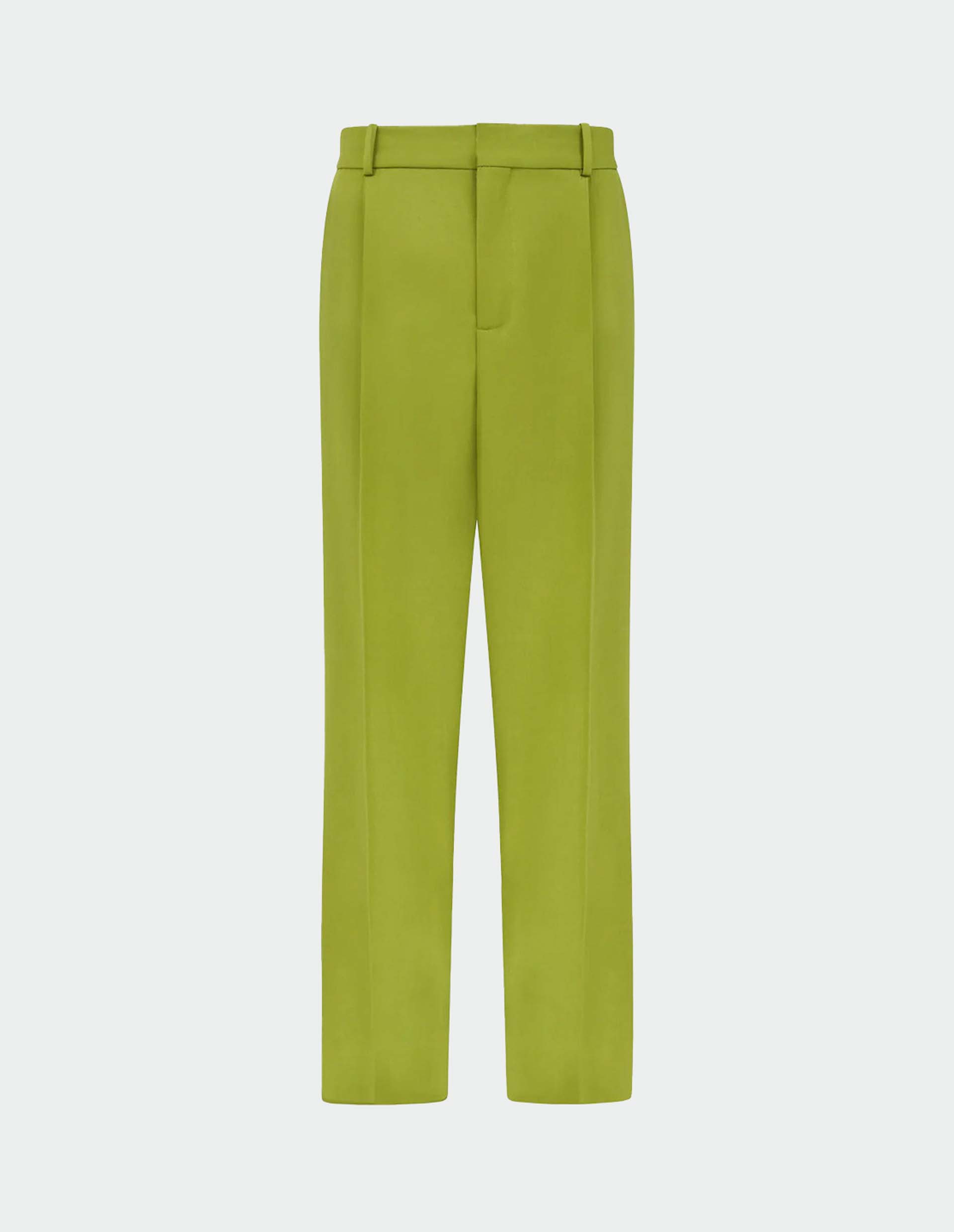 Прямые брюки свободного силуэта, созданные на основе трикотажа из смесовой шерсти. Они выполнены в гибридном стиле, миксующим нотки классики и street style, с четкими защипами, расположенными над безупречными стрелками. Главным акцентом модели стал цвет. Тропический лаймово-зеленый оттенок Love Bird — экзотичный и живой, напоминающий о связи с природой и сутью самой жизни. Этим Botter хочет привлечь внимание к проблеме обесцвечивания кораллов в океане, которые, будучи всегда яркими, из-за климатического кризиса теряют цвет быстрее, чем когда-либо прежде. Используя высококачественные материалы, бренд также стремится к созданию вневременных вещей, которые вы захотите добавить в свой гардероб и хранить всю жизнь.