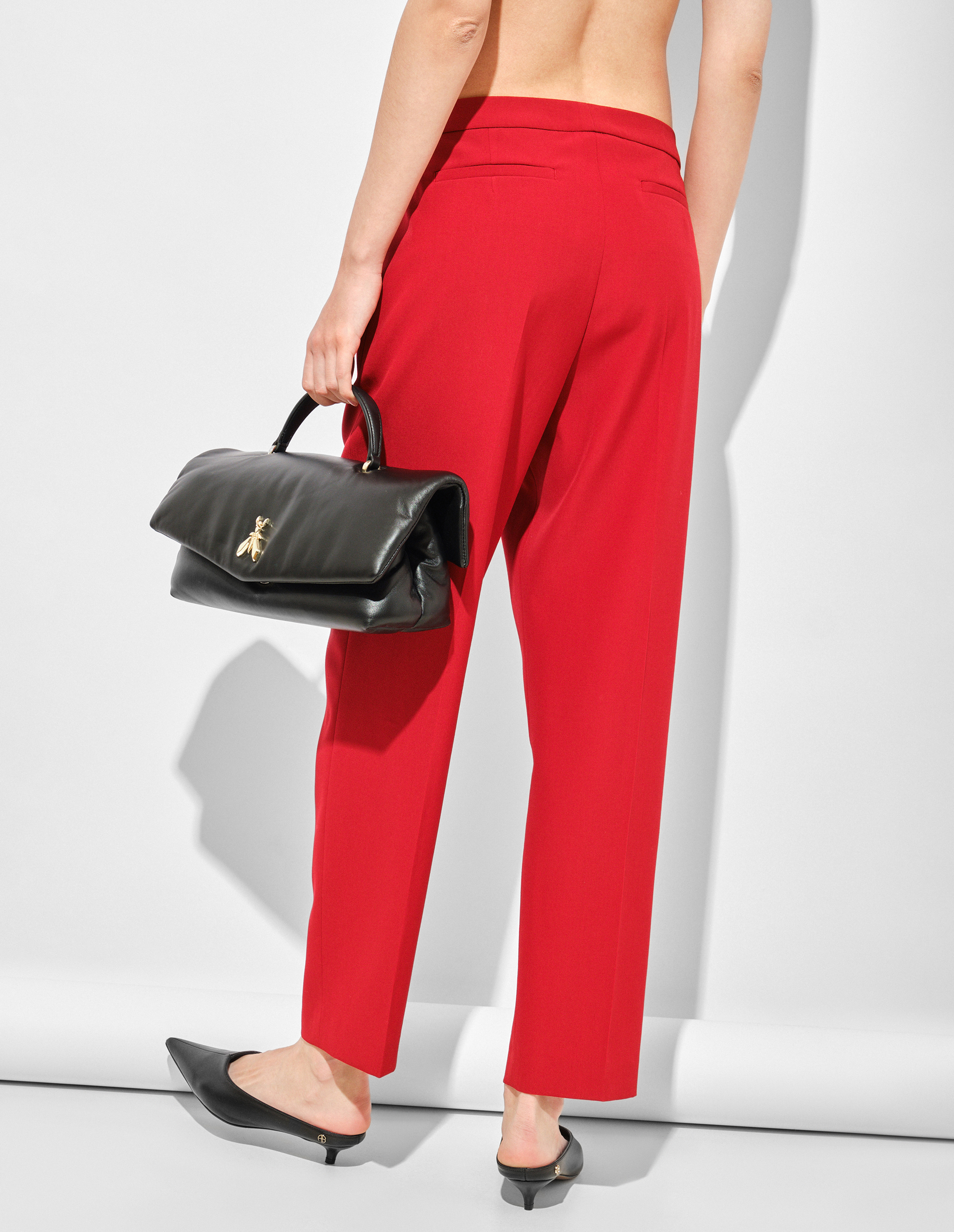 Dries Van Noten представляет брюки, в которых воплощена вся суть бельгийского подхода к современной классике. Изготовленные из 100% высококачественной шерсти, они обладают благородной фактурой и идеальной посадкой, сохраняя комфорт при движении. Слегка зауженный прямой крой создает элегантный силуэт, в то время как насыщенный оттенок CARNAL RED, вдохновленный архивной палитрой SS97, добавляет образу смелый акцент. Функциональность здесь сочетается с минималистичной эстетикой - боковые и задние прорезные карманы аккуратно вписаны в конструкцию, а скрытая застежка спереди сохраняет чистоту линий.