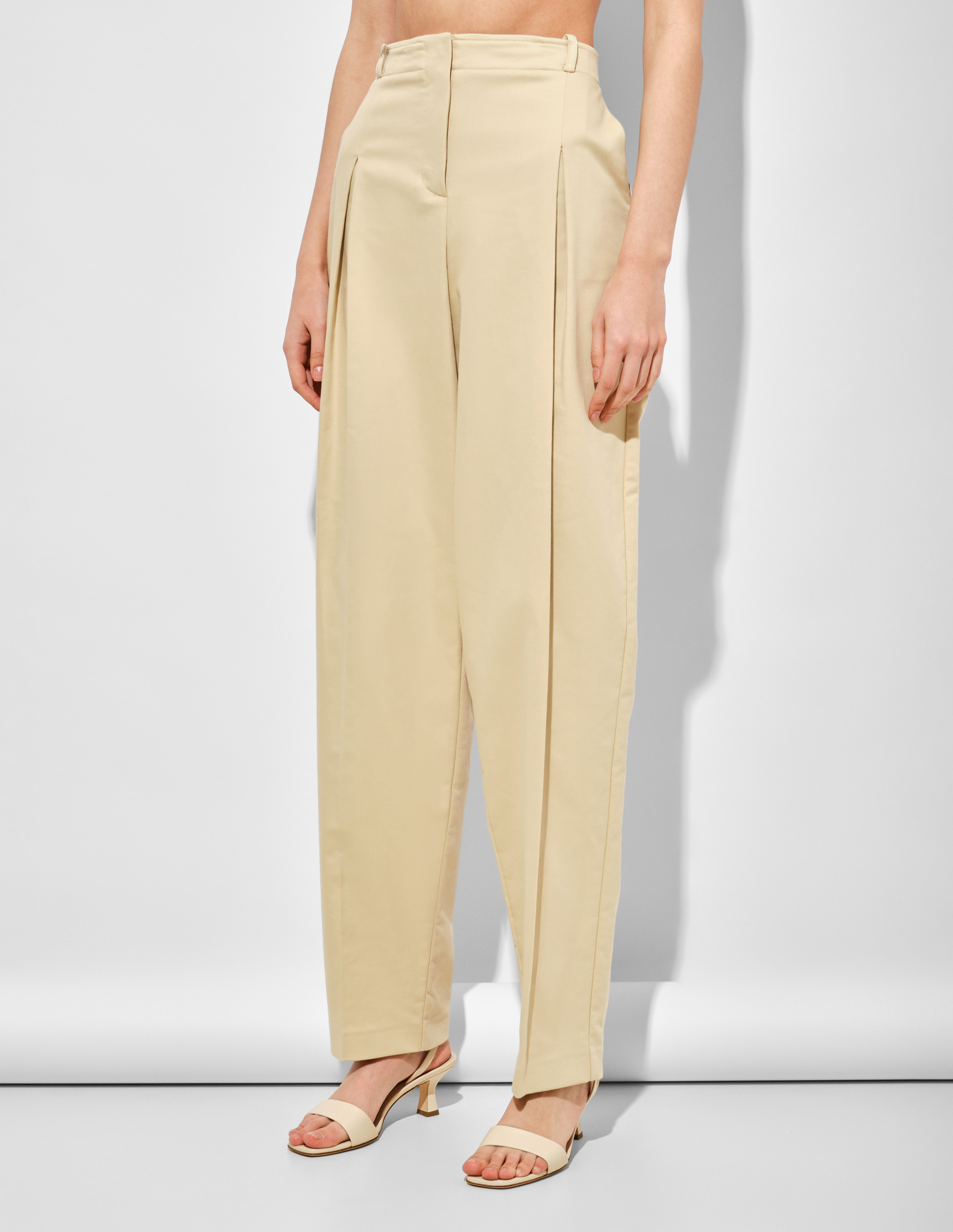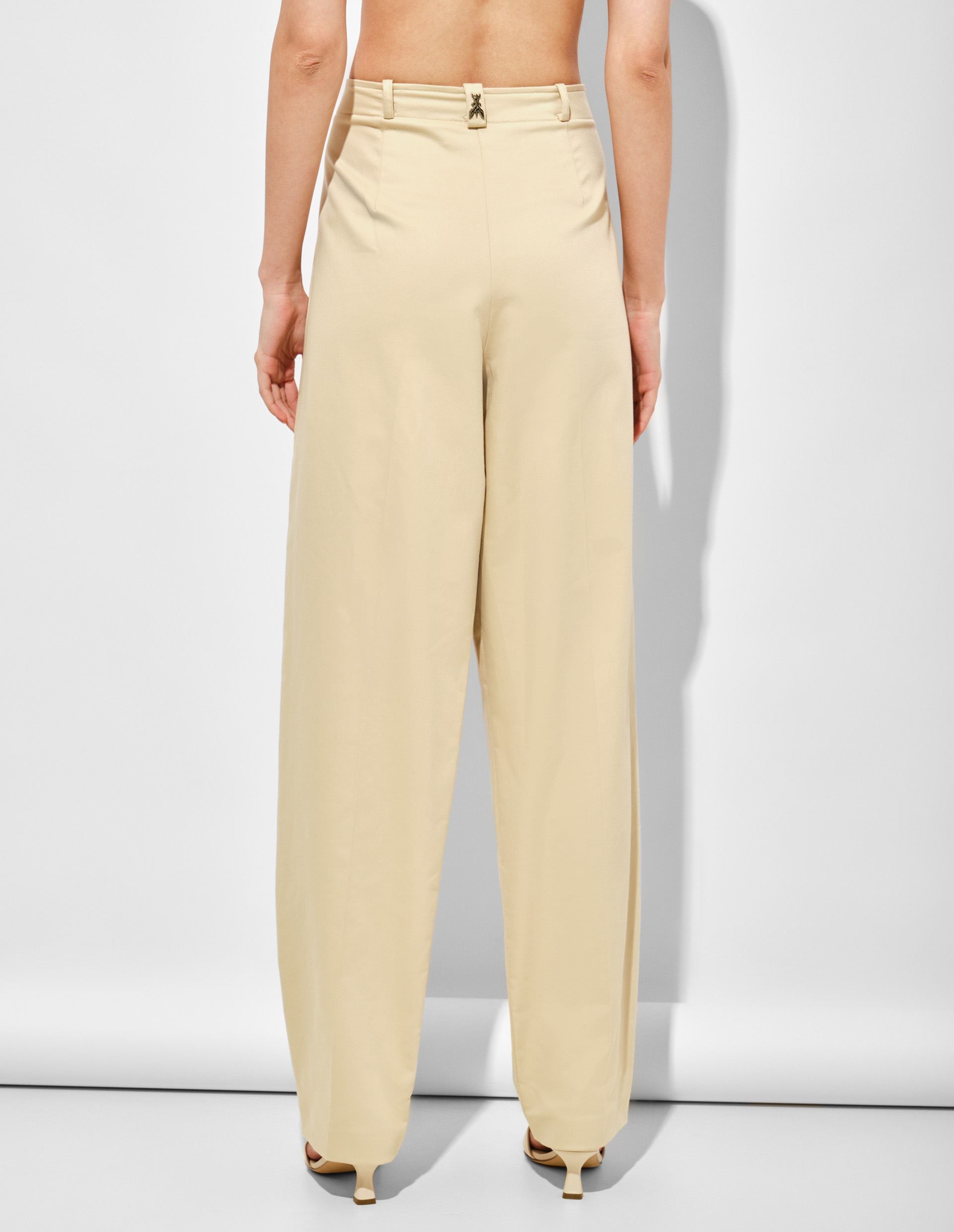 Эти брюки Patrizia Pepe, как множество оттенков женщины, которая уверенно выражает свой стиль, свободный от правил и ограничений. Модель преодолевает тонкий дуализм между грацией и самосознанием, мужественностью и женственностью, становясь новой классикой в вашем гардеробе. Выполненные из эластичного хлопка в изысканном бежевом оттенке, они дополнены встречными складками-защипами, переходящими в графичные стрелки, что формирует особый шарм. Золотистая мушка Fly на шлевке сзади — ДНК флорентийского бренда, символизирующая стилистическое и качественное содержание всей его продукции.