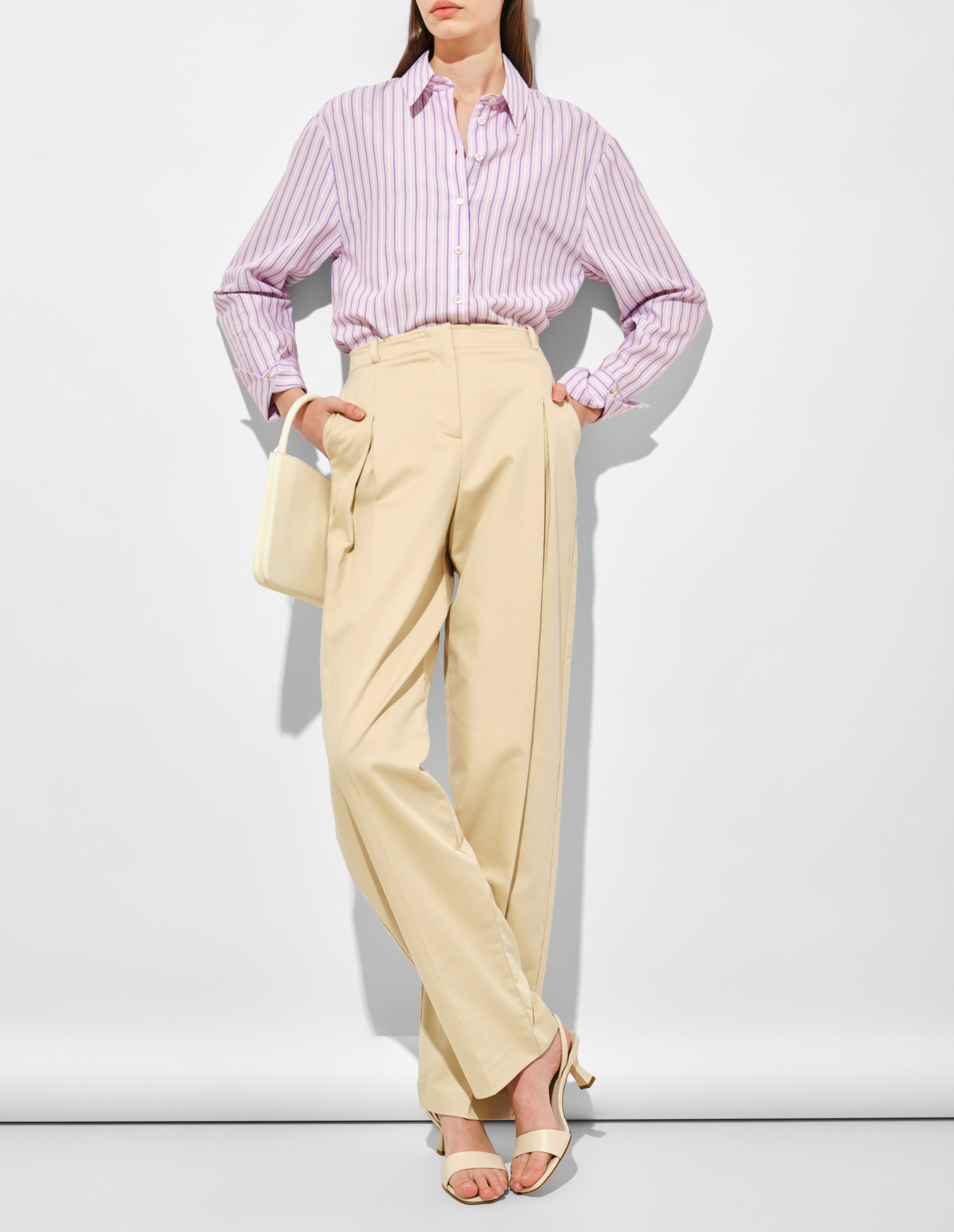 Прямые бежевые брюки с защипами