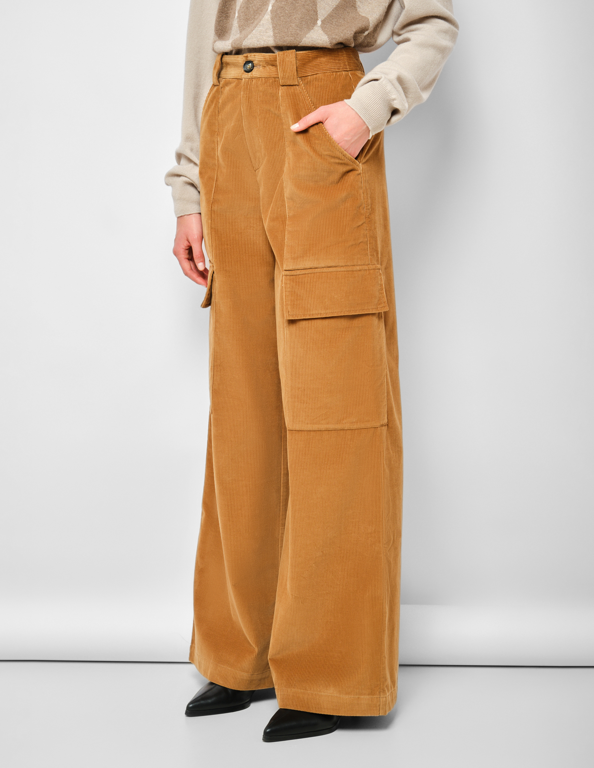 Вельветовые брюки-карго из коллекции FW25/26, выполненные в природном горчичном оттенке, воплощают современный городской стиль, вдохновленный динамикой Милано-Кортины. Модель сочетает функциональность — лаконичный крой с большими боковыми карманами — и утонченную эстетику Ballantyne. Практичность для современной женщины подчеркнута поясом со шлевками, обеспечивающим дополнительную универсальность. Эта вещь идеально отражает философию бренда: безупречный крой и продуманные детали, возведенные в ранг искусства.