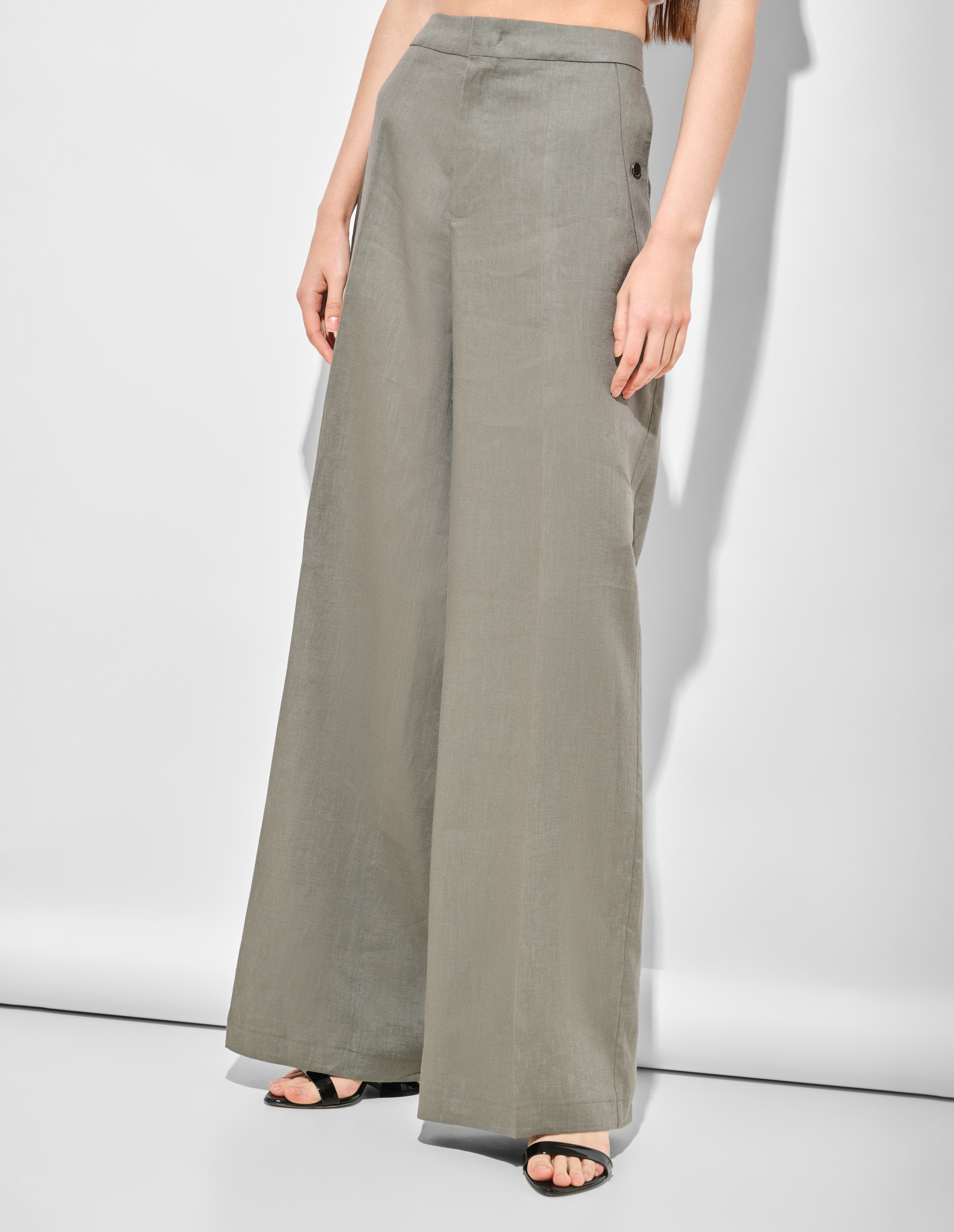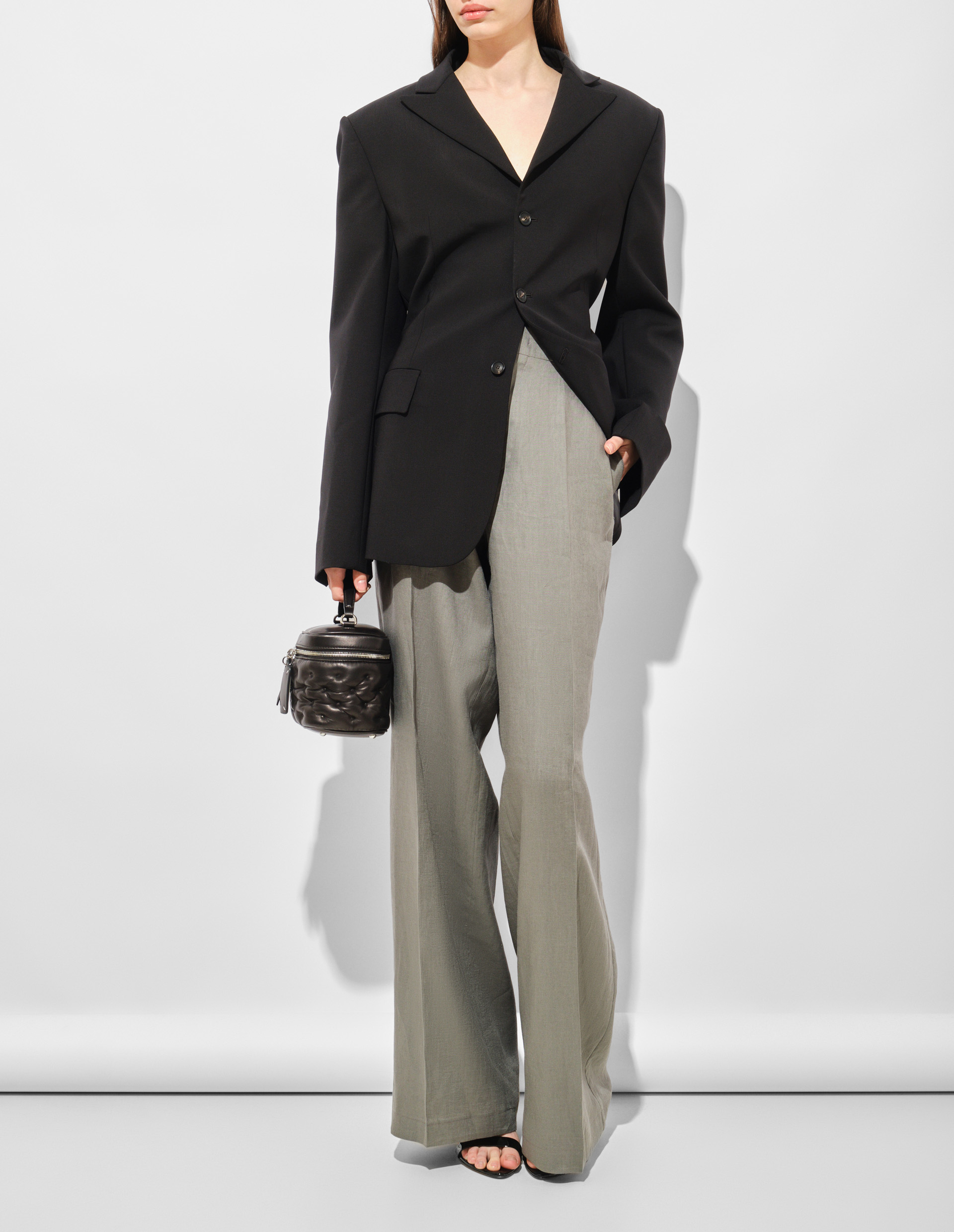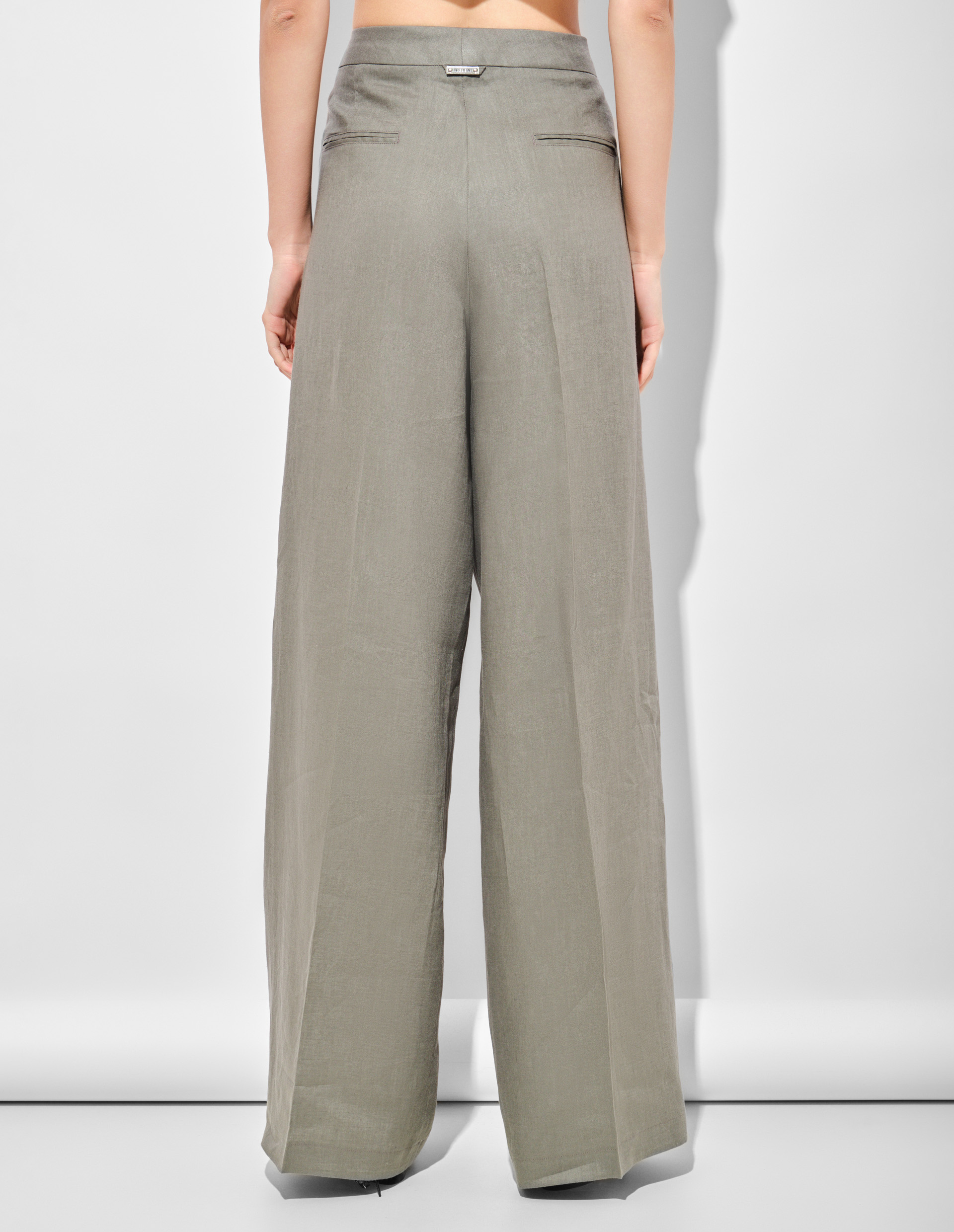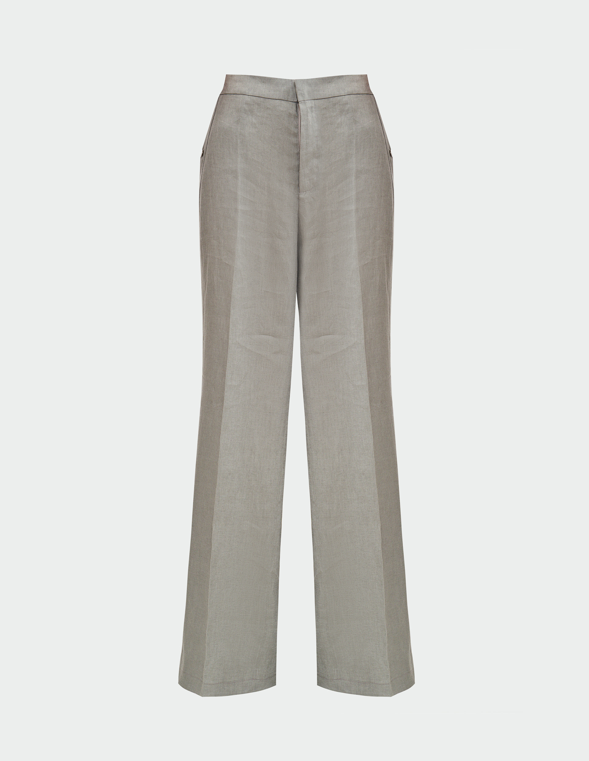 Iceberg переосмысливает классику с фирменной иронией и итальянской элегантностью с помощью этих брюк из 100% льна. Широкий крой и четкие стрелки отсылают к ретро-шику, но декоративные кнопки на диагональных карманах мгновенно добавляют им игривости — как будто дизайнеры вдохнули в них немного поп-хулиганства. Белая подкладка придает лёгкость, а металлическая брендированная пластина на поясной петле сзади — тот самый штрих, который напоминает: это не просто брюки, а заявление. Iceberg умеет превращать даже лаконичные вещи в арт-объекты, и эта модель — доказательство: классика может быть смелой, комфортной и безупречно стильной.