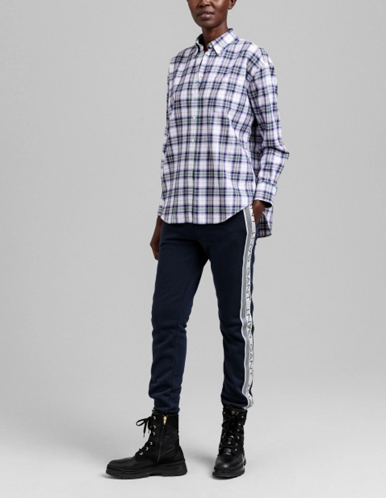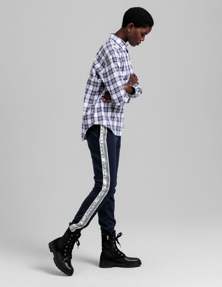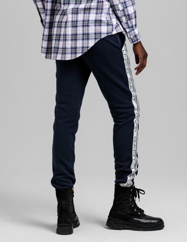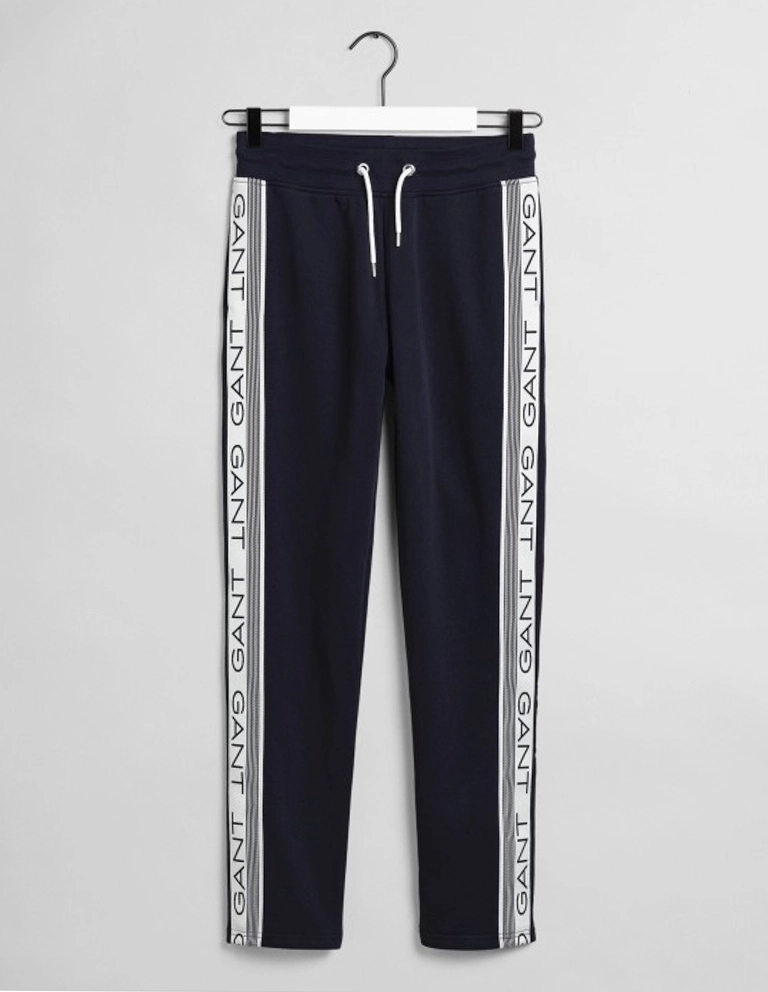 Практичность и комфорт – это именно те качества, благодаря которым женские спортивные штаны так востребованы и стали привычной частью современного лука. Бренд GANT, соответствуя модным тенденциям и запросам, представил одну из самых популярных моделей спортивных брюк, в которой сочетаются слегка зауженный крой с резинкой на талии и материал из смесового хлопка. Также дизайнеры уделили внимание деталям, таким как эластичные завязки на поясе с металлической фурнитурой и боковые прорезные карманы. Особого внимания заслуживают лампасы с повторяющейся надписью-логотипом. Такие штаны можно надевать не только для посещения спортивного зала, но и для прогулки, путешествия либо использовать как элемент стиля casual.