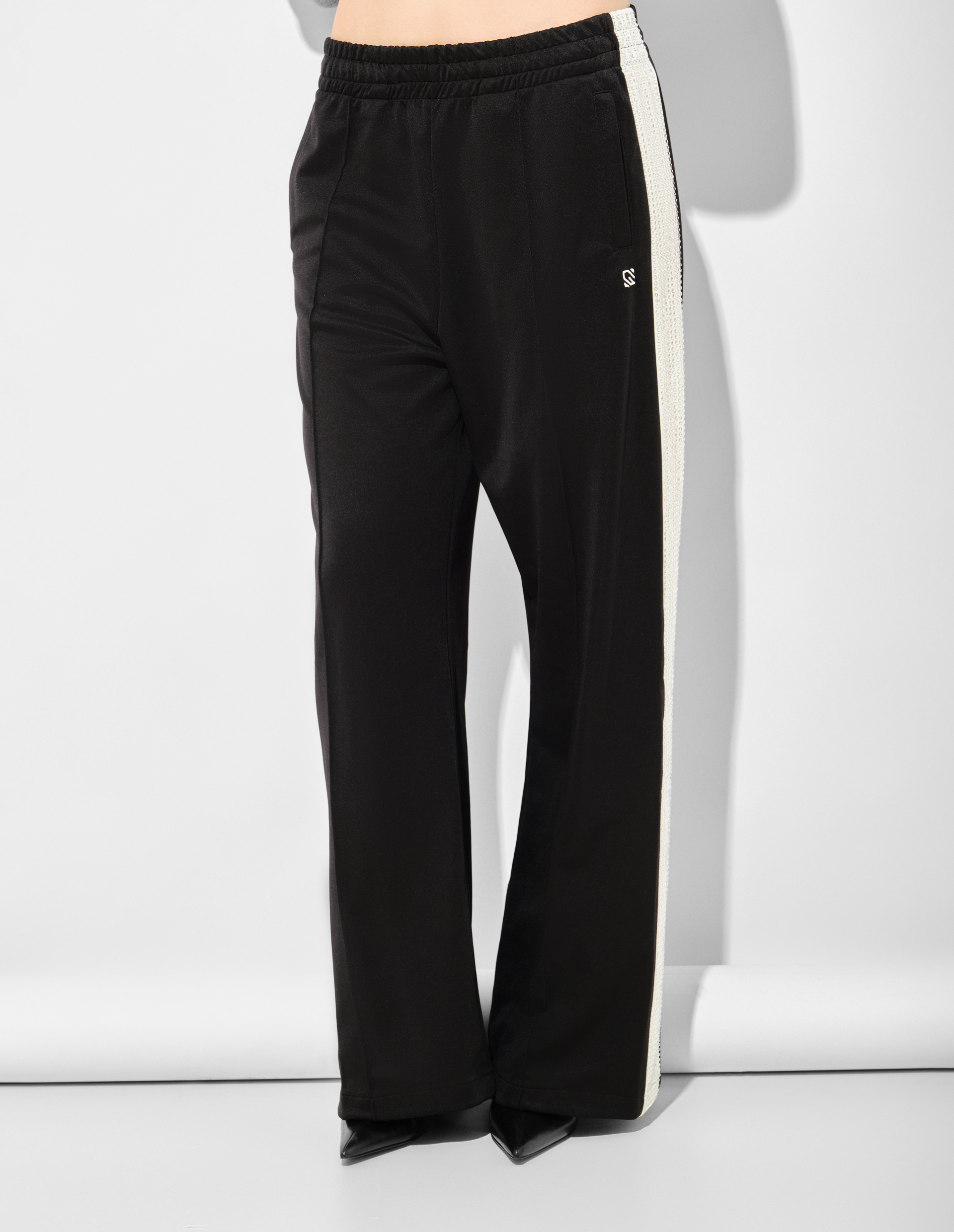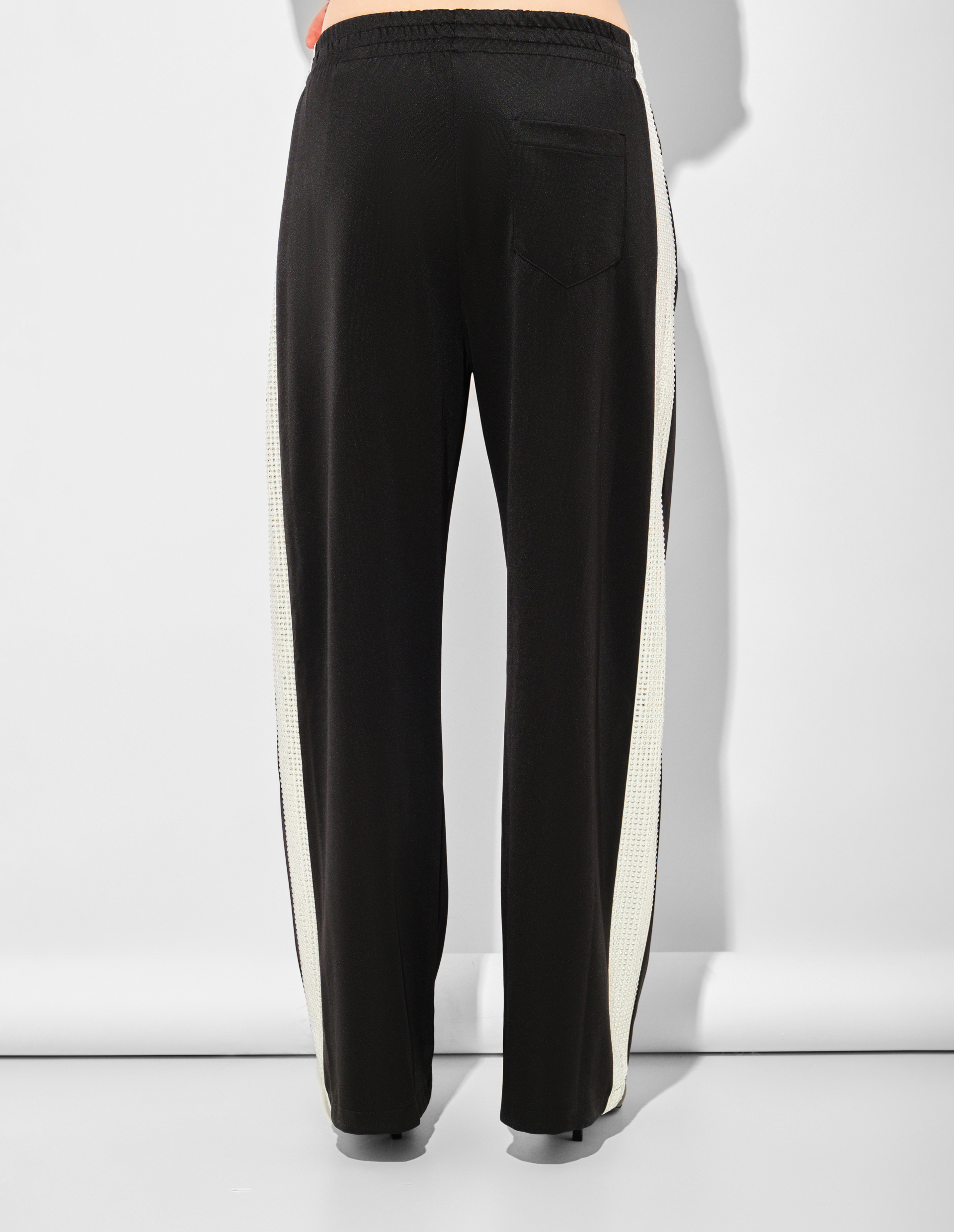 Брюки с эластичным поясом и белыми лампасами в стразы