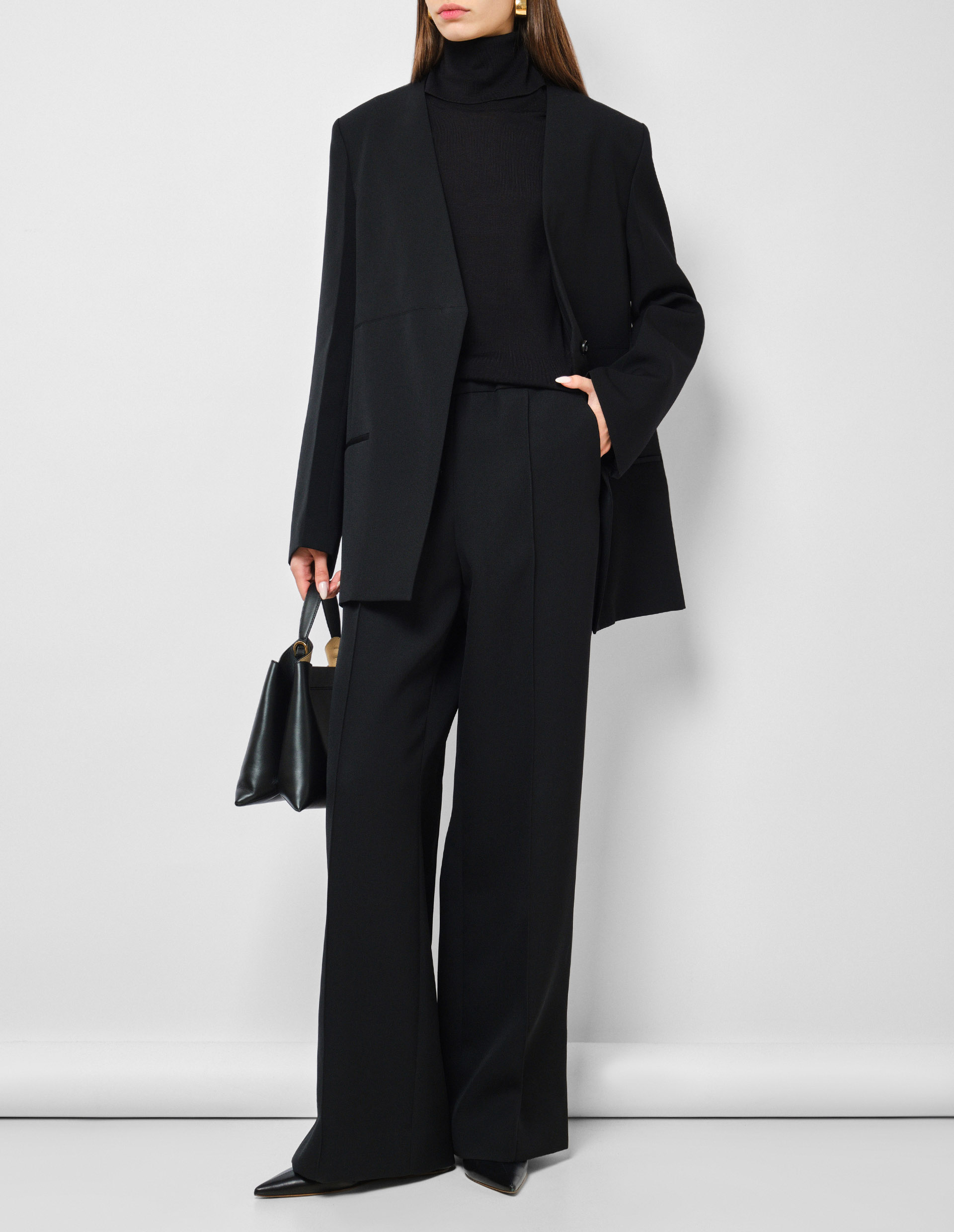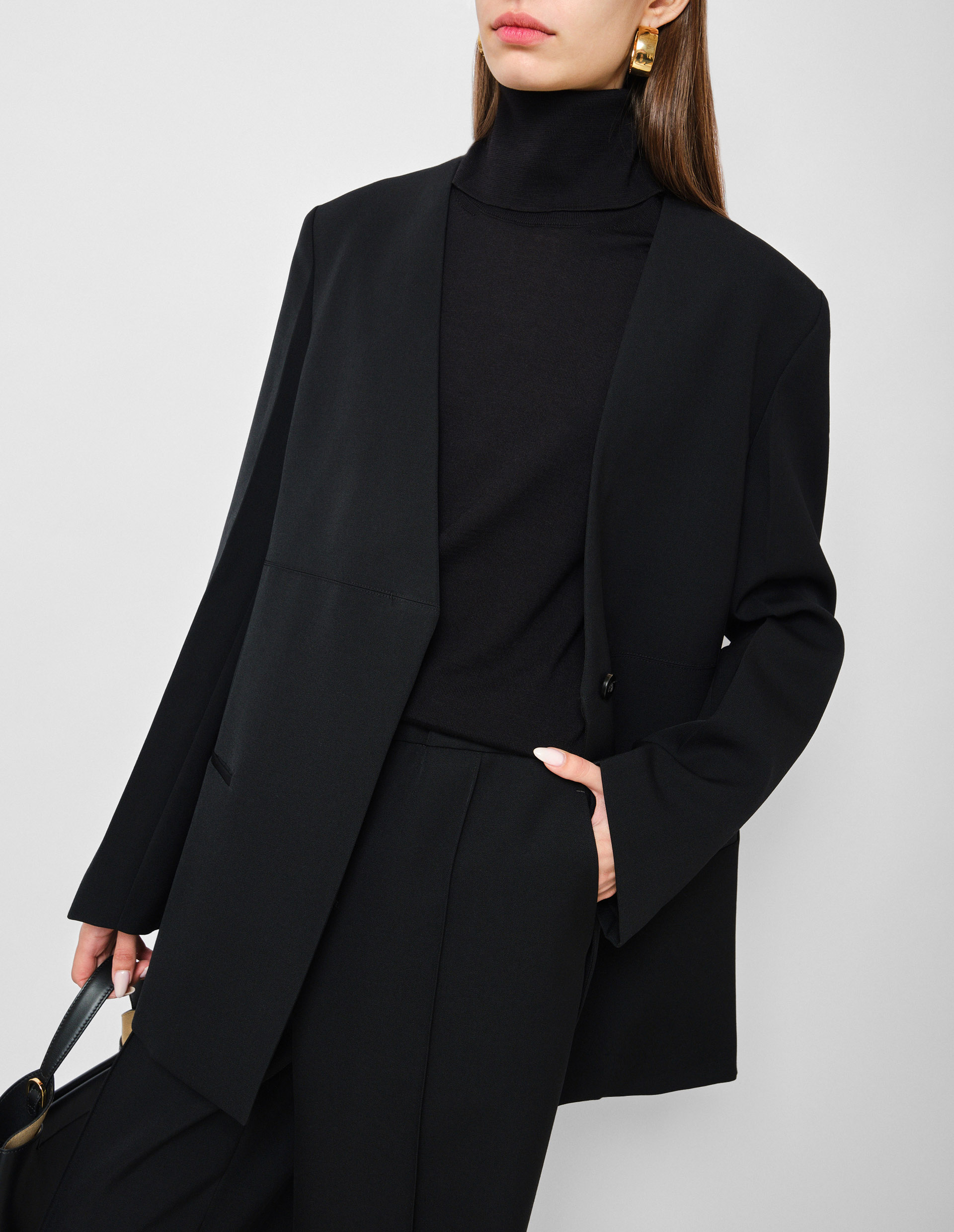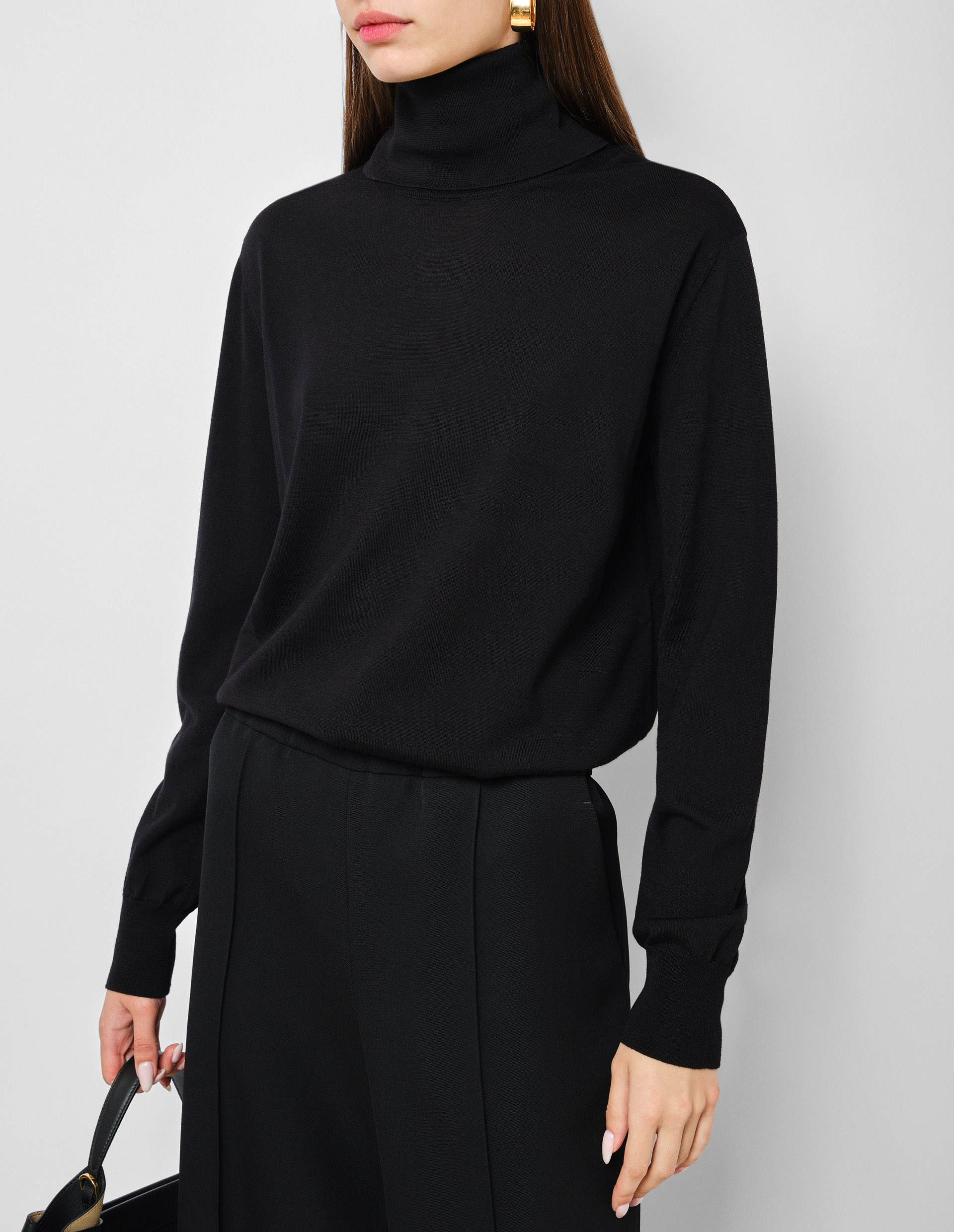 Черный джемпер под горло с разрезом