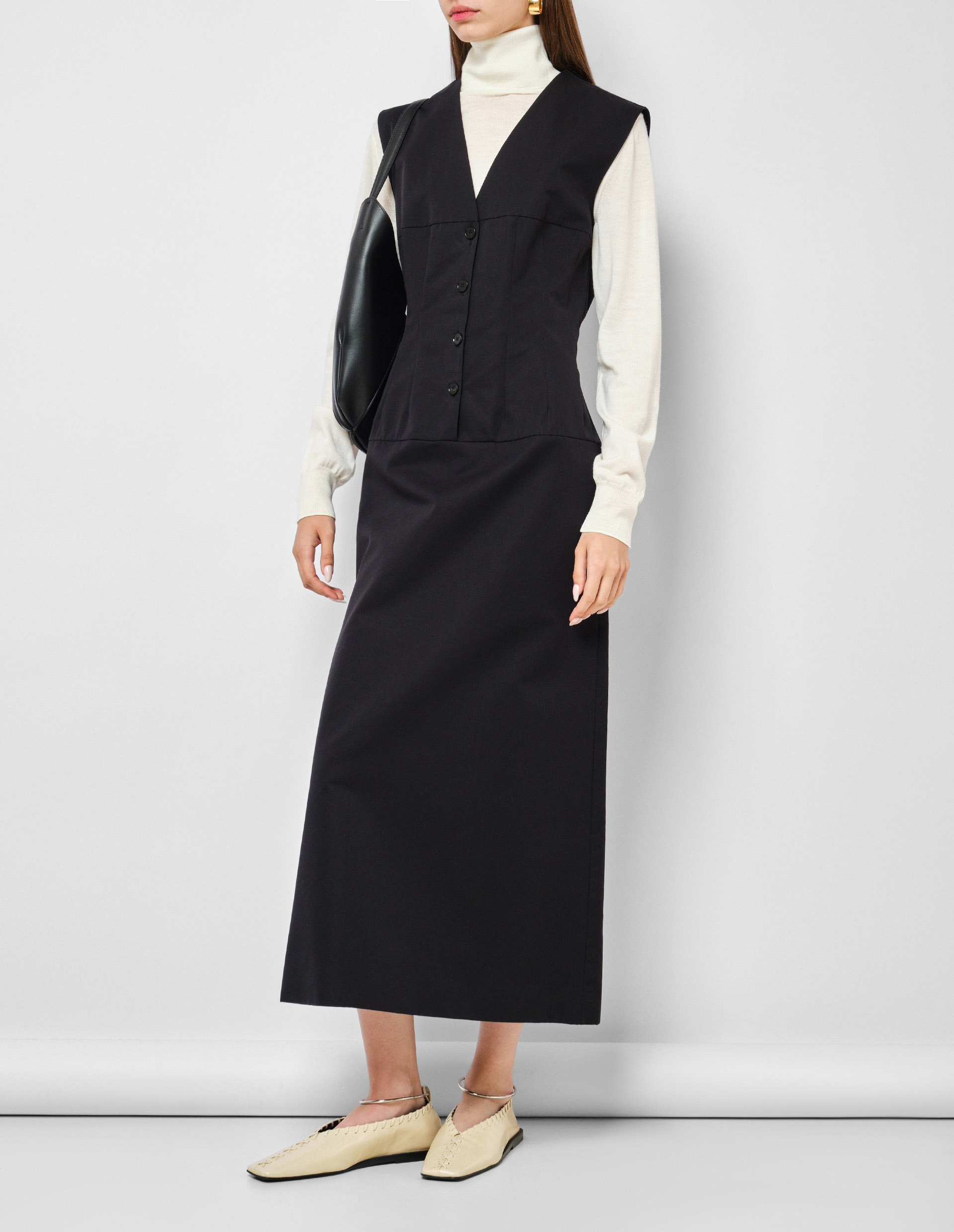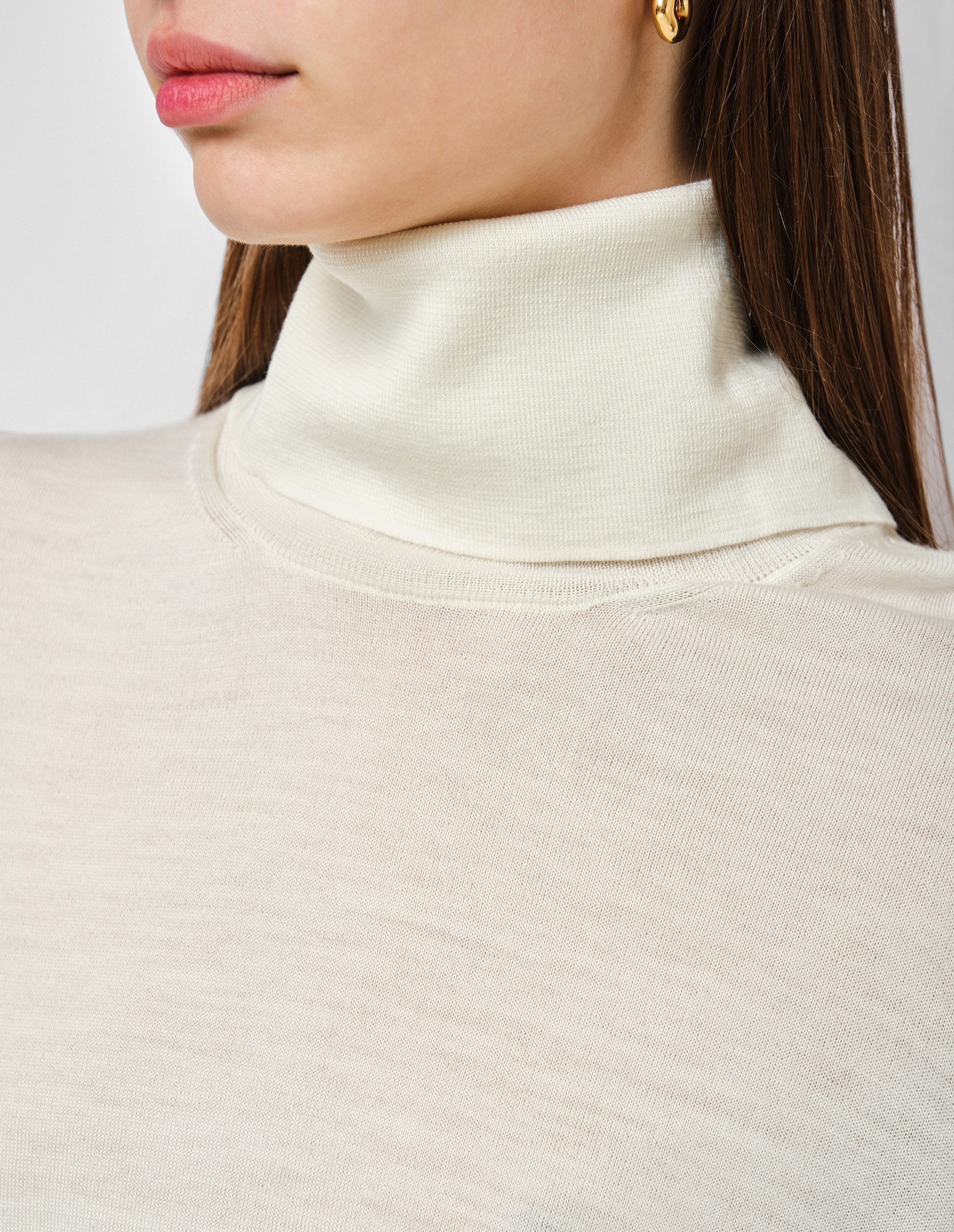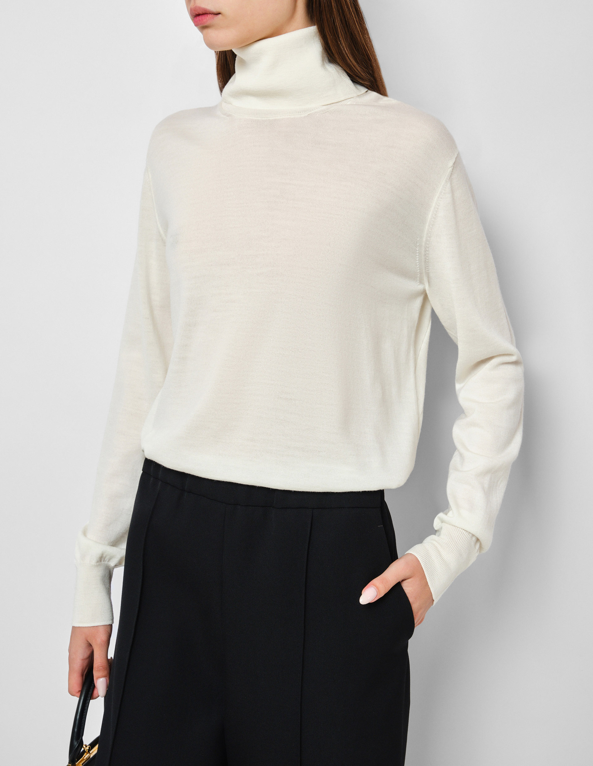Основательница бренда Jil Sander считала, что истинную уверенность в себе придает минималистичная и лаконичная одежда, отличающаяся отменным качеством. Этого принципа бренд придерживается до сих пор, чему свидетельствует наличие нежного шерстяного джемпера с воротником-стойкой в коллекции Jil Sander. Молочный оттенок придает богатый и роскошный вид, а материал изделия из премиальной мериносовой шерсти, которая невероятно мягкая на ощупь, еще больше усиливает этот эффект. JIL SANDER — это лучшее доказательство того, что элегантность, утончённость, красота и хороший вкус стоят дороже трендов, и поэтому не выйдут из моды никогда. Бренд JIL SANDER известен своими вневременными силуэтами. От этого главного принципа не отходят и нынешние дизайнеры бренда Люси и Люк Майер.